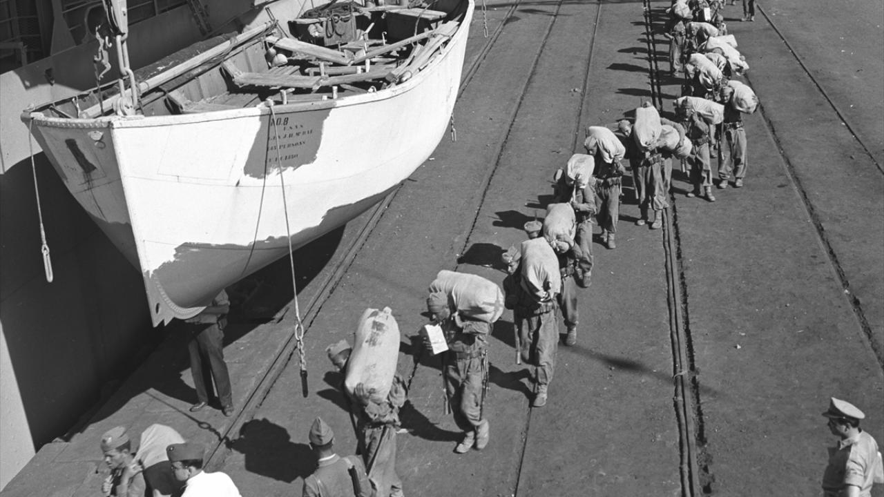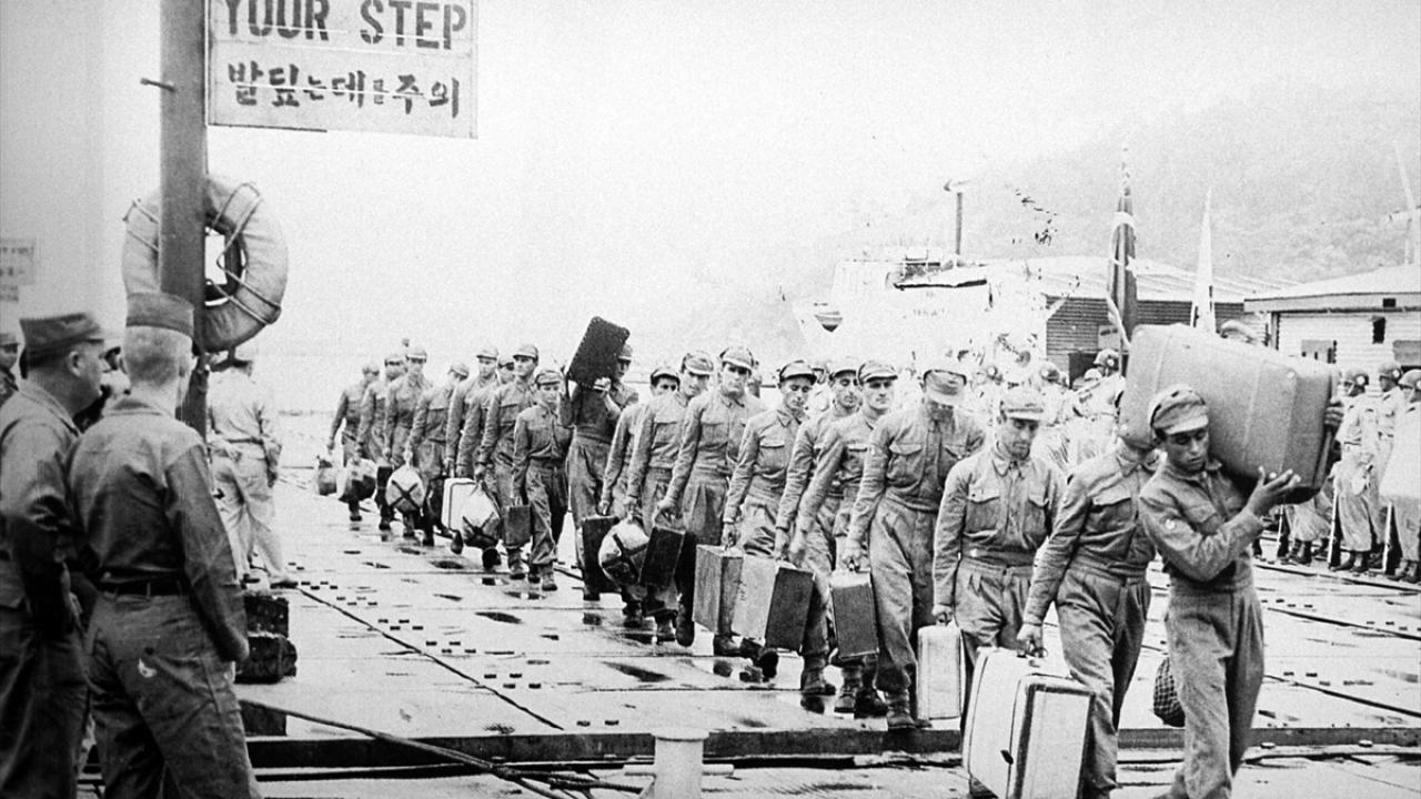 Kore Türk Tugayı, savaş malzemeleri ile birlikte Pusan Limanı`nda kendilerini bekleyen gemiye bindi. (Arşiv-23.07.1953)