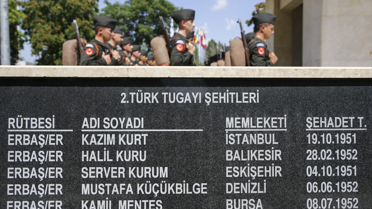 Törene katılan Koreli askeri yetkililer anıta çelenk bıraktı.