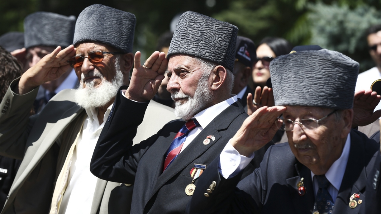 Törene Türkiye Muharip Gaziler Derneği (TÜMGAZİDER) Genel Başkanı Şükrü Tandoğan da (solda) katılarak anıta çelenk bıraktı.