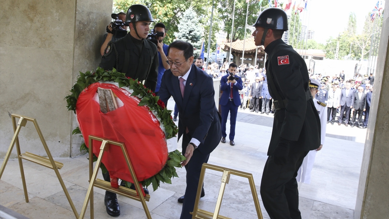 Törene katılan Kore Cumhuriyeti Ankara Büyükelçisi Choi Hong-Ghi anıta çelenk bıraktı.