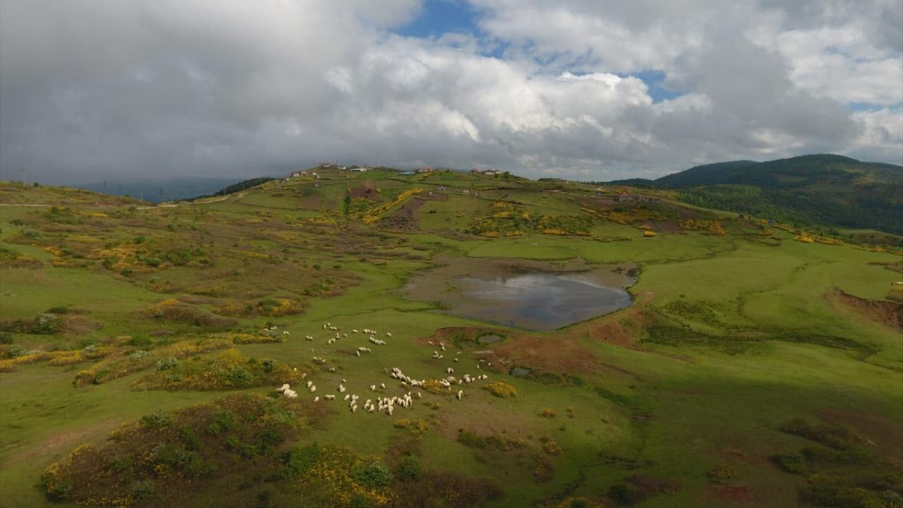 Koyun, koç ve kuzulardan oluşan küçükbaş hayvanlarıyla yaylaya gelen çobanlar ise sürülerini yemyeşil çayırlarda otlatıyor.