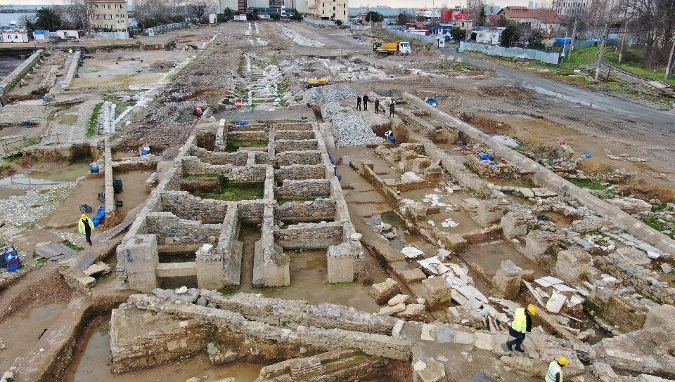 Haydarpaşa Garı çevresindeki arkeolojik kazı alanında yapılan çalışmalarda ortaya çıkan, "Körler Ülkesi" olarak bilinen Khalkedon (Kadıköy) antik şehrine ait buluntular, bölgenin 2 bin 500 yıllık tarihini gözler önüne seriyor. Arkeolojik kazı çalışmalarında gelinen son durum dronla havadan görüntülendi.