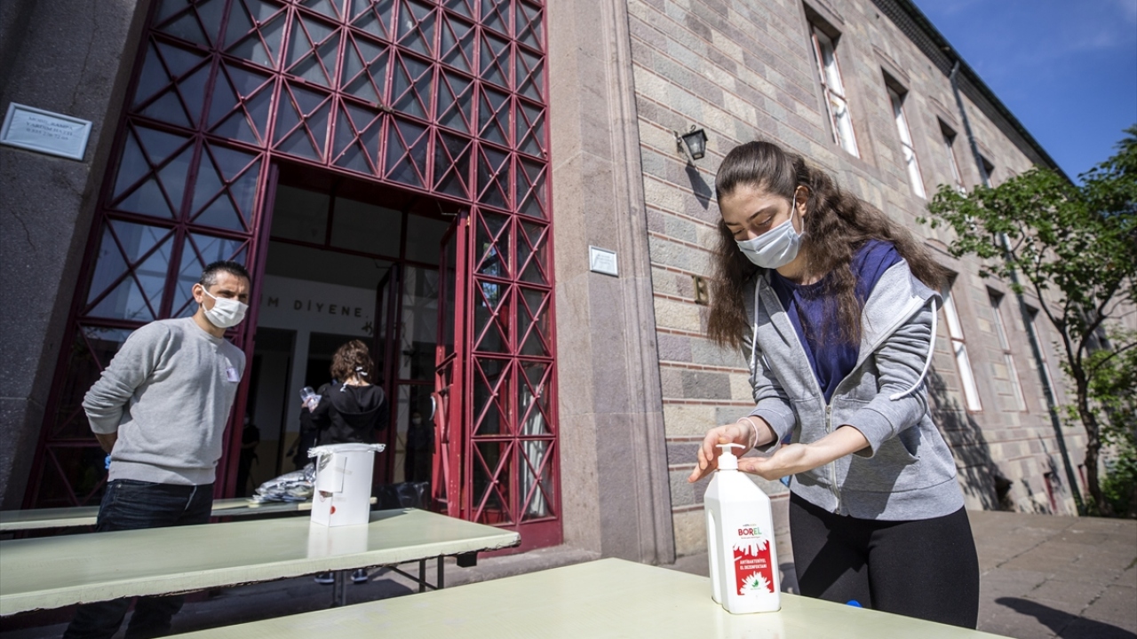 Bina girişinde adaylara el dezenfektanı uygulandı, maske ve el dezenfektanı dağıtıldı. İsteyen adaylar, kendi maske ve dezenfektanlarıyla sınava girdi.