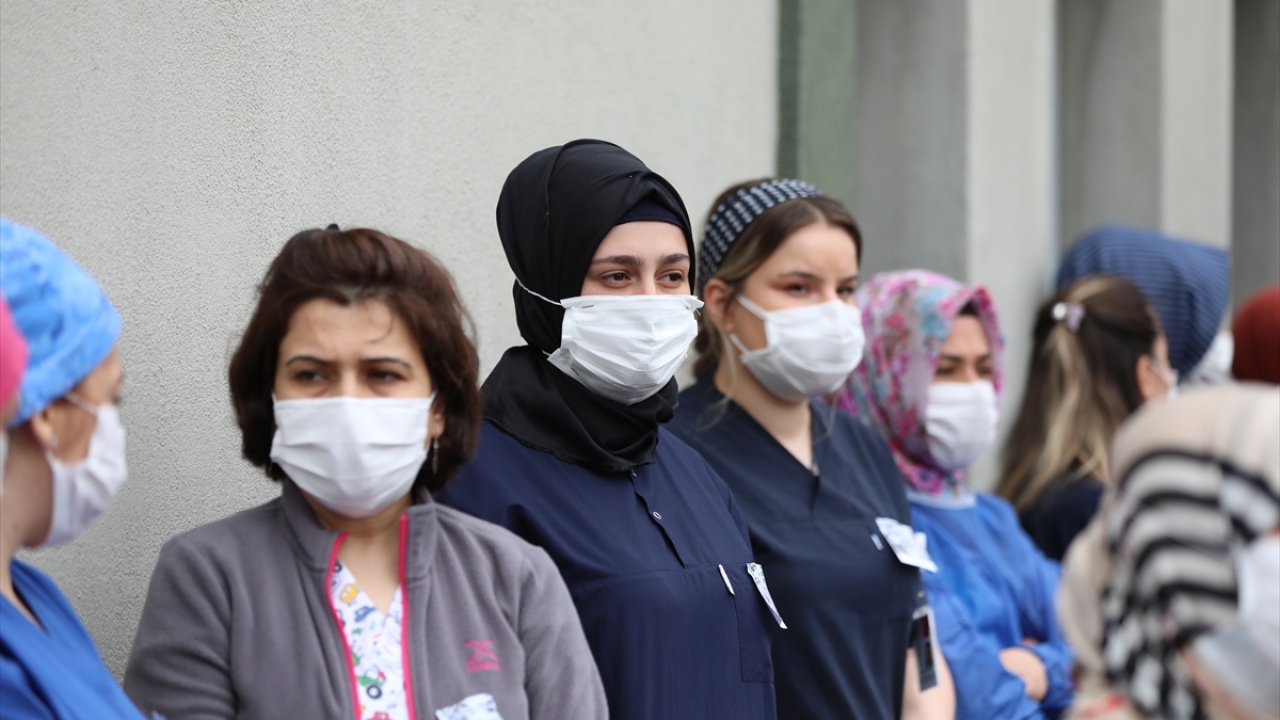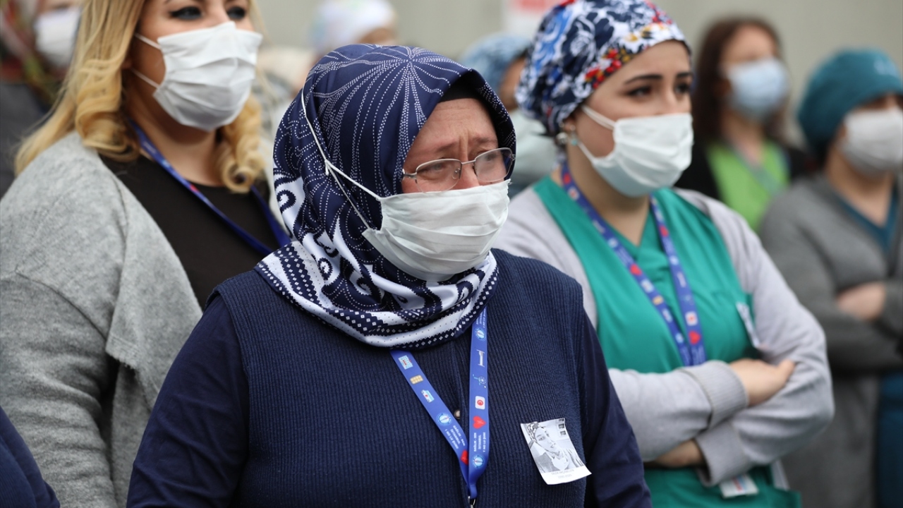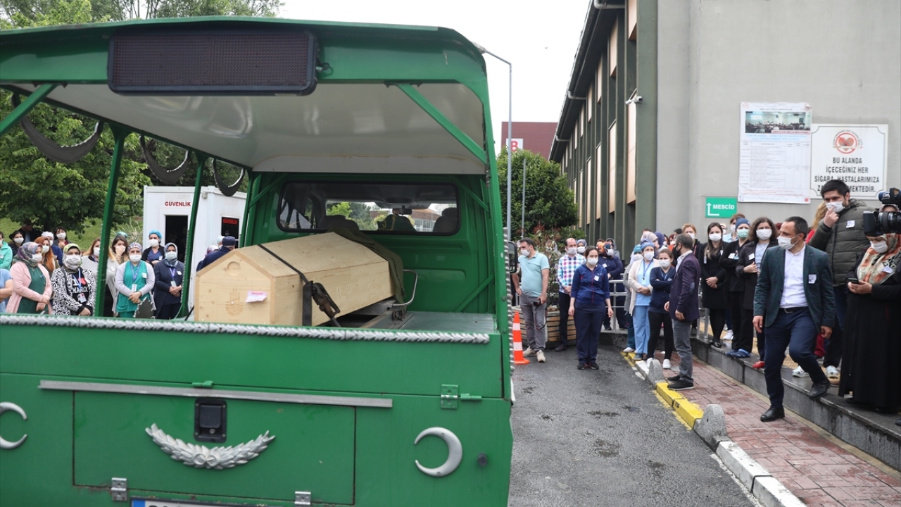 Yeni tip koronavirüse (Covid-19) karşı 11 Nisan'dan bu yana yaşam mücadelesi sürdüren, hamileyken hastalığından dolayı bebeği sezeryanla alınan ve dün yaşamını yitiren hemşire Dilek Akçabelen için görev yaptığı Mehmet Akif Ersoy Göğüs Kalp Damar Cerrahisi Eğitim Araştırma Hastanesi'nde tören düzenlendi.