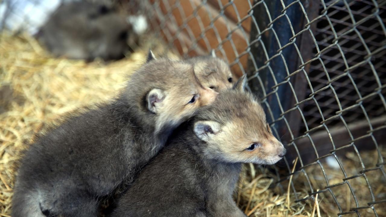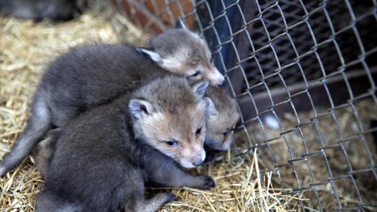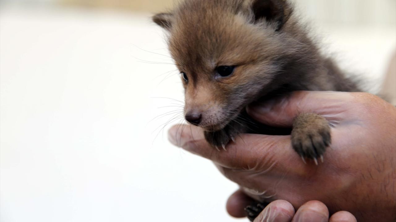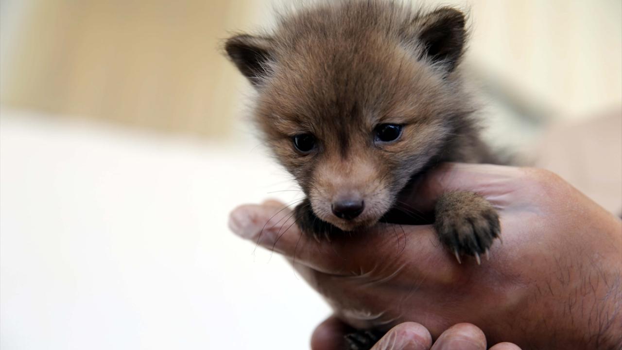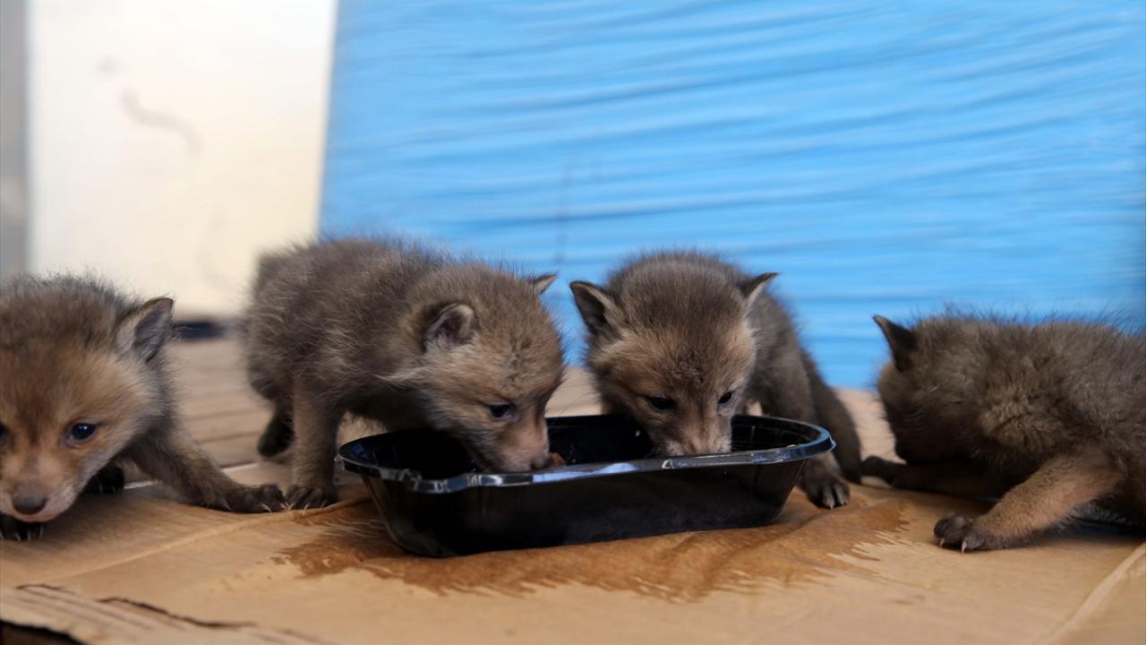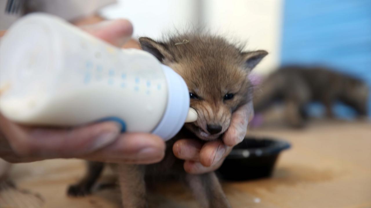 Koruma altında bulunan yavru tilkiler biberonla besleniyor