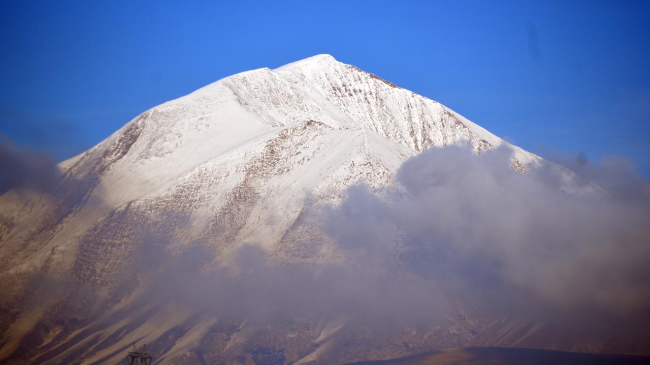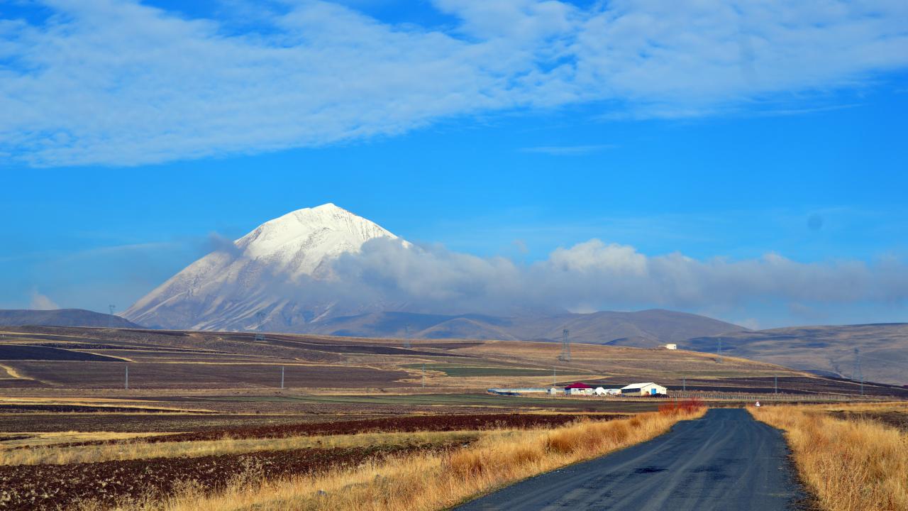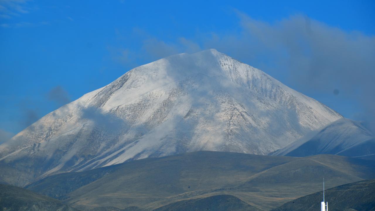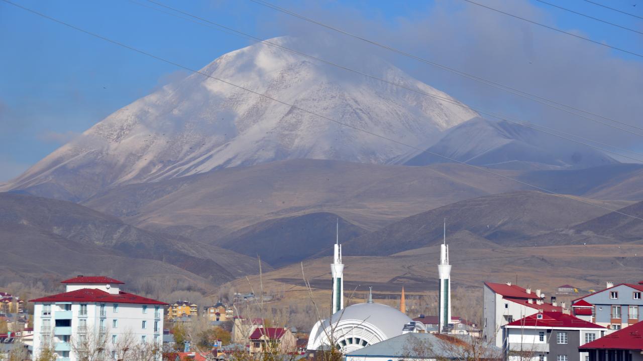 Ağrı'nın Eleşkirt ilçesinde etkili olan kar yağışı, 3 bin 433 metre yüksekliğe sahip Kösedağ'ın zirvesini beyaza bürüdü.