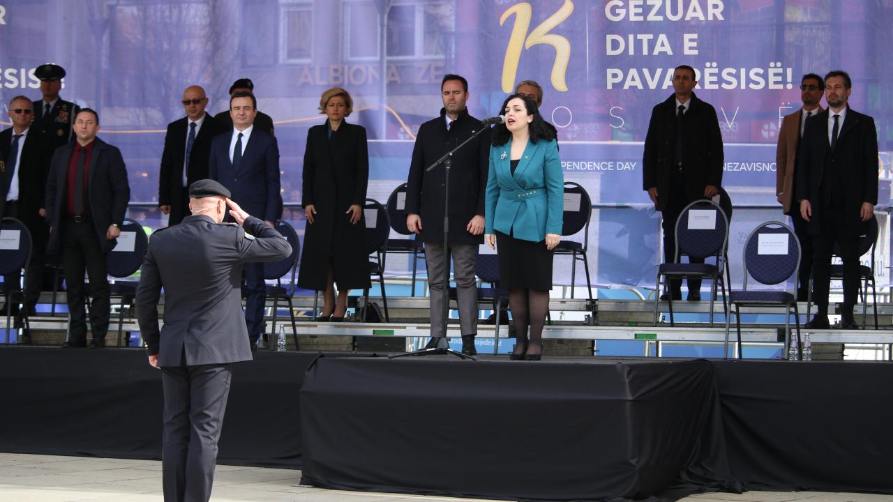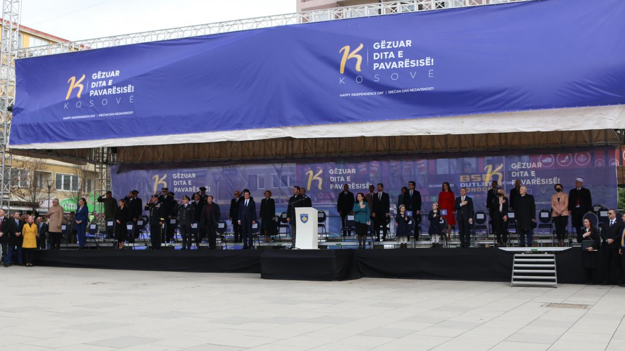 Kosova’da bağımsızlık yıl dönümü etkinlikleri, Cumhurbaşkanı Vjosa Osmani, Meclis Başkanı Glauk Konjufca ve Başbakan Albin Kurti’nin katılımıyla, Kosova Cumhuriyeti Bayrağı’nın hükümet binası önünde göndere çekilmesiyle başladı.