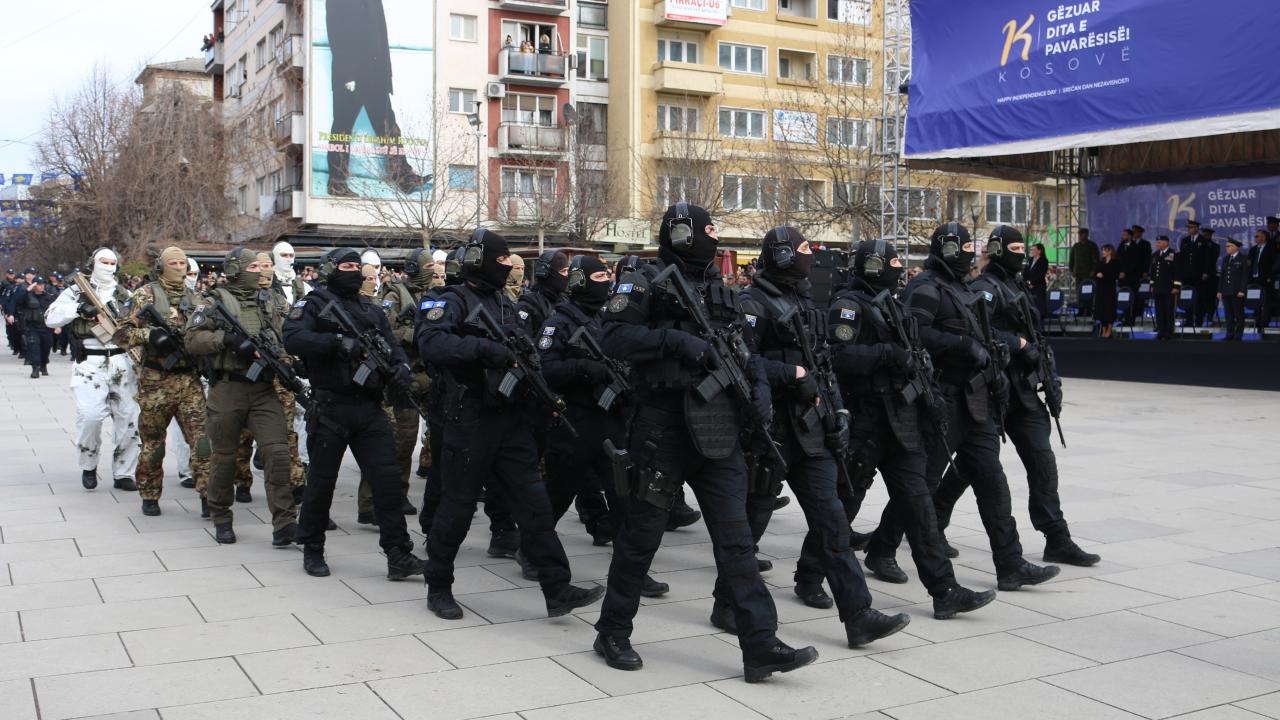Bağımsızlık Günü etkinlikleri kapsamında Kosova Meclisi’ndeki özel oturumun ardından Kosova Güvenlik Güçleri ve emniyet mensupları resmi geçit töreni düzenledi.