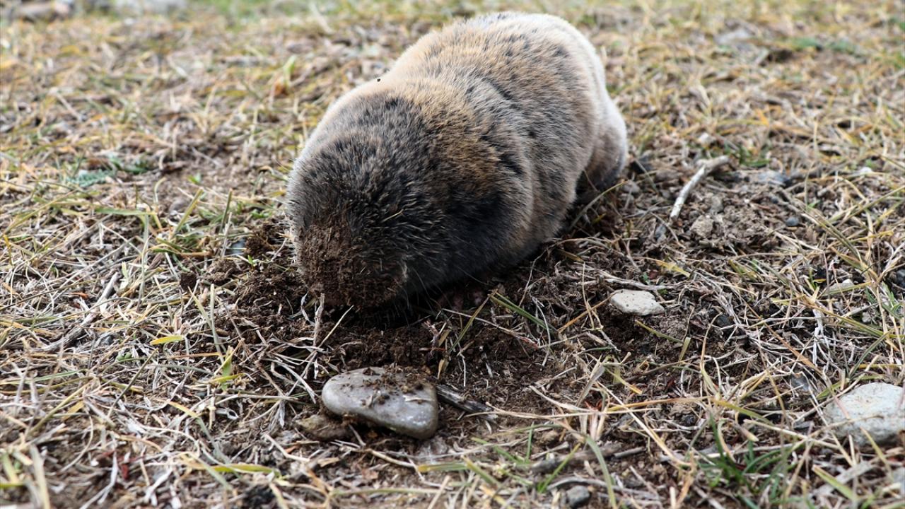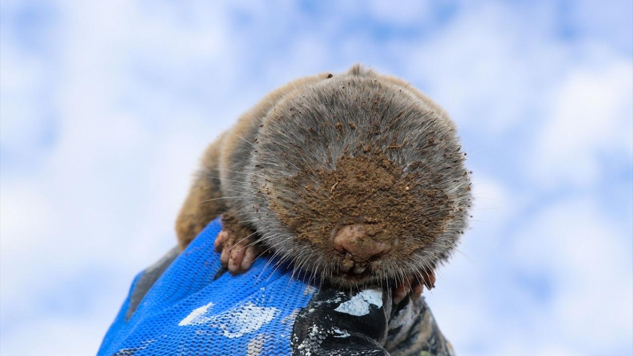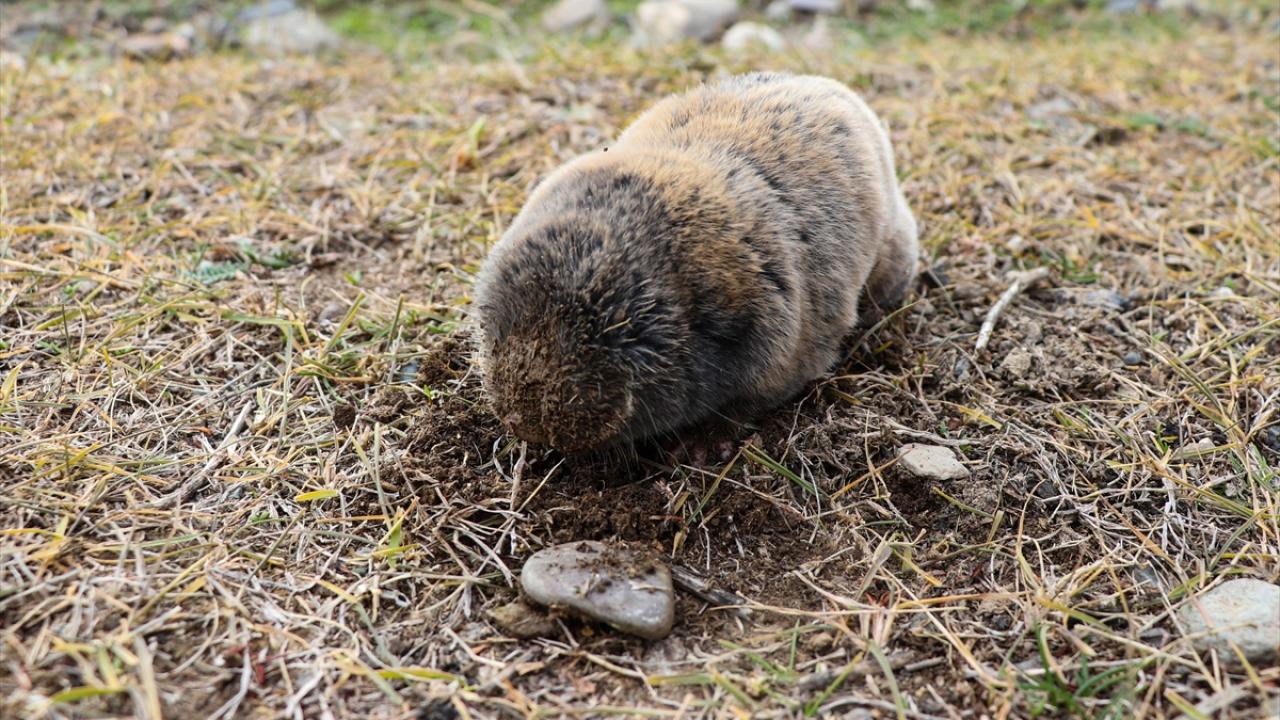 Doğada gözlerinin üstü deriyle örtülü olmasından dolayı ilgi çeken köstebeğin (Spalax leucodon) toprağı kazma anı kameralara yansıdı.