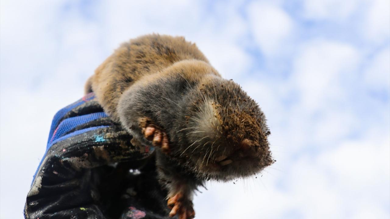Vatandaşlarca bunun üzerine serbest bırakılan köstebeğin, toprağı kazıp içine saklanması çevredekilerce ilgiyle izlendi.