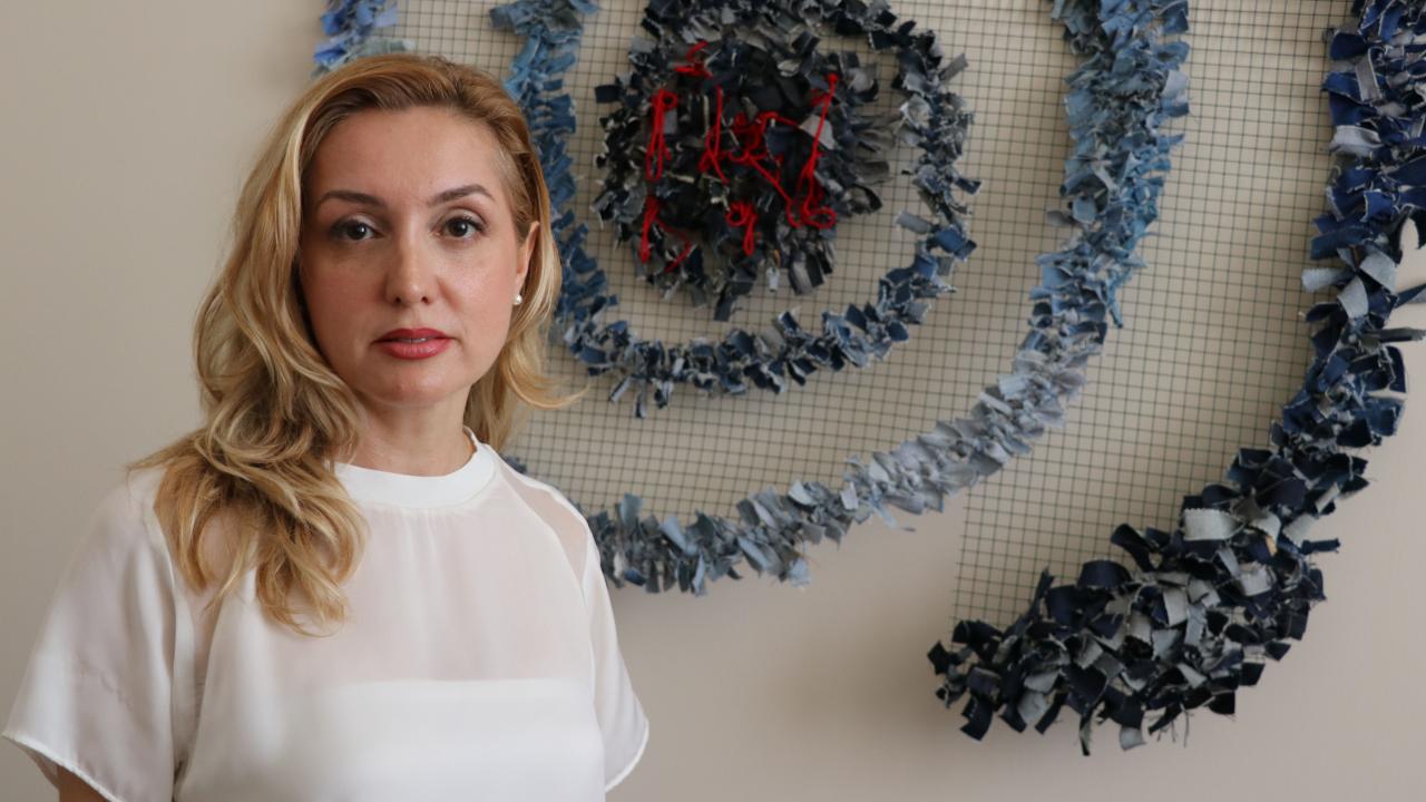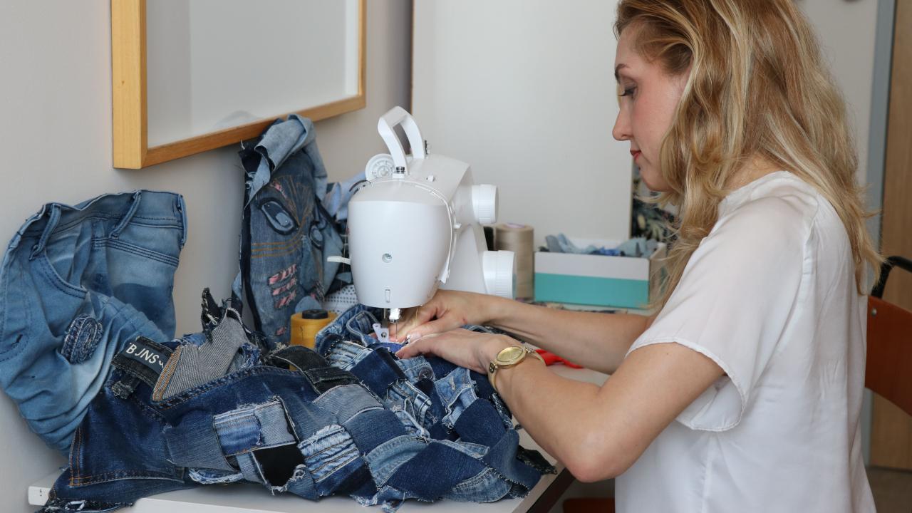 "Ham kumaş halinde elinize geliyor, siz kumaşı tasarlıyorsunuz, yıkamaya gidiyor, geliyor rengi değişiyor, yıpratmalar yapılıyor. Yıkamadan sonra tasarım yine bitmiyor, bu sefer üzerine aksesuarları ekleniyor. Tarihini incelediğinizde aslında bir işçi kıyafetiyken modanın en yüksek alanında yerini bulmuş. Bunu kendi hayatıma nasıl dahil edebilirim, sanatsal anlamda nasıl kullanabilirim diye çalışmaya başladım. Malzemelerle uğraşmam da o dönemde başladı. Komşularım, öğrenciler, arkadaşlarım, eski, gerçekten artık kullanılacak halde olmayan denim getirdiler. Ben bunları yıllarca biriktirdim. Yeri geldi eskicilerden satın aldım. Artık tekstil, giyim olarak işe yaramayacak, atılacak bir parçayı alıp işledim, kestim, biçtim, tekrardan hayata döndürdüm. Sürdürülebilir tasarımı da burada ele almış oldum."