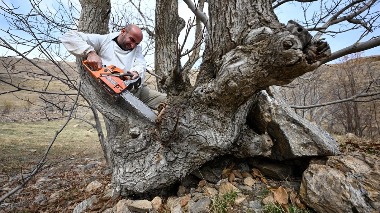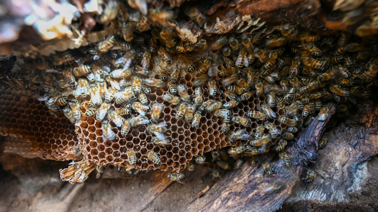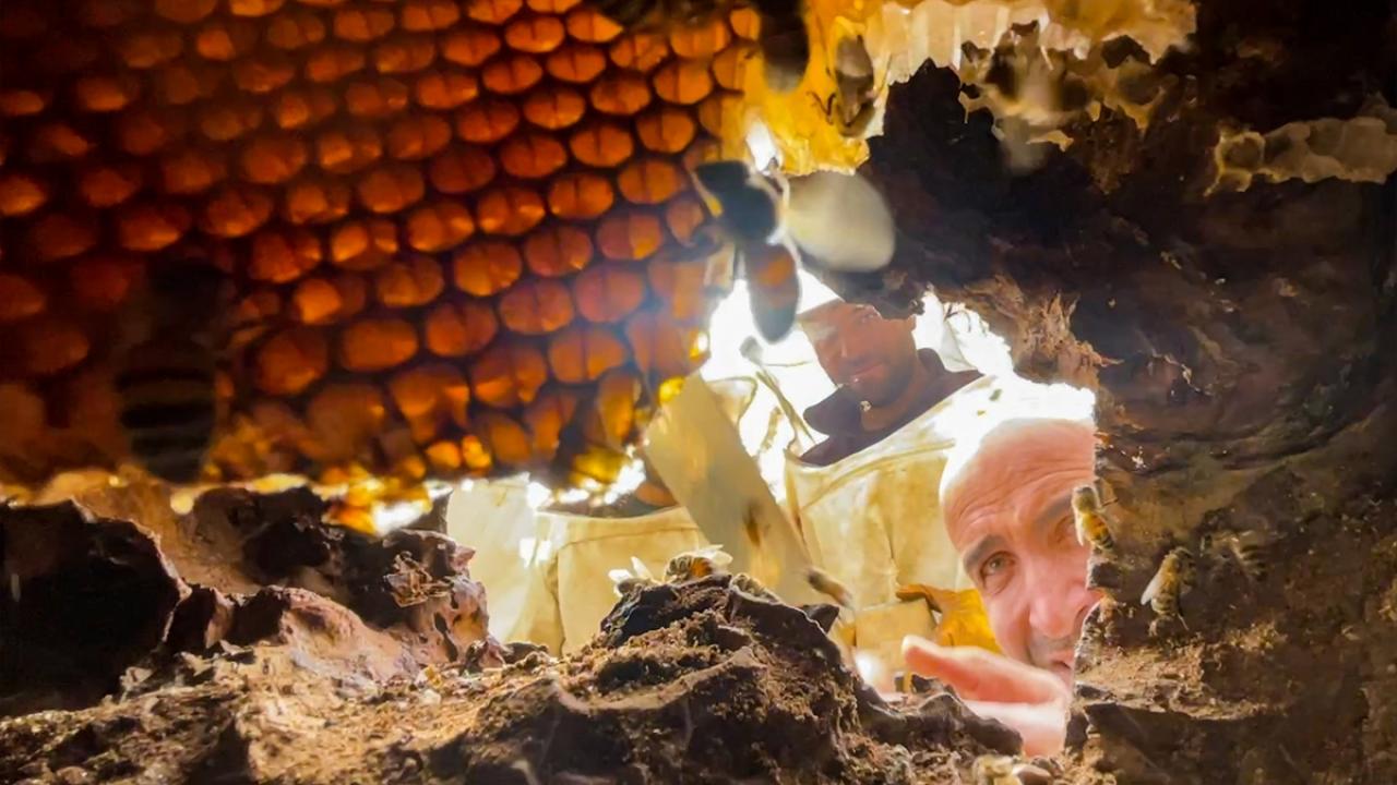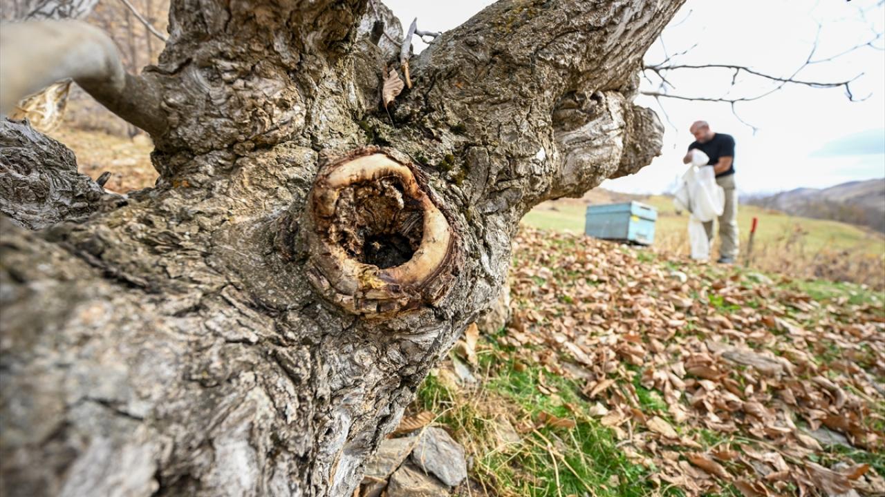 Van'da arıcılık yapan "Arı adam" lakaplı Abdulvahap Semo, Çatak ilçesinde kovanlardan kaçan arıların yuva yaptığı ceviz ağacının kovuğundan 5 kilogram bal çıkardı.