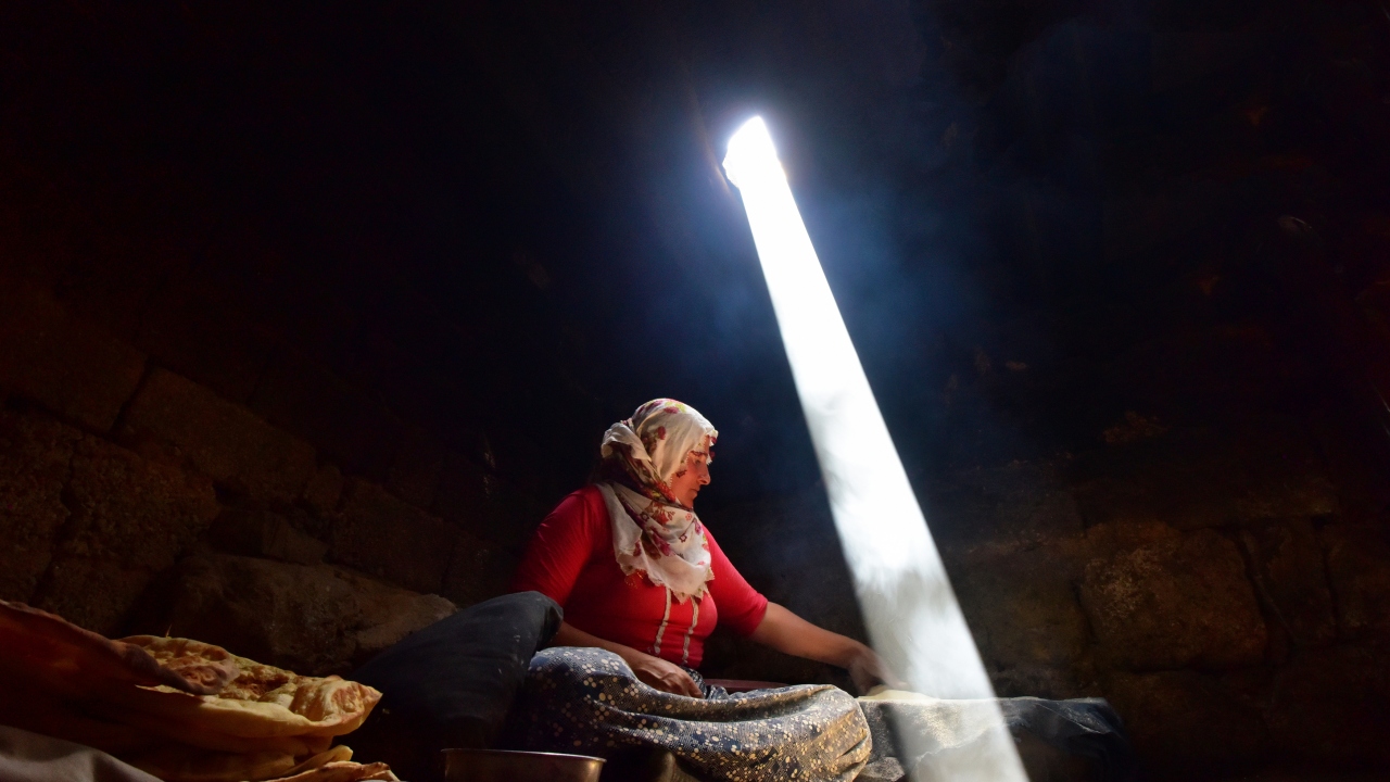 Tandır evlerinin üstünde bulunan havalandırma deliklerinden içeriye süzülen ışığın dumanla oluşturduğu ambiyansla ortaya çıkan görüntülerle birlikte 2-3 saat boyunca zorlu bir emek harcayan kadınlar gün sonunda kendilerine 1 hafta veya 10 gün yetecek tandır ekmeklerini pişiriyor.