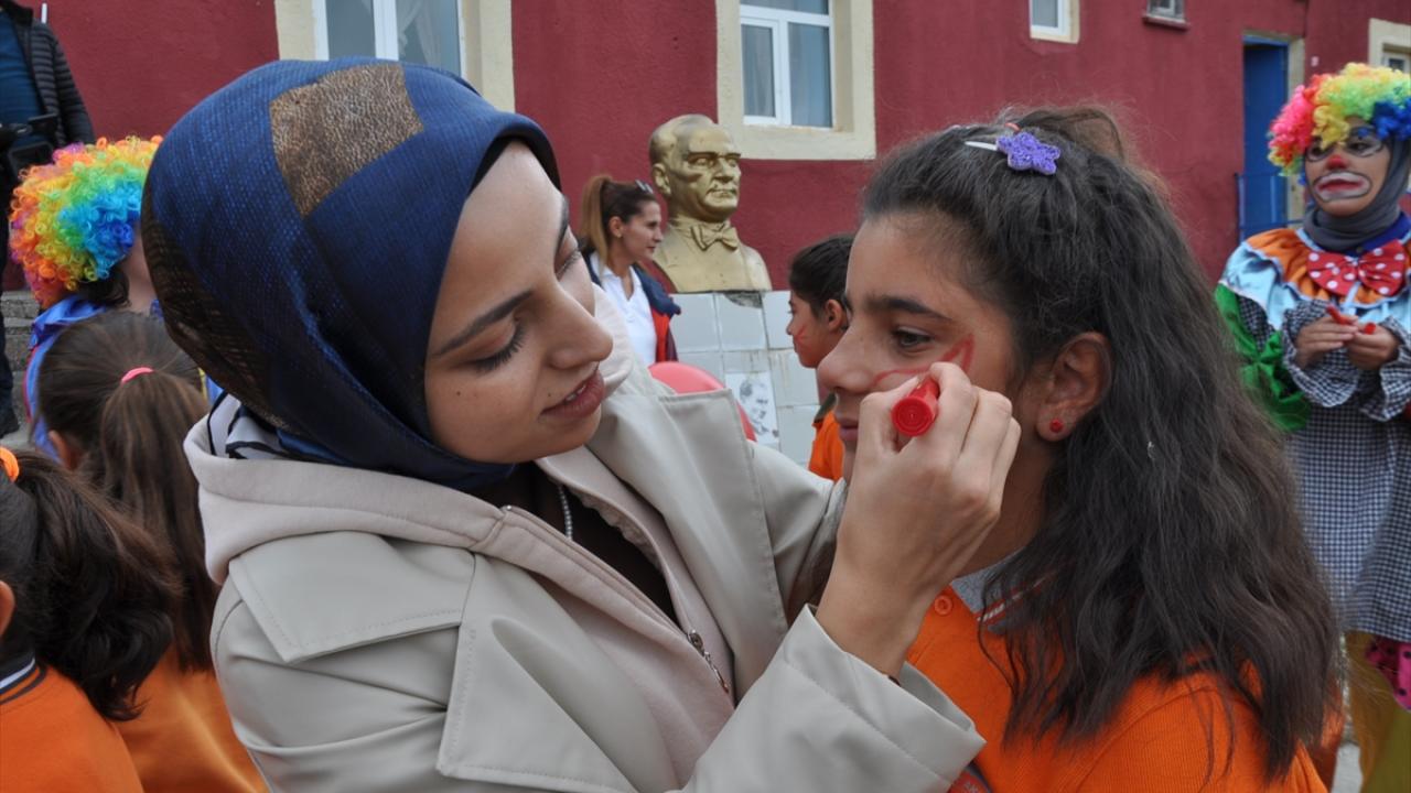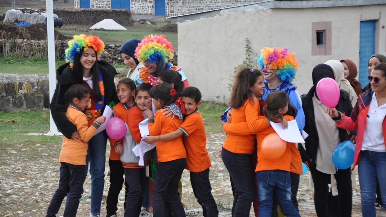 Köydeki öğrencileri palyaço kıyafetiyle eğlendiren Yağmur Yılmaz da "Çocukları mutlu etmek hepimizi mutlu ediyor, Serhat Kız Öğrenci Yurdu olarak böyle etkinliklerde çok bulunuyoruz." diye konuştu.