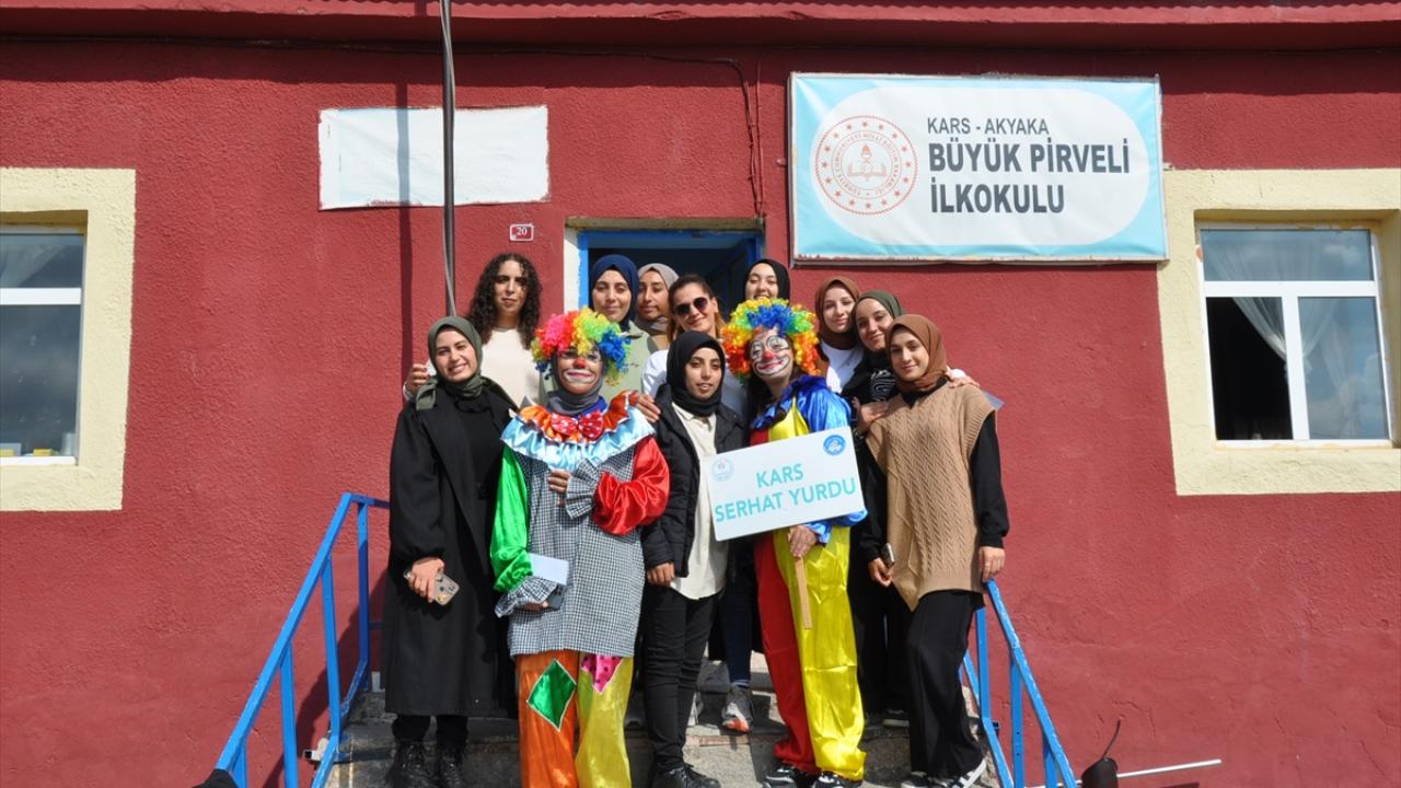 Kars Kafkas Üniversitesinde okuyan, Gençlik ve Spor Bakanlığı bünyesindeki Serhat Kız Öğrenci Yurdu`nda konaklayan öğrenciler, yaklaşık 4 yıl önce başlatılan sosyal sorumluluk projesiyle köy köy gezerek etkinlik yapıyor.