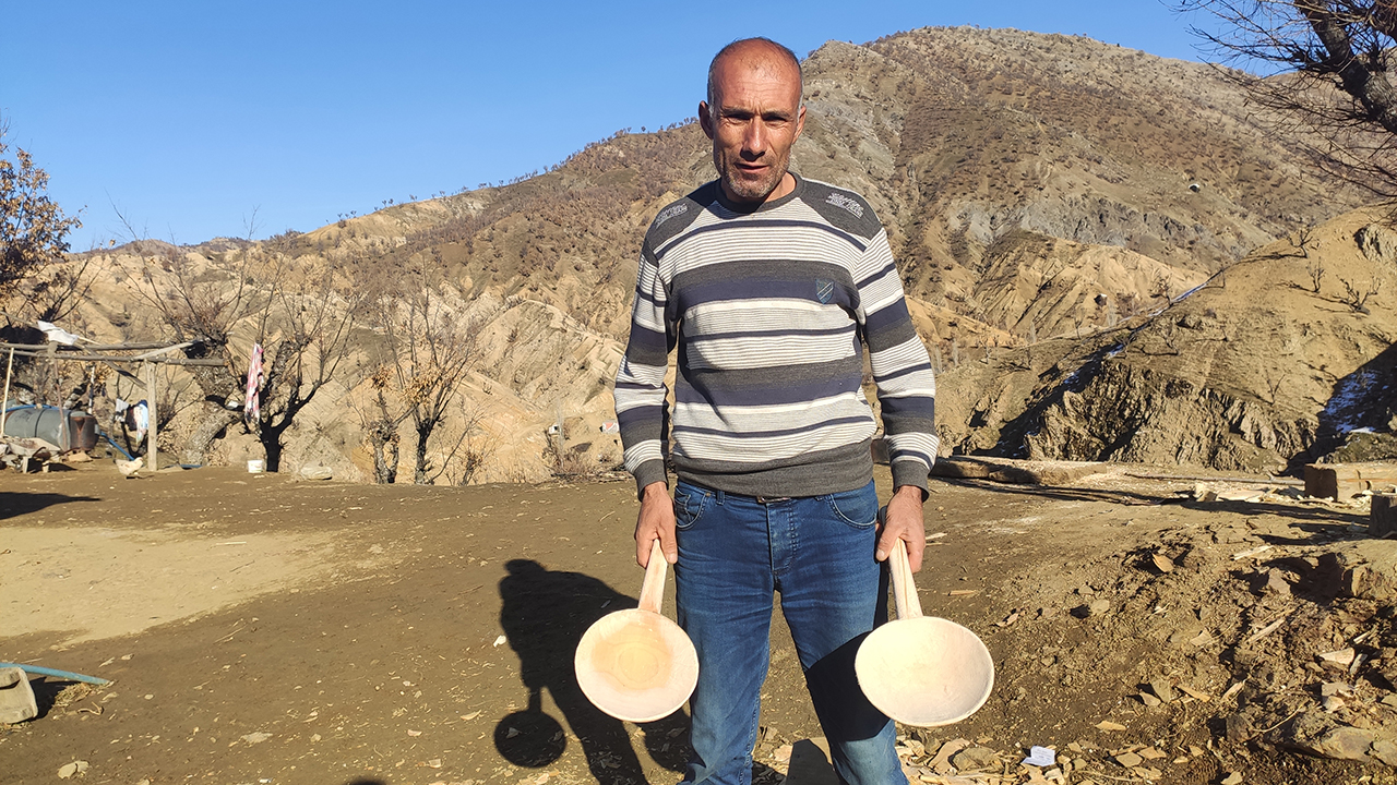 Sason ilçesine bağlı İncesu köyünde oturan Celal Ağım, salgında evde geçirdiği zamanı dede mesleği olan tahtadan kepçe, kaşık, havan ve benzeri malzemeler yaparak geçiriyor.