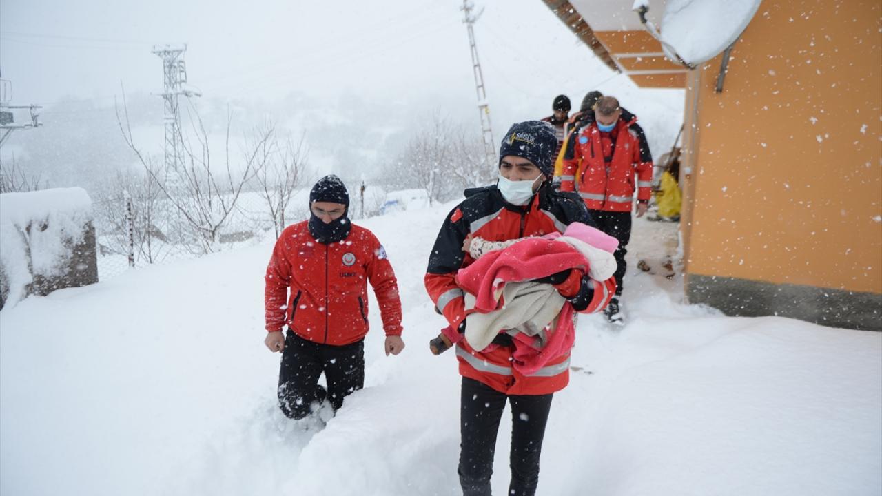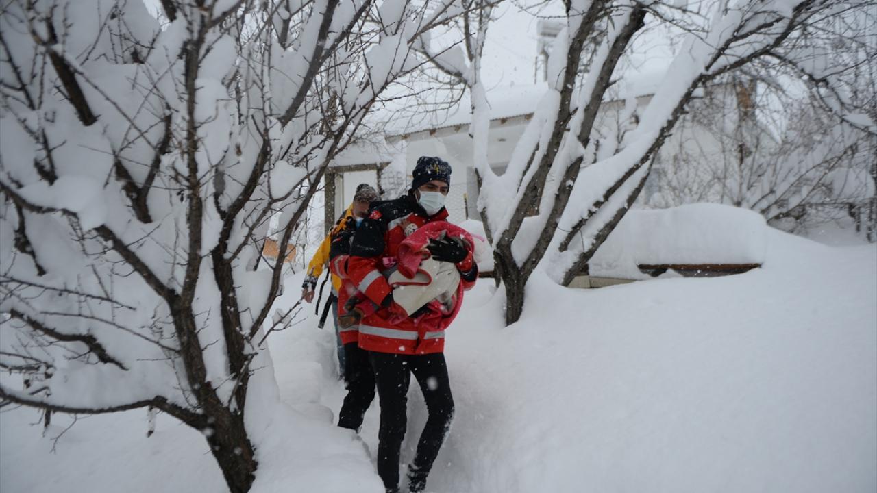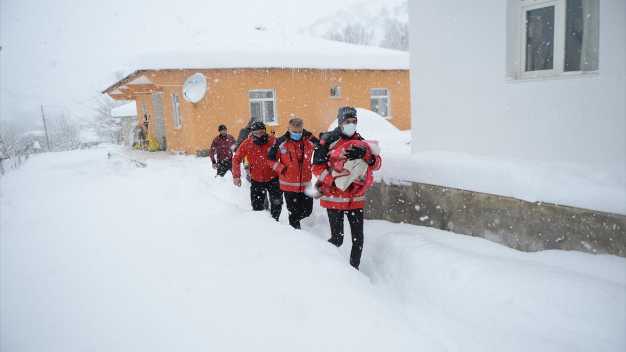 Bingöl'de etkili olan yoğun kar yağışı ve tipi nedeniyle köyde mahsur kalan hasta Suriyeli çocuk Ulusal Medikal Kurtarma Ekibi (UMKE) tarafından hastaneye ulaştırıldı.