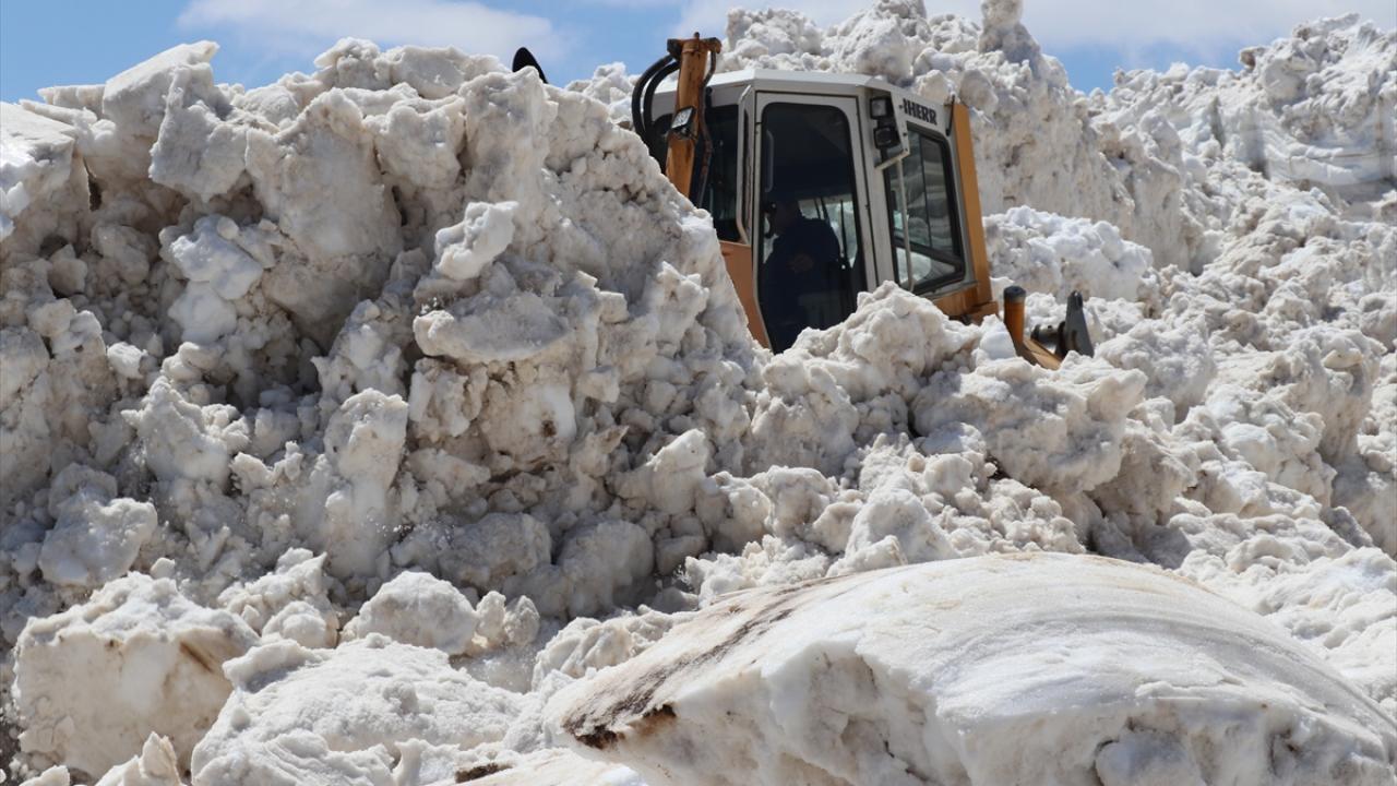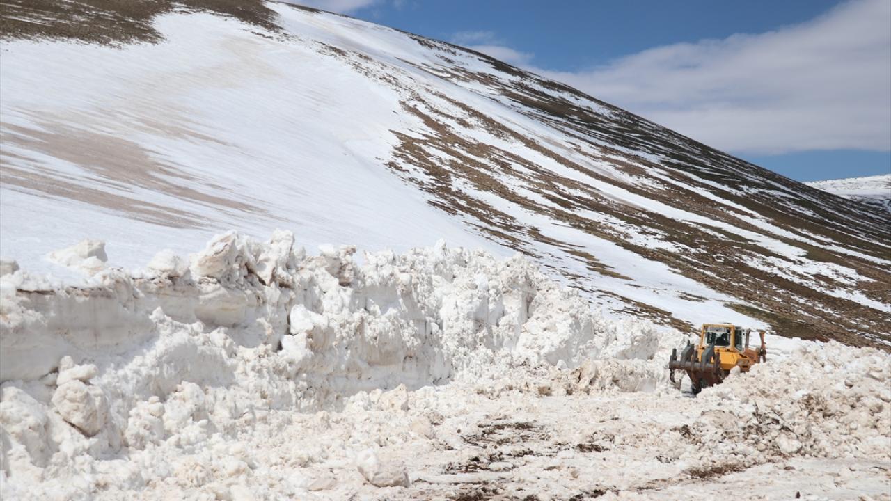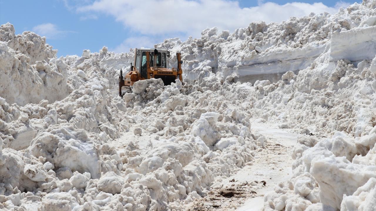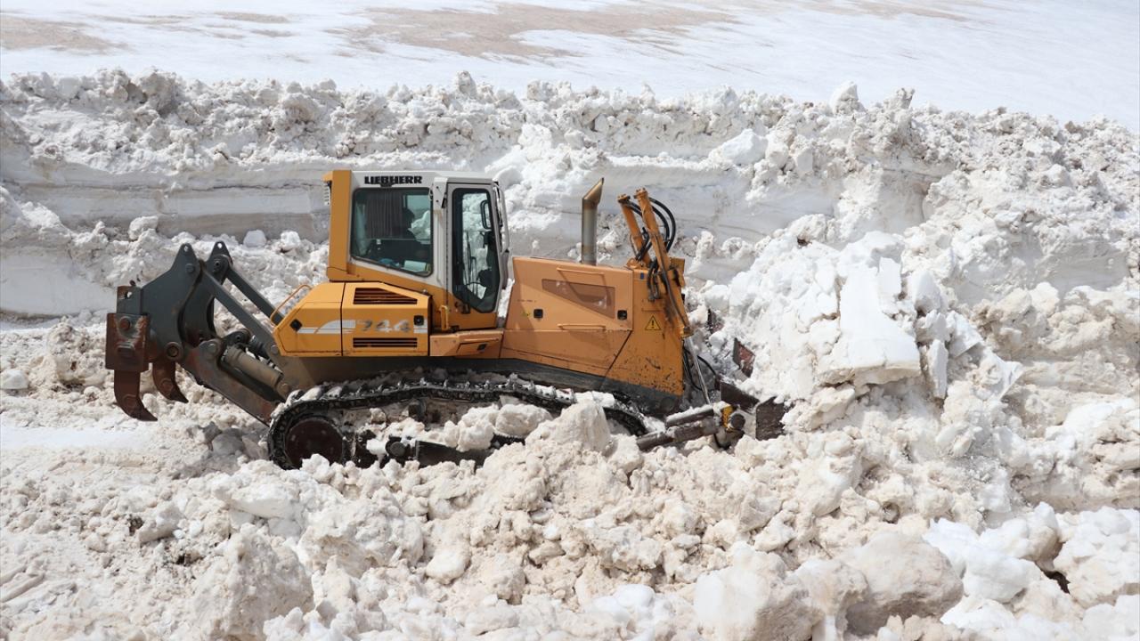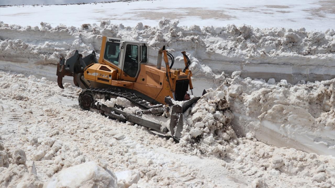 Göçerlerin de yaylaya çıkmak için kullandığı güzergahta yoğun çalışma yürüten ekipler, kar kalınlığının dozer boyunu aşması nedeniyle güçlükle ilerliyor.