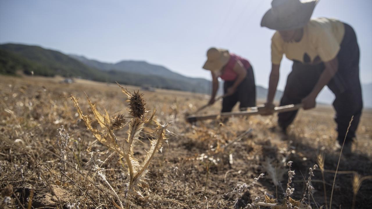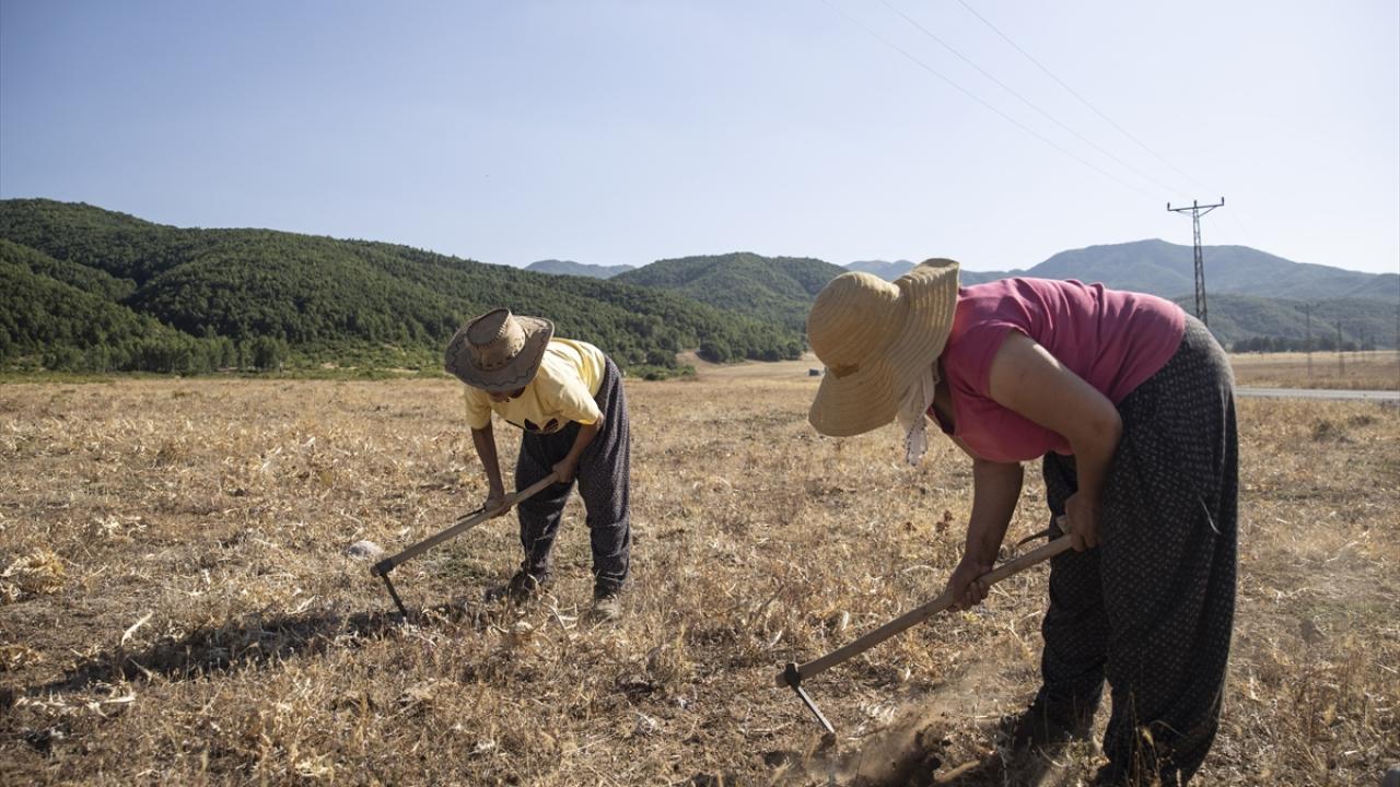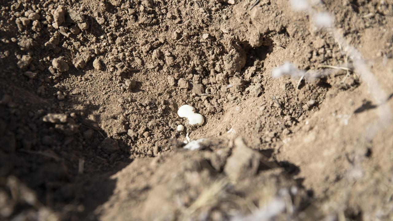 Günün belirli saatlerinde araziye çıkan köylüler, ilk olarak çapa yardımıyla kurumuş kengerlerin kök kısmında çukur kazıyor.