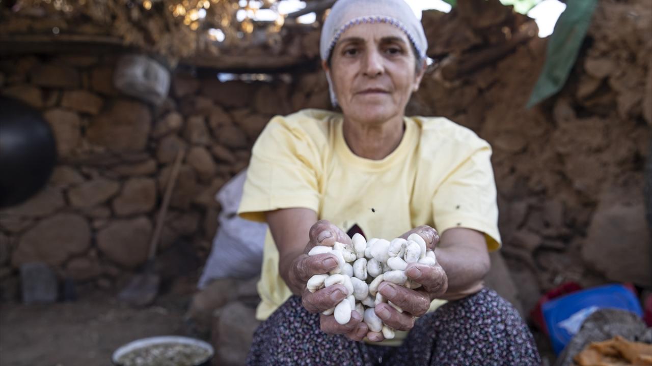 Bir günlük bekleme süresinin ardından sakızı toplayan köylüler, eve getirdikleri ürünleri taş ve ot parçalarından temizlemek için de uğraş veriyor.