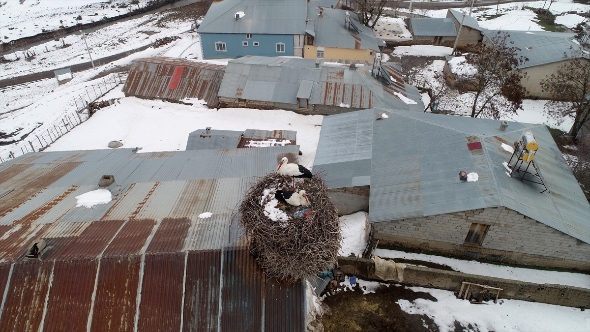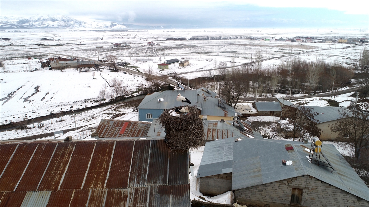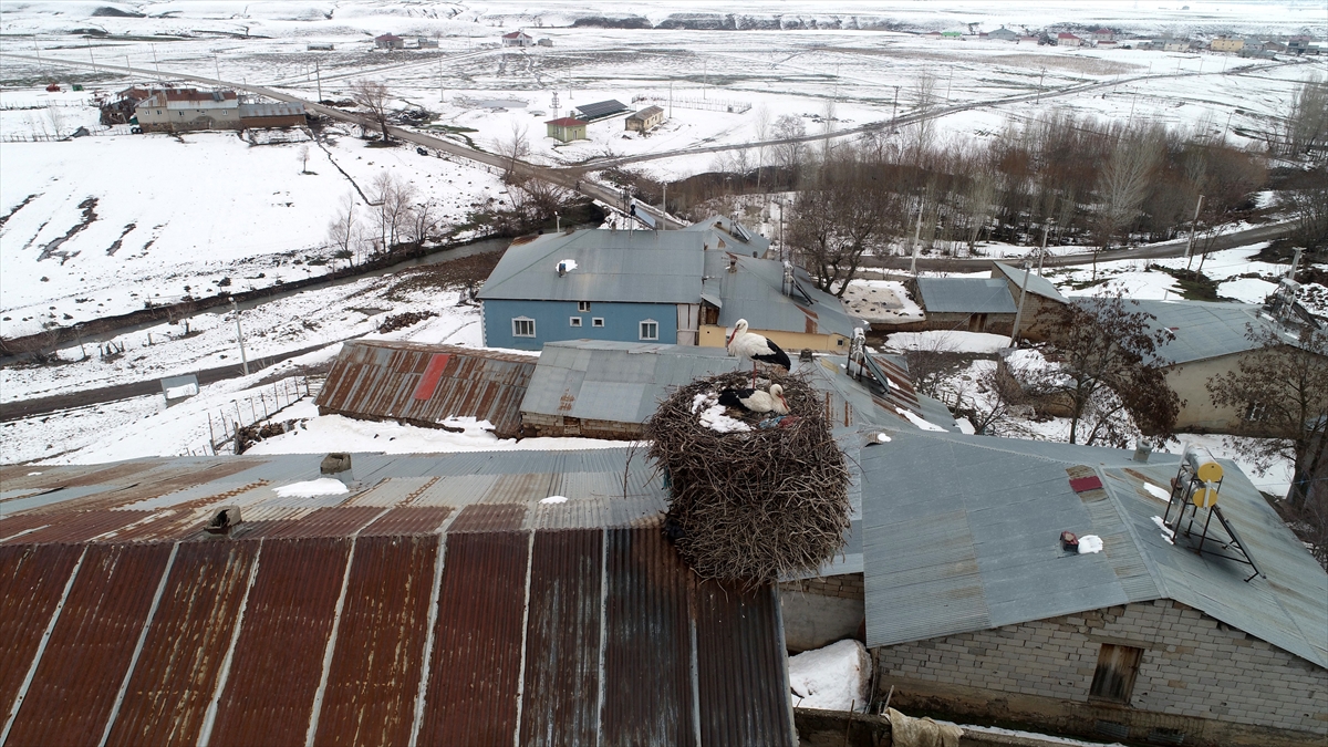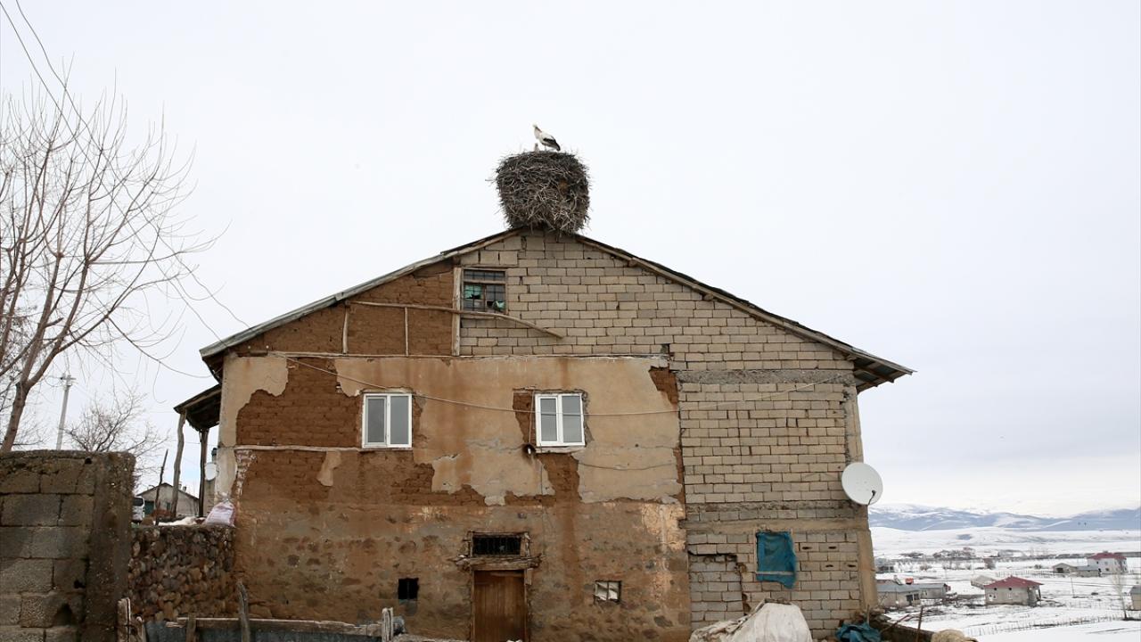 Bu yıl da havanın ısınmasıyla Muş Ovası`na gelen 2 leylek, iki katlı evin çatısındaki yuvada konaklamaya başladı.