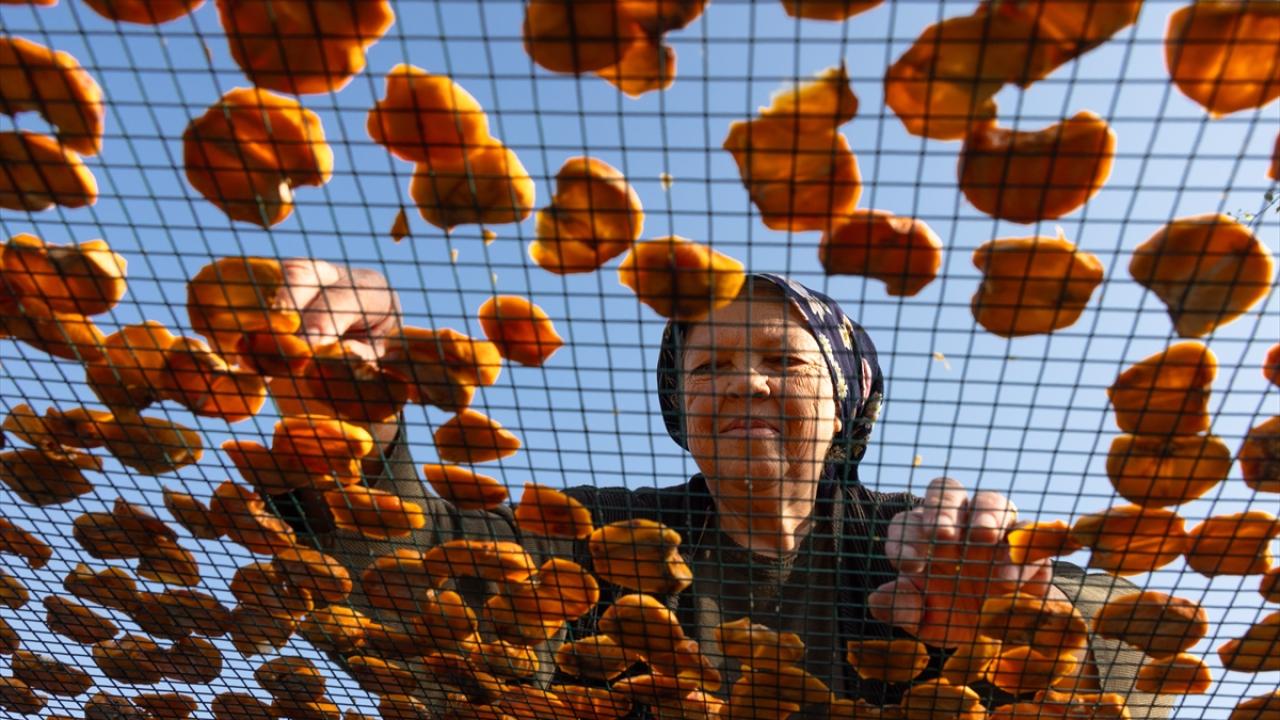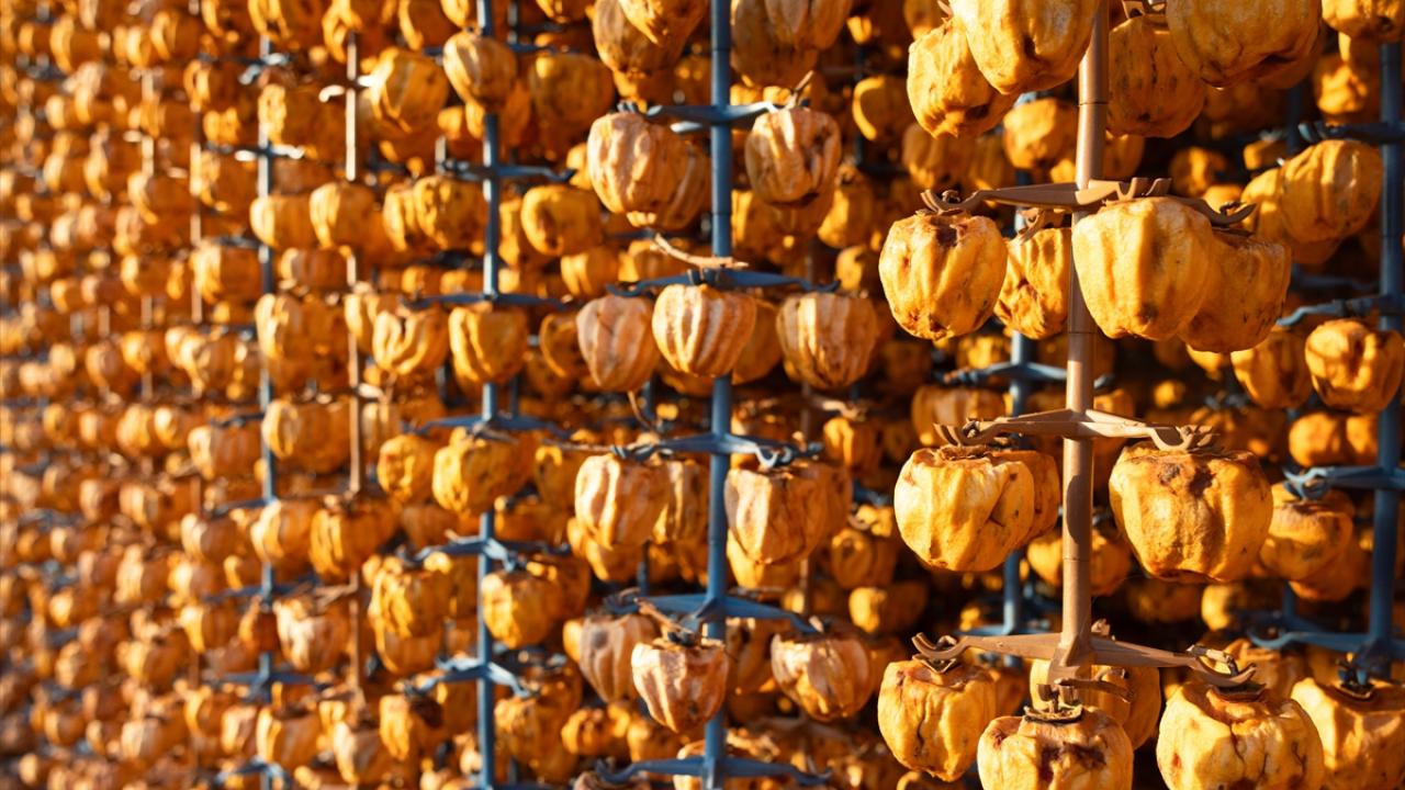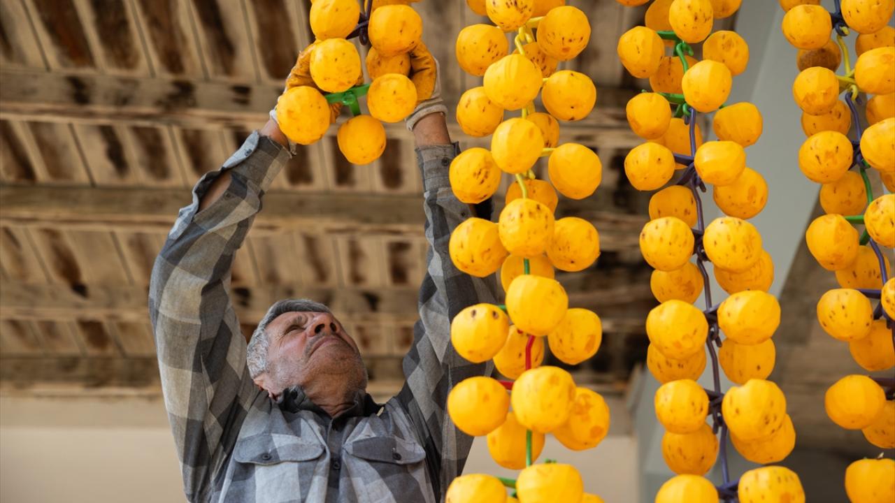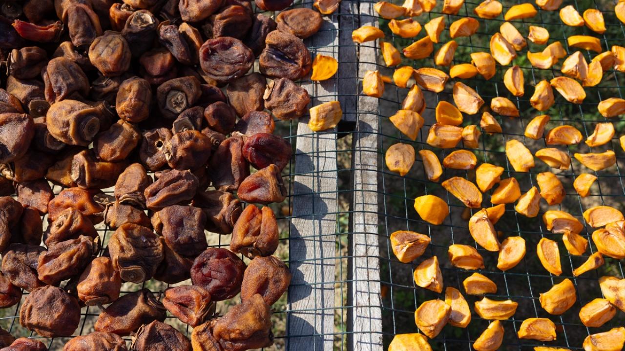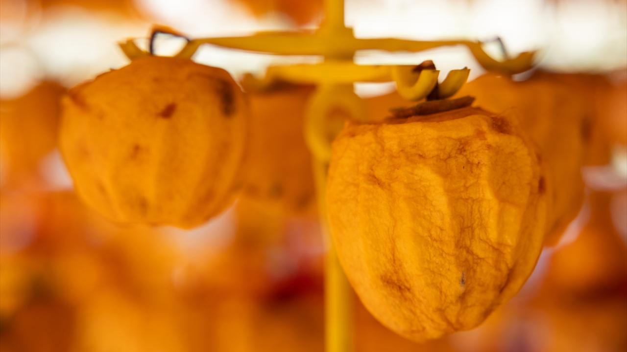 Bahçelerde ağaçlardan toplanan hurmalar, kurutma alanlarında önce soyuluyor ardından özenle iplere dizilerek tezgahlara ve evlerin damlarına asılarak doğal yöntemlerle kurutuluyor.