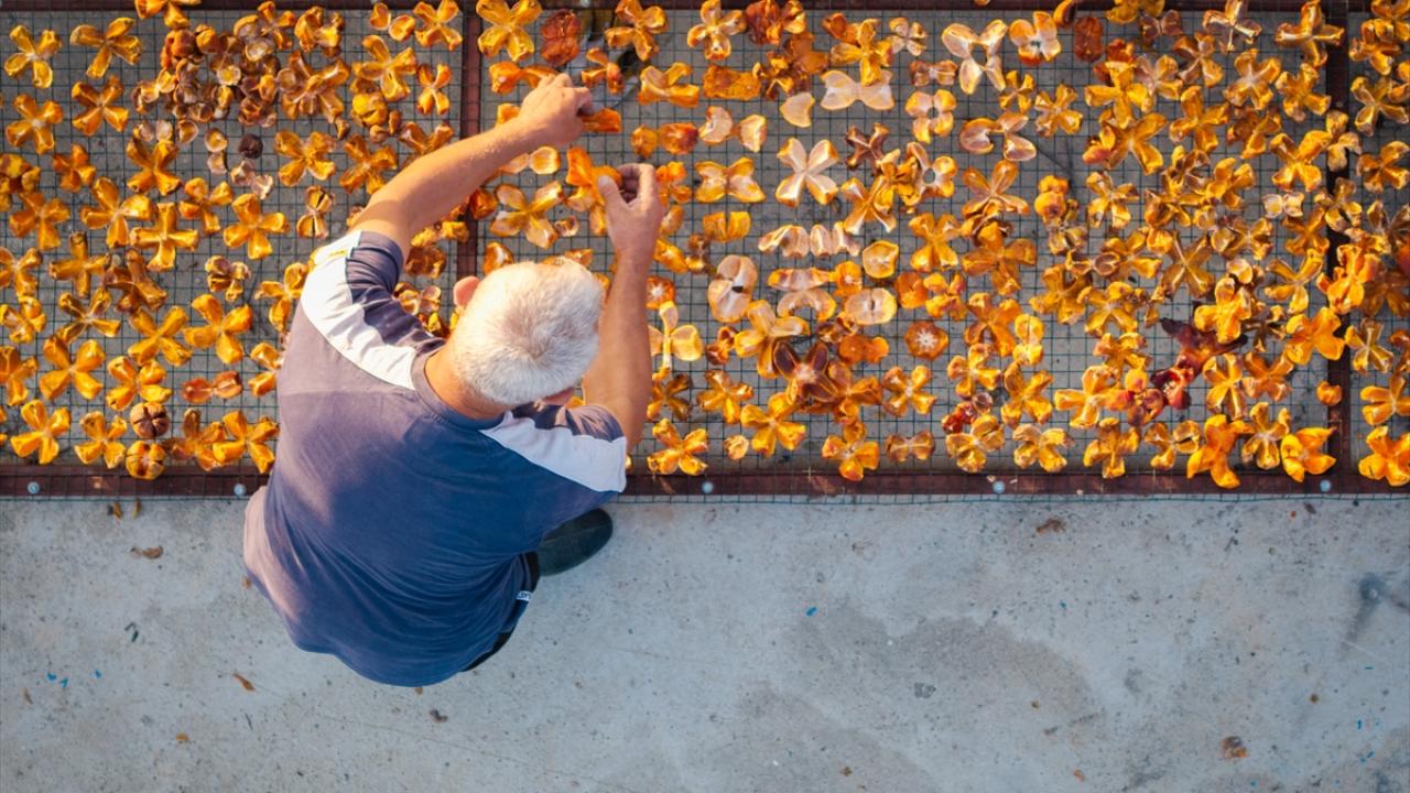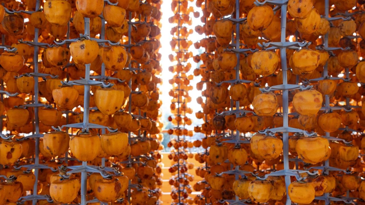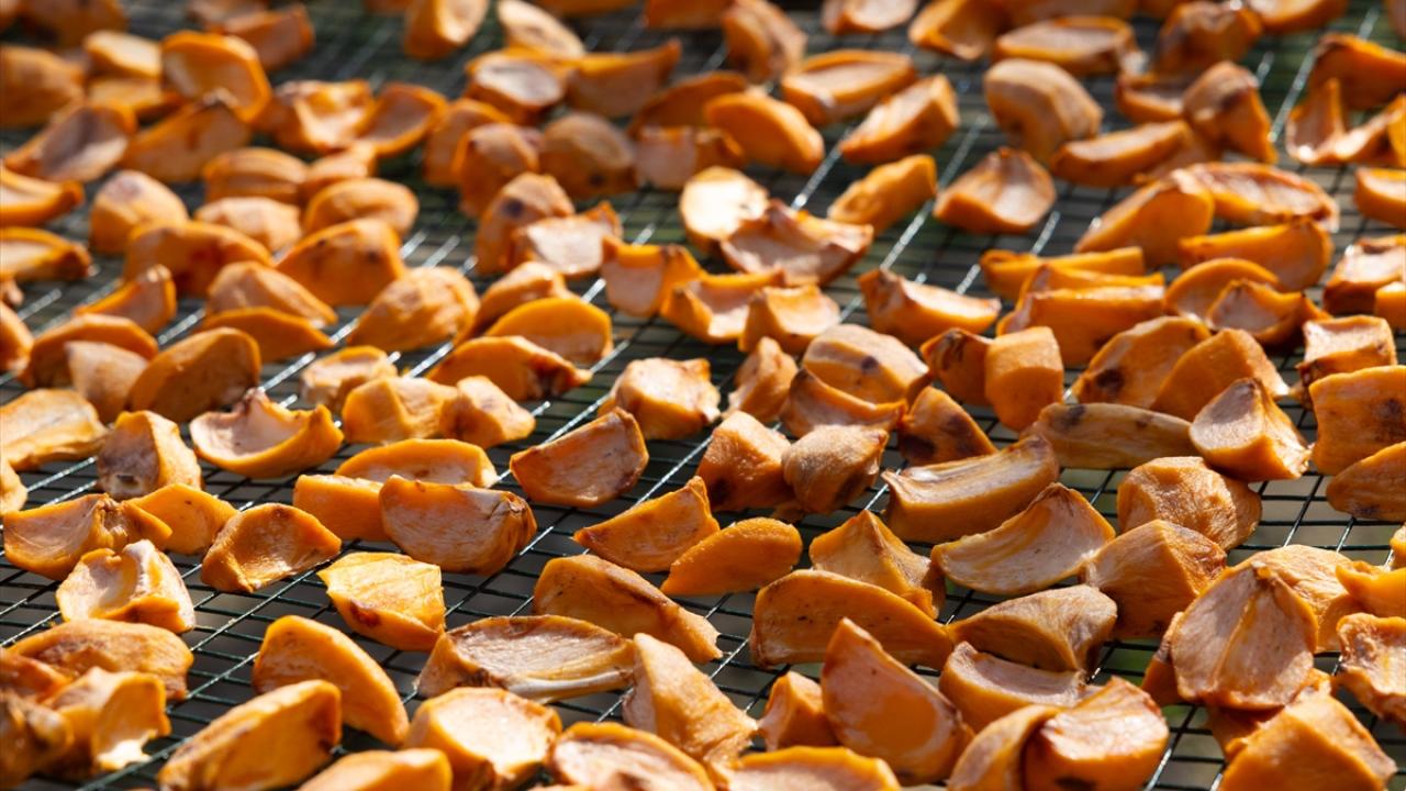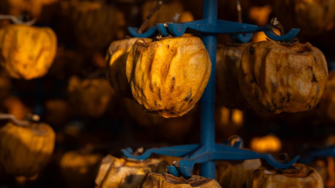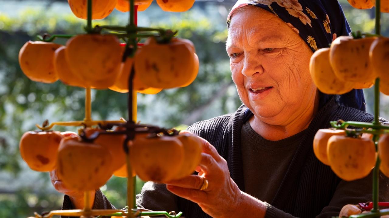Bahçelerde ağaçlardan toplanan hurmalar, kurutma alanlarında önce soyuluyor ardından özenle iplere dizilerek tezgahlara ve evlerin damlarına asılarak doğal yöntemlerle kurutuluyor.