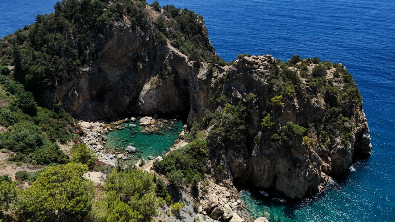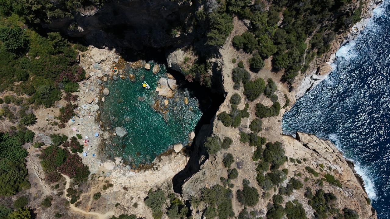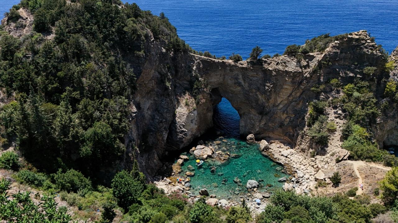 Kayalıklarla çevrili koyun girişinde teknelerin giriş yapabileceği genişlikte doğal bir kemer de yer alıyor.
