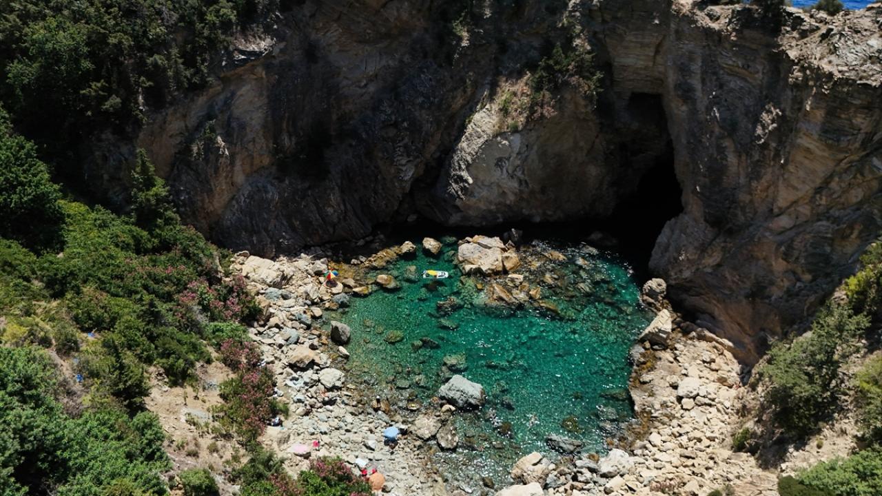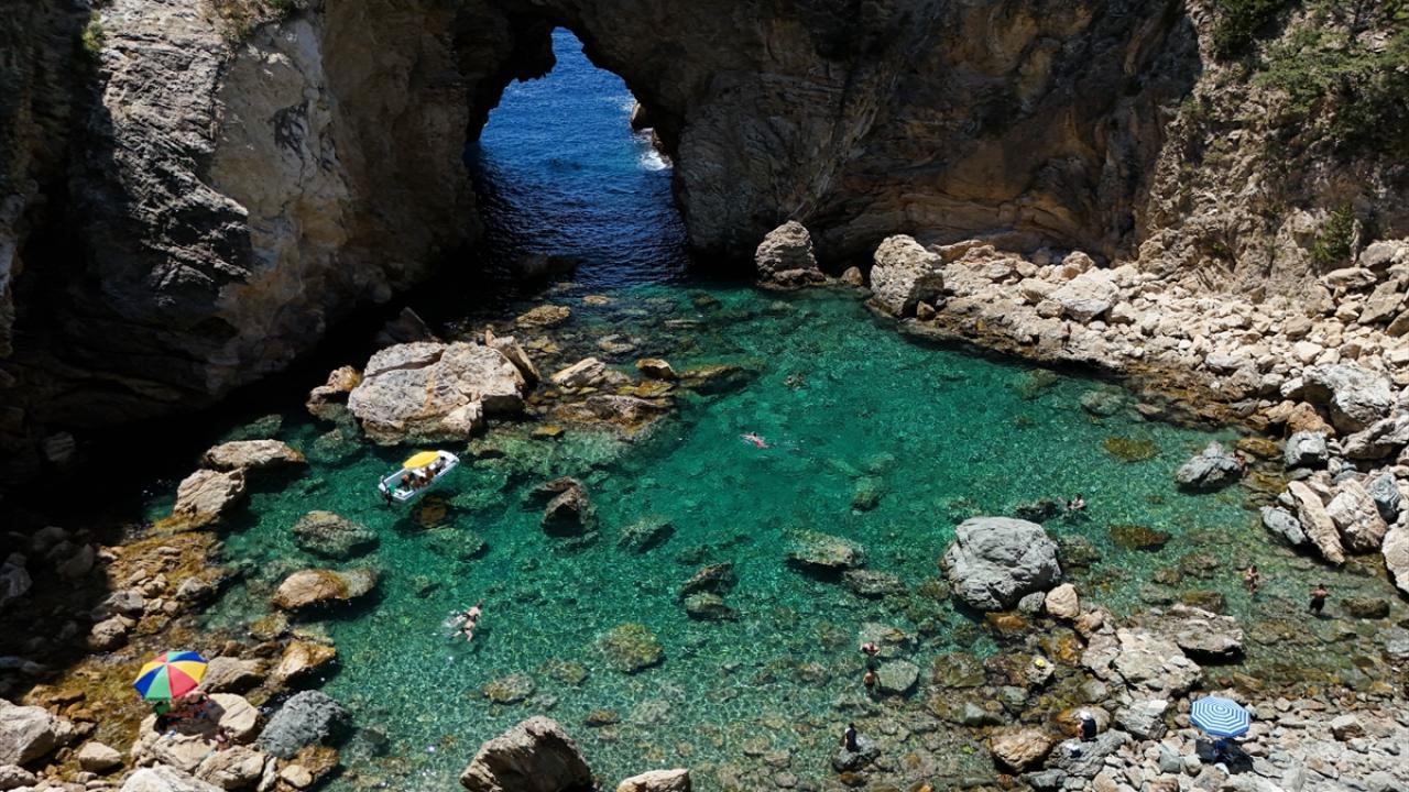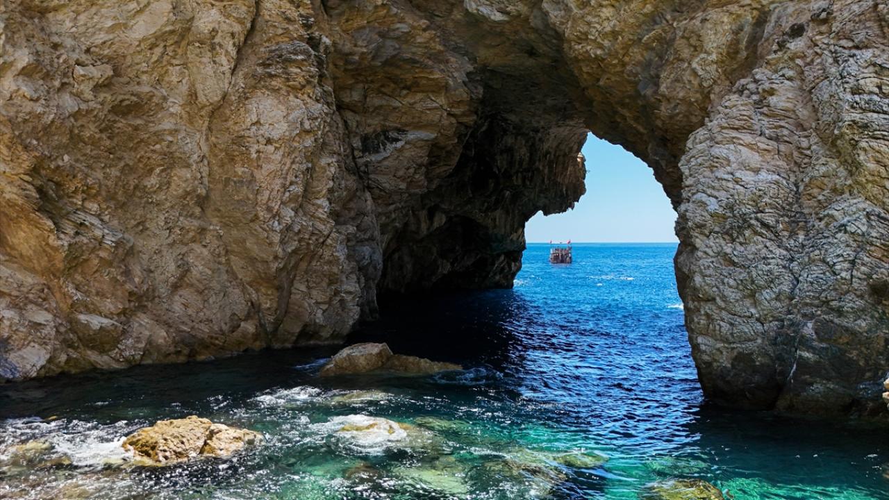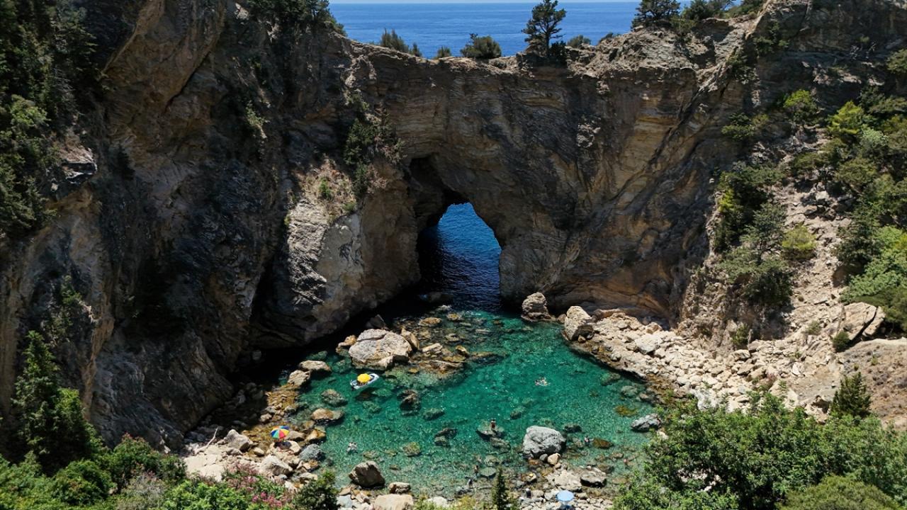 Kayalıklarla çevrili koyun girişinde teknelerin giriş yapabileceği genişlikte doğal bir kemer de yer alıyor.