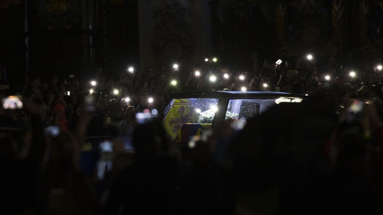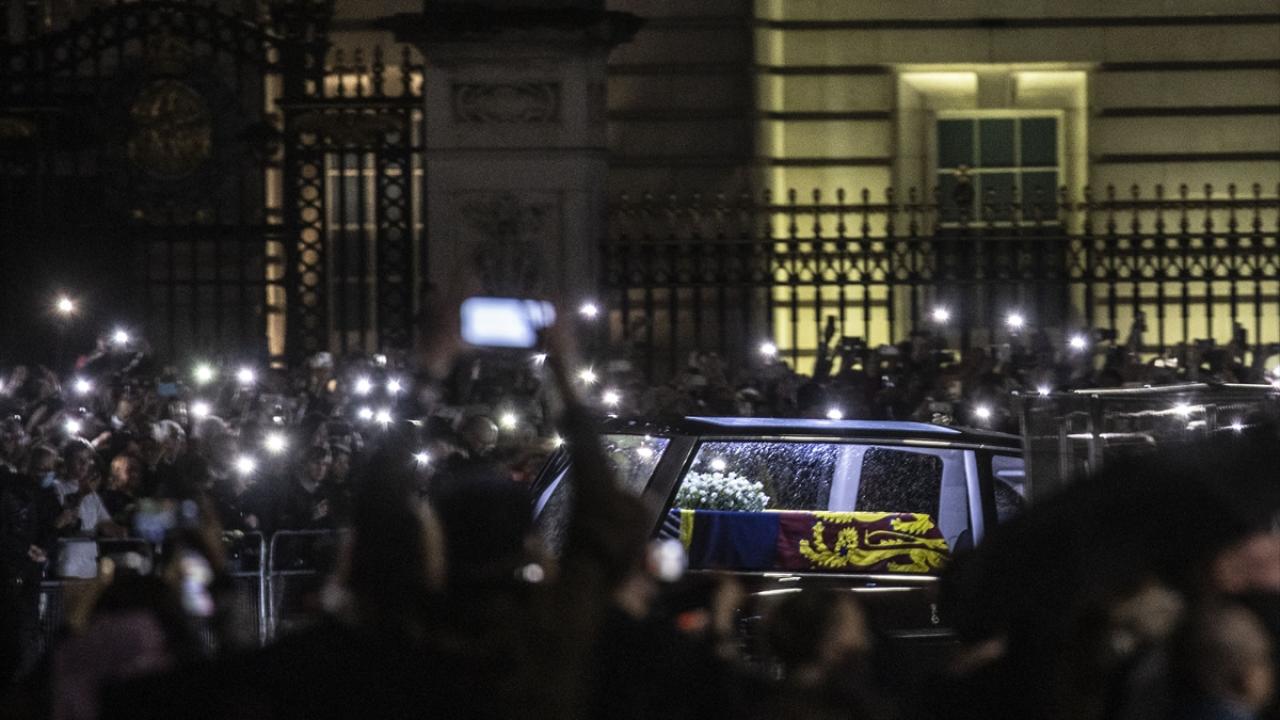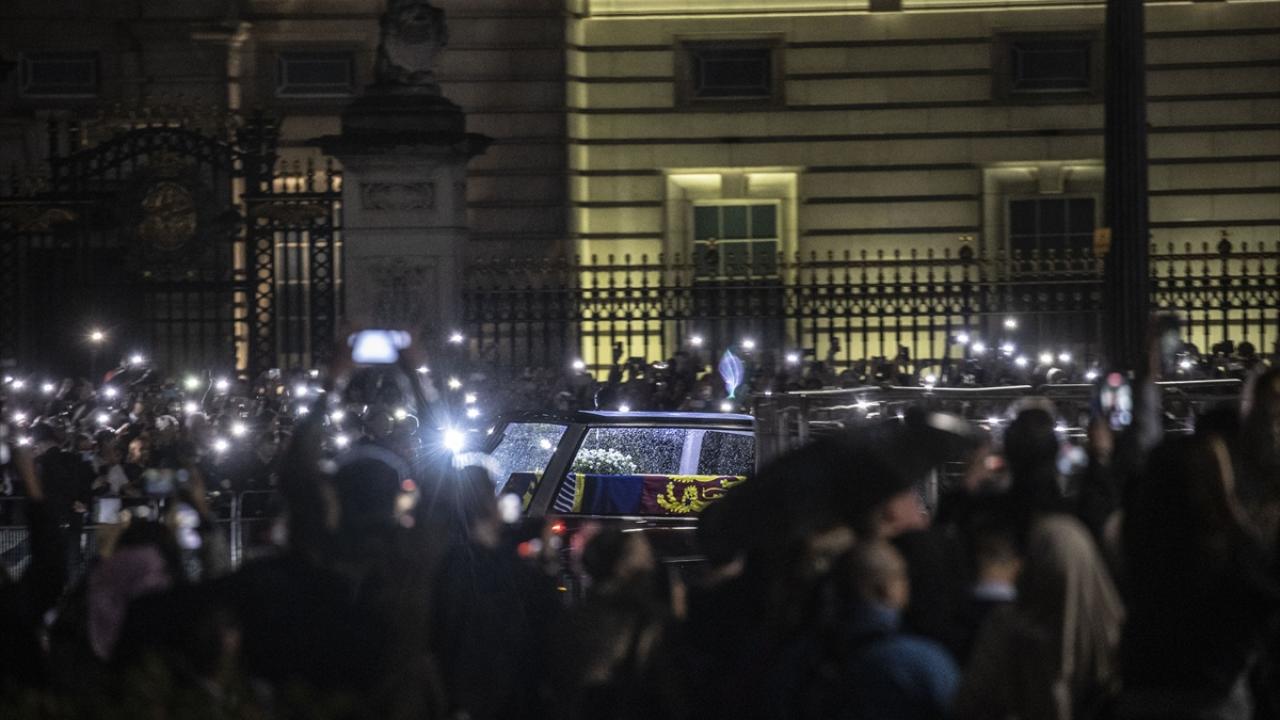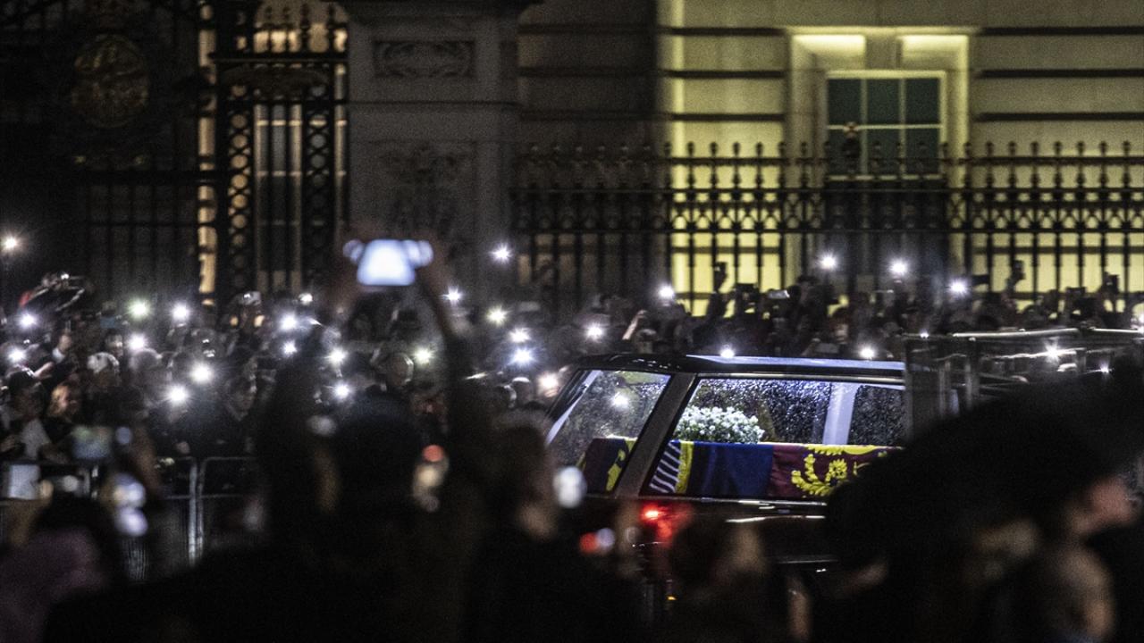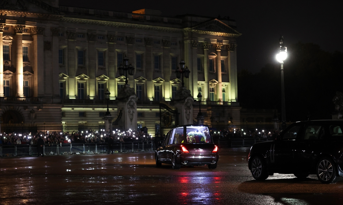 Havaalanından alınan Kraliçe`nin tabutu, daha sonra kortej eşliğinde Buckingham Sarayı`na götürüldü.