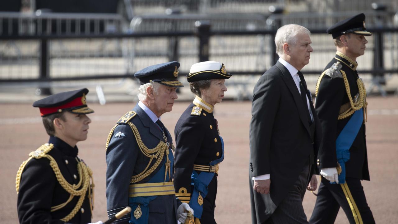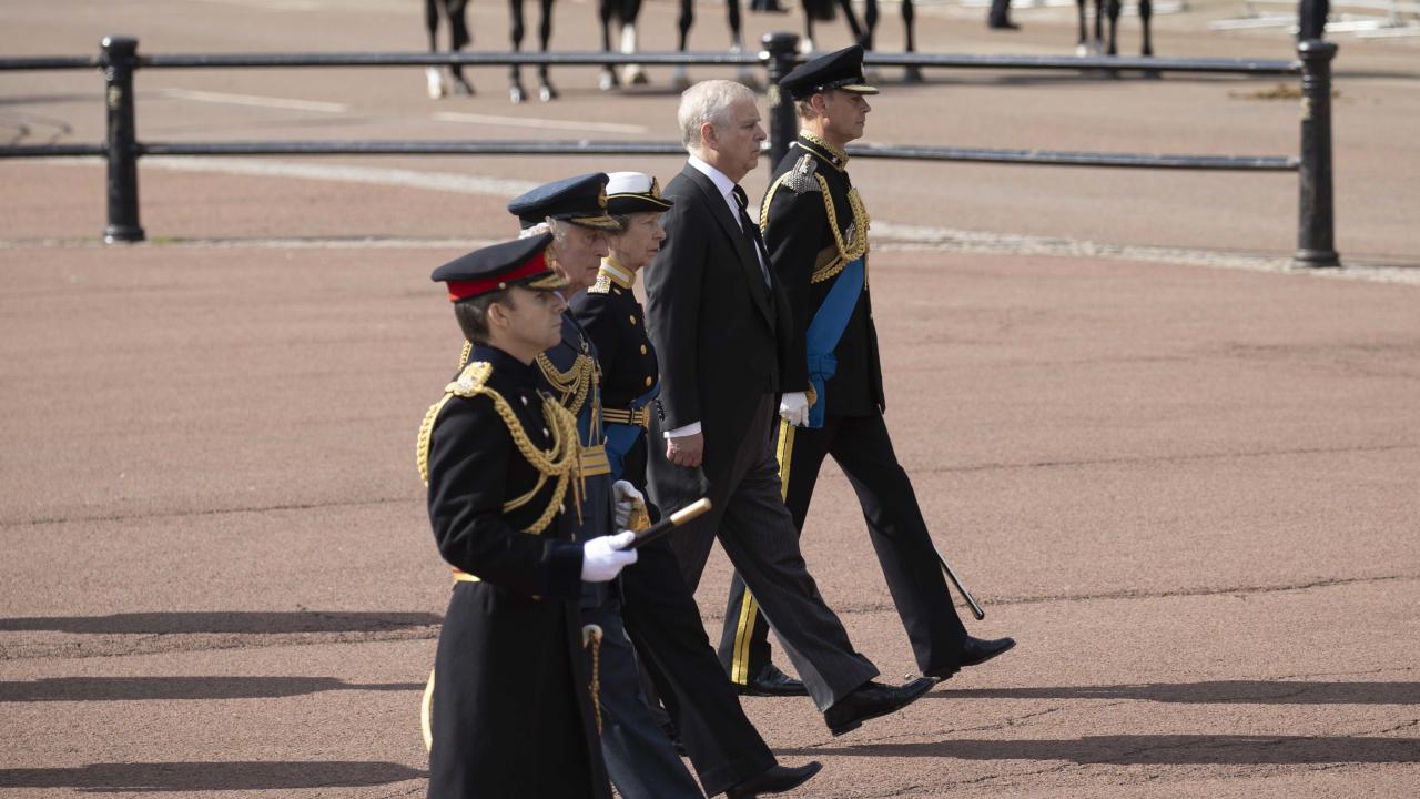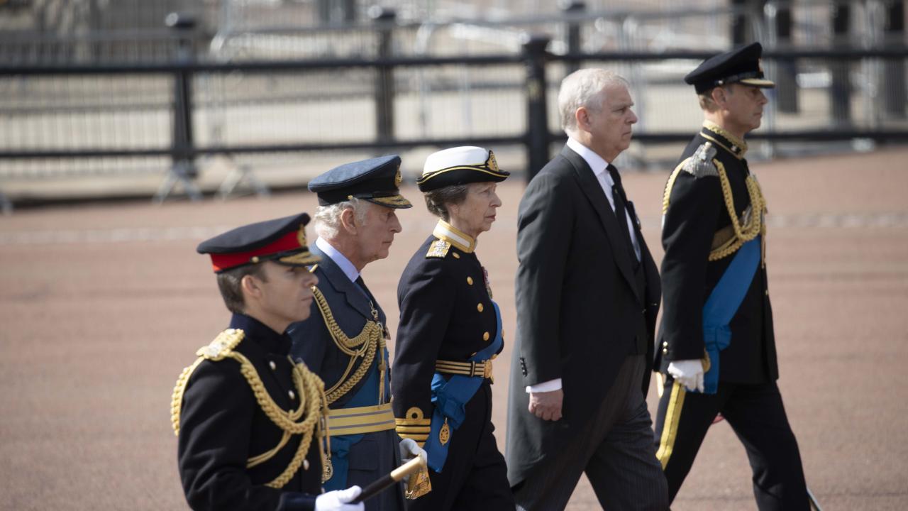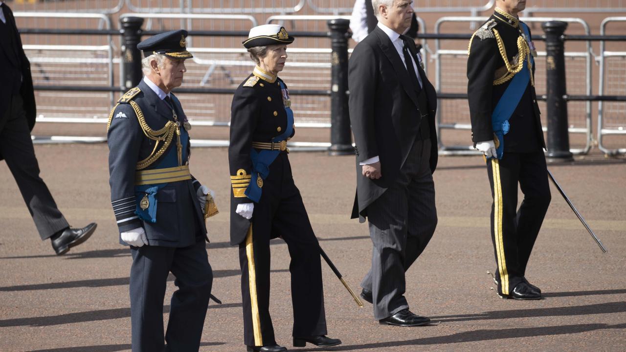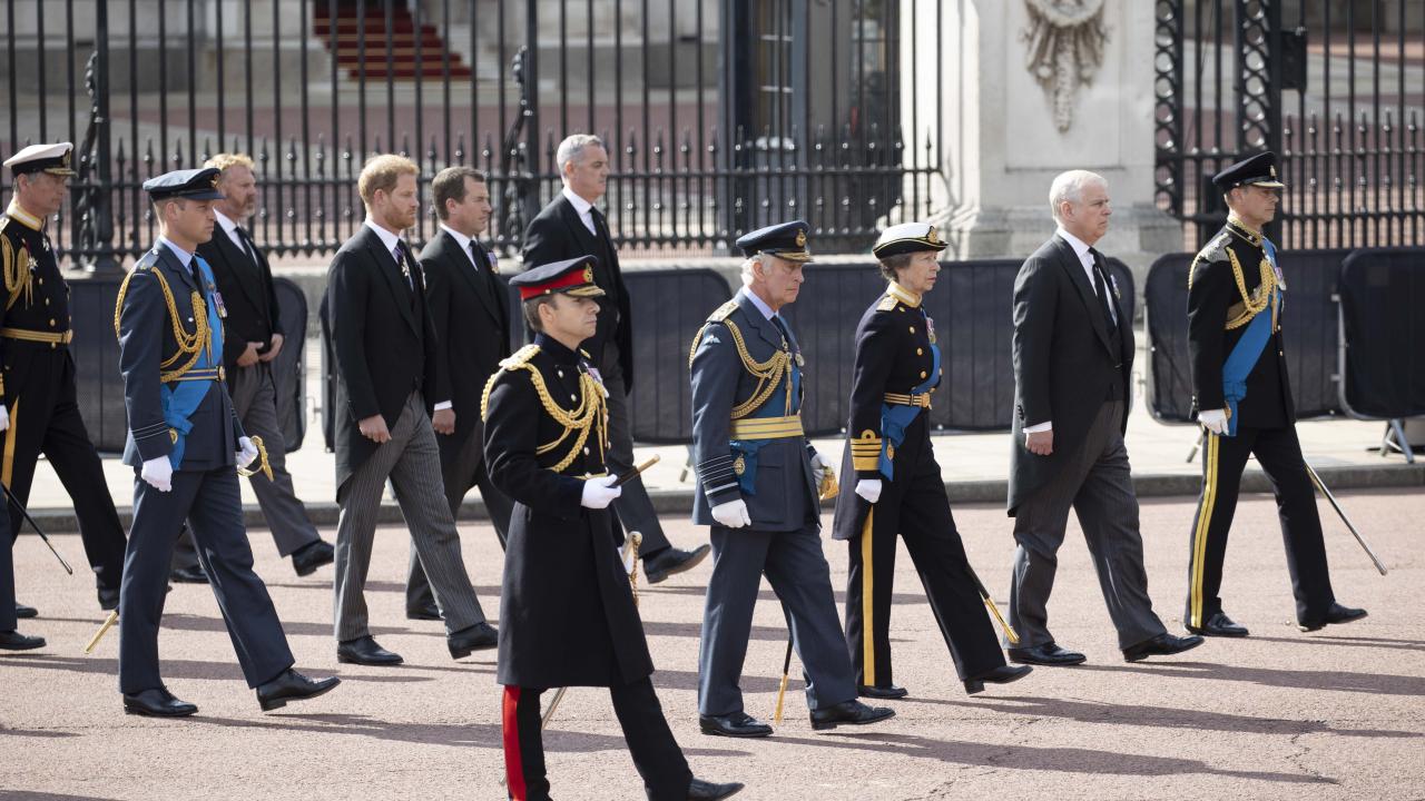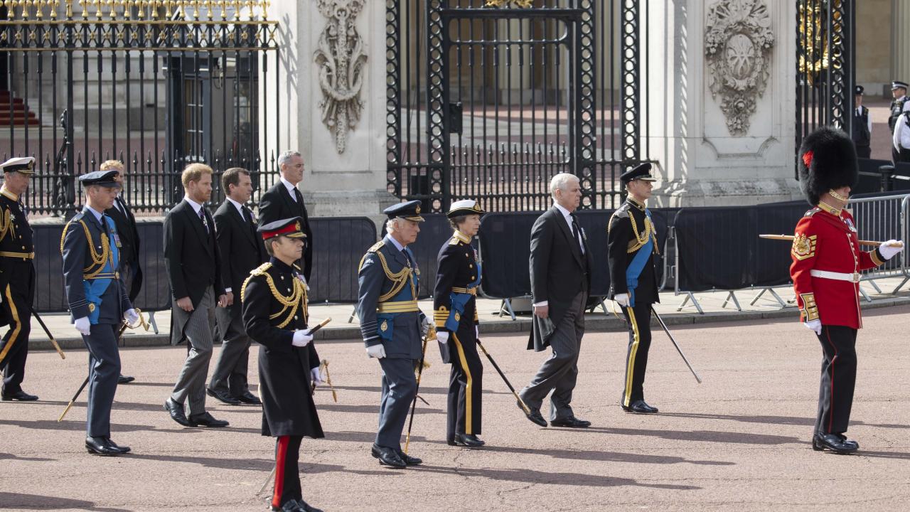 Törene, Kral 3. Charles, Kraliçe`nin diğer çocukları Prenses Anne, Prens Andrew, Prens Edward`ın yanı sıra Kral`ın iki oğlu Galler Prensi William ve İngiliz kraliyet ailesinden ayrılarak ABD`ye yerleşen Sussex Dükü Prens Harry de katılarak, tabutun arkasından yürüdü.