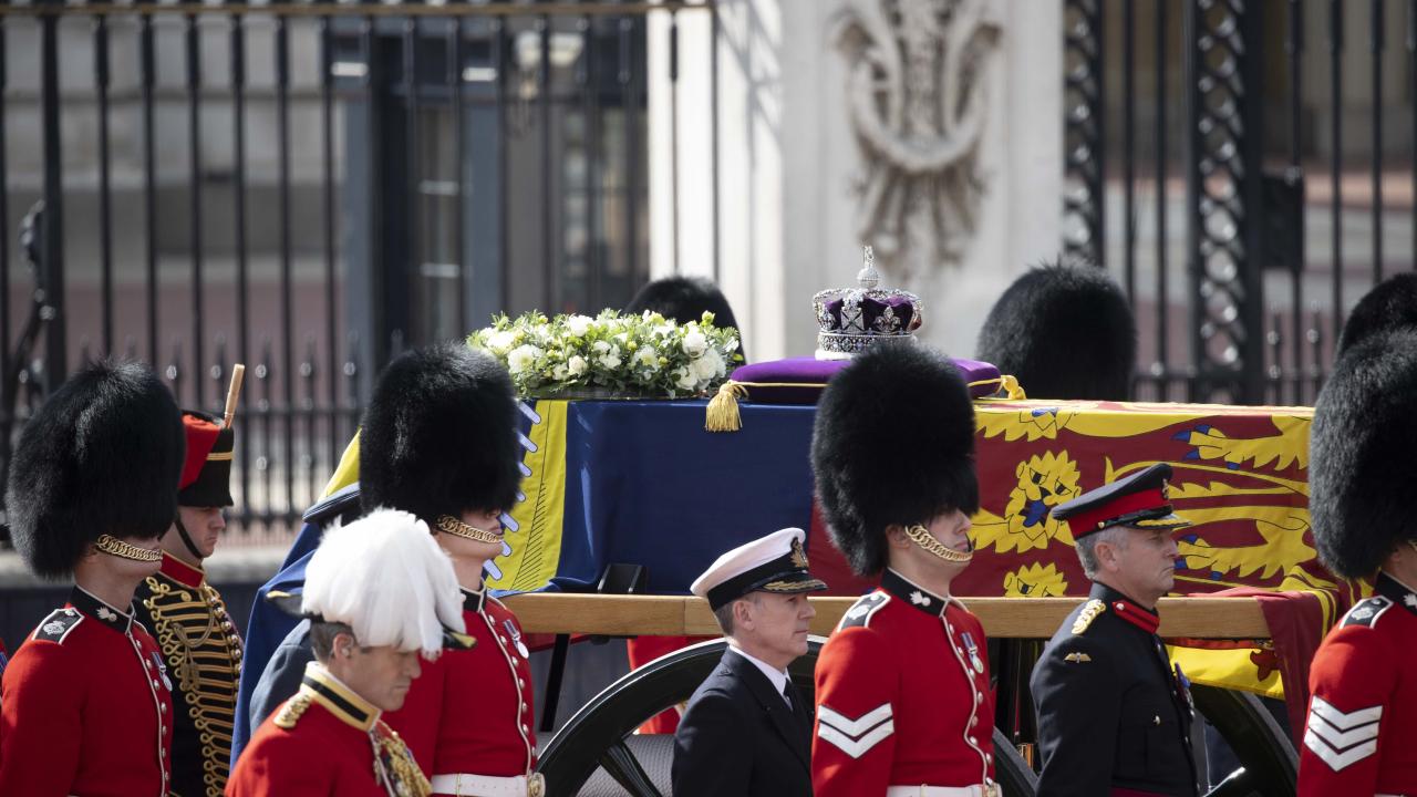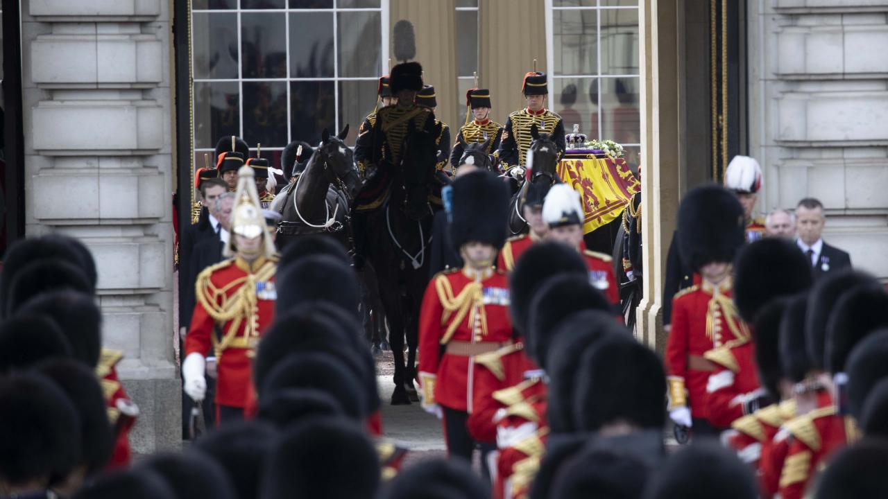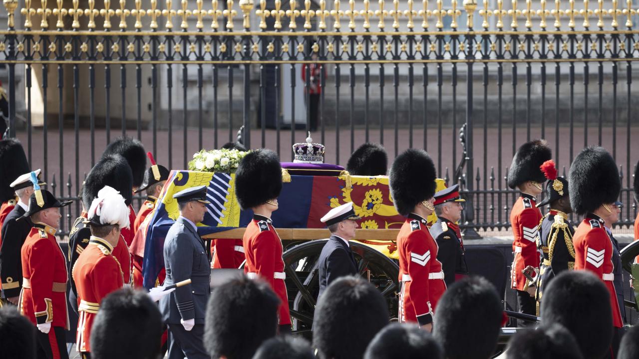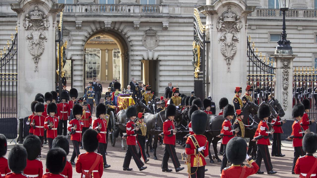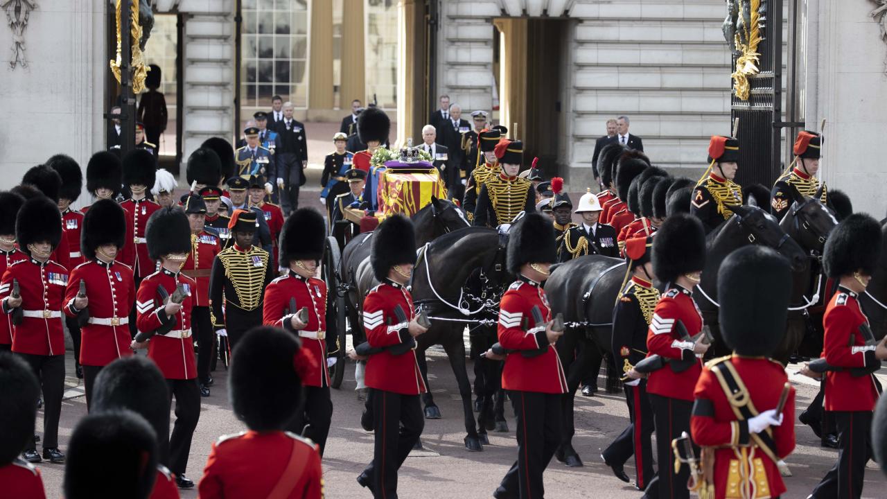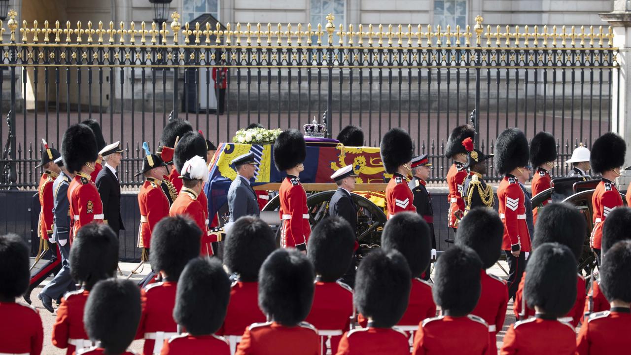 Havaalanından alınan Kraliçe`nin tabutu, daha sonra kortej eşliğinde Buckingham Sarayı`na götürülmüştü.