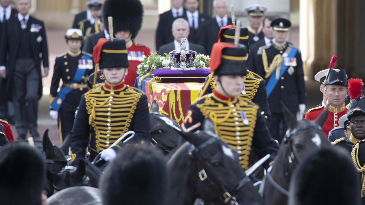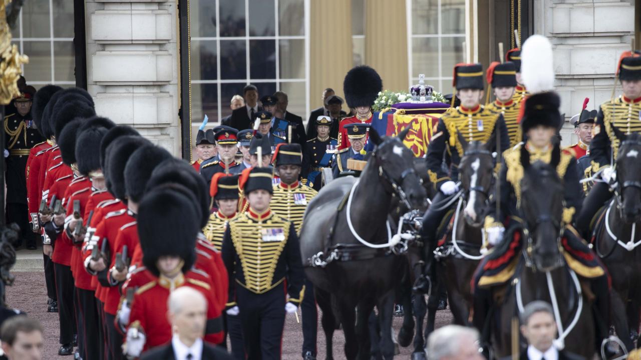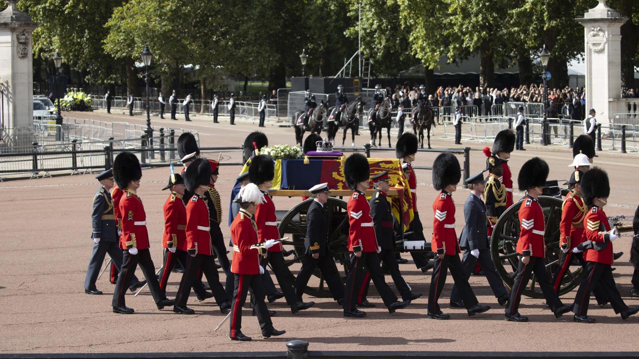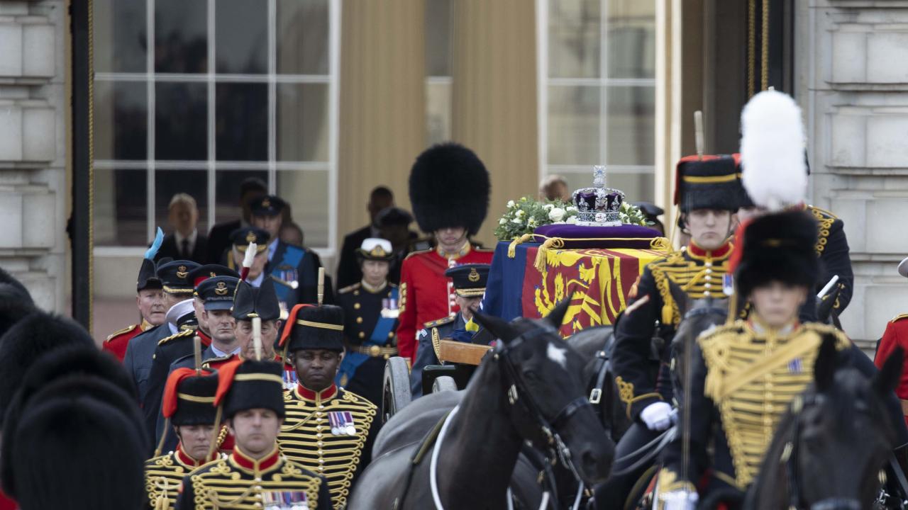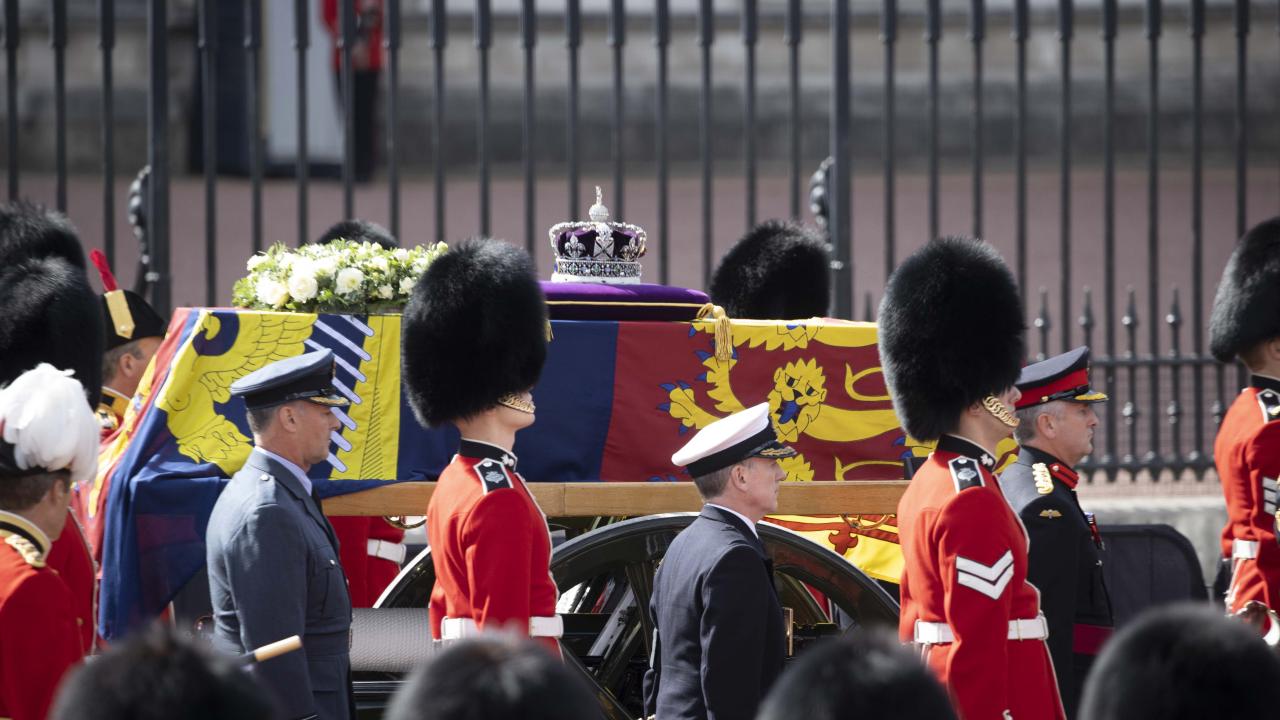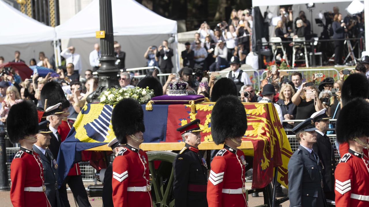Havaalanından alınan Kraliçe`nin tabutu, daha sonra kortej eşliğinde Buckingham Sarayı`na götürülmüştü.