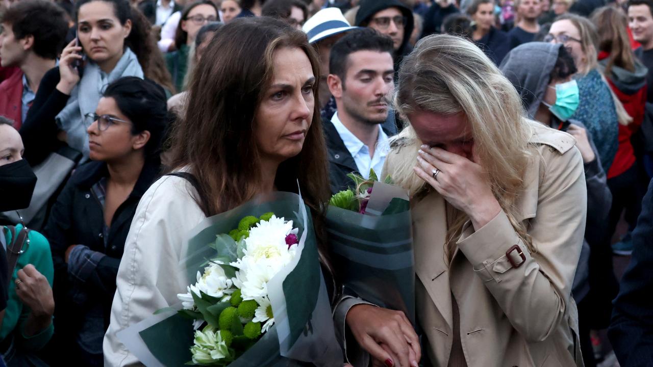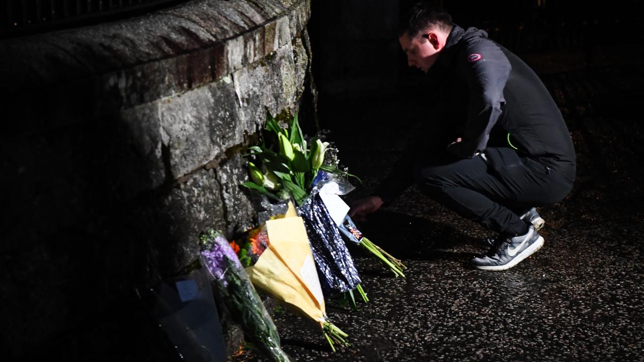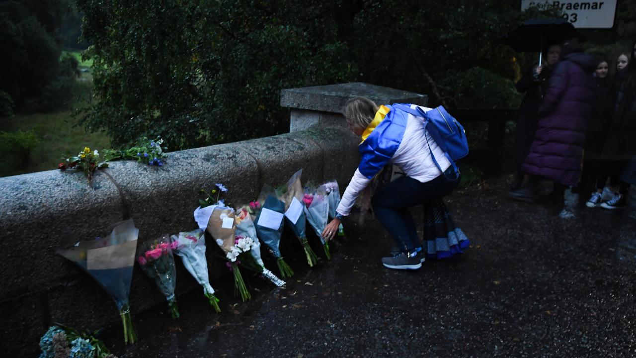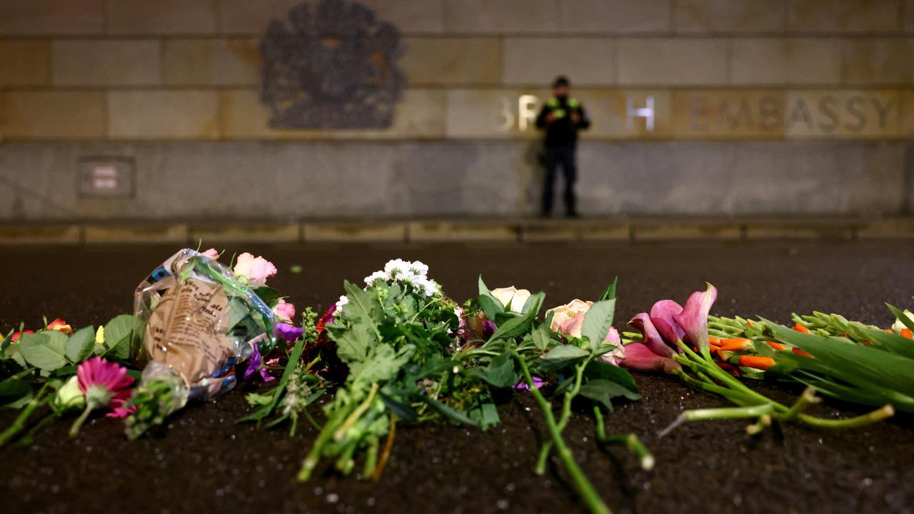 Kraliyet Sarayı önünde toplanan İngilizler çiçek bırakıyor.