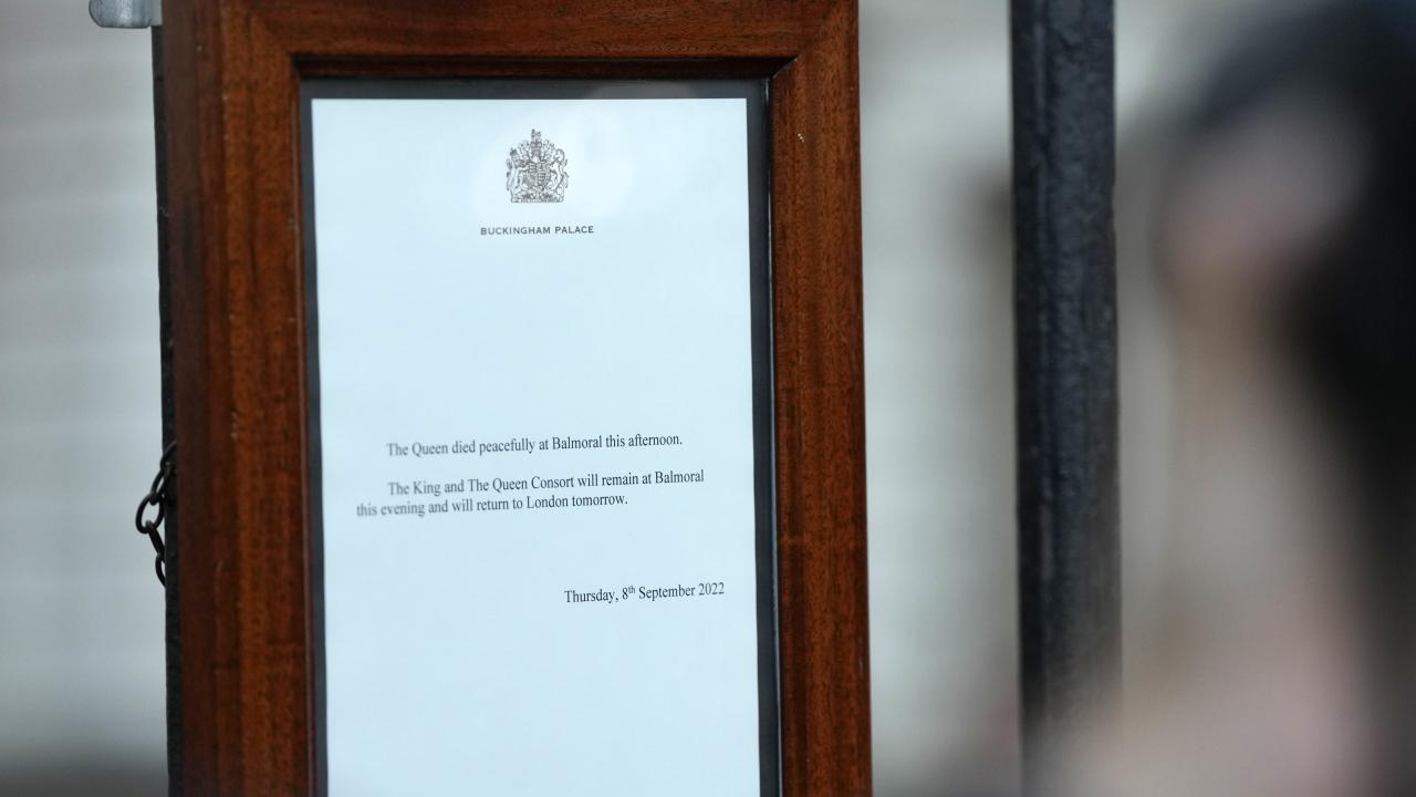 Kraliçe Elizabeth`in ölümünün ardından Buckingham Sarayı`nın kapısına ölüm ilanı asıldı.