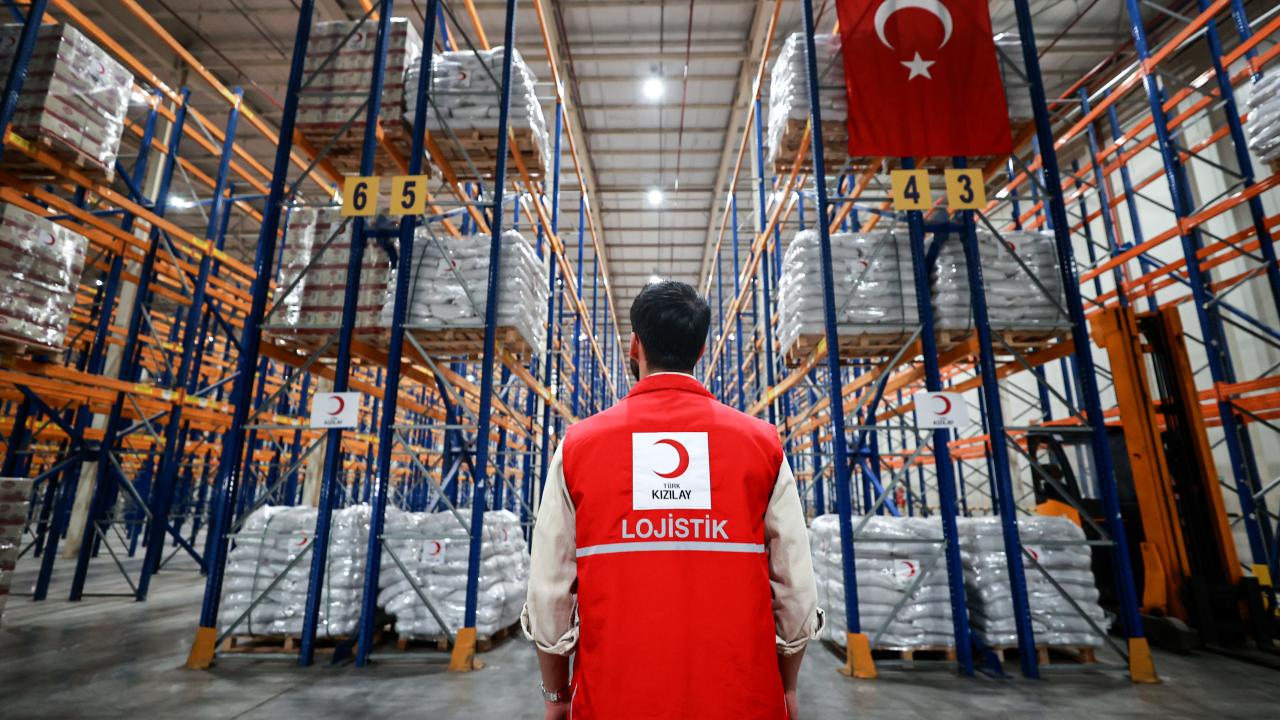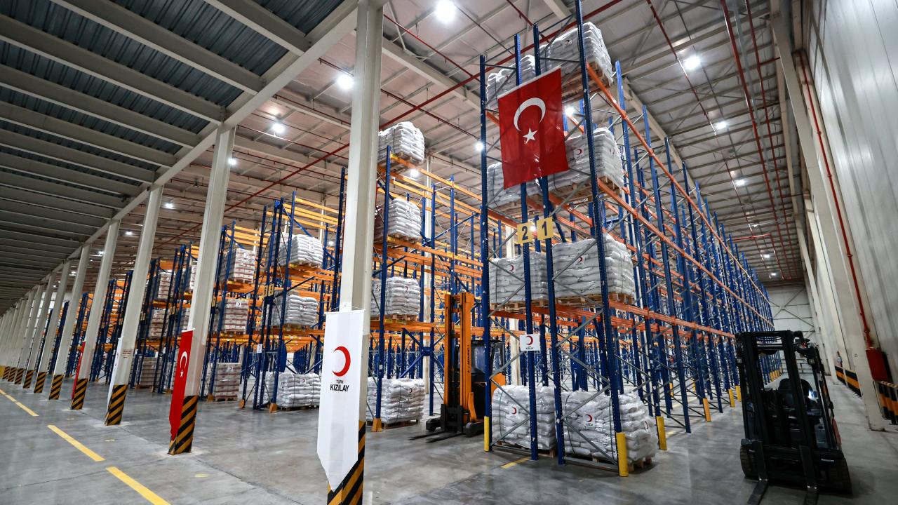 Mersin'de insani kriz bölgelerine hızlı şekilde yardım sevk edilmesi amacıyla Türk Kızılay öncülüğünde kurulan 'Stratejik Stok Merkezi' açıldı.