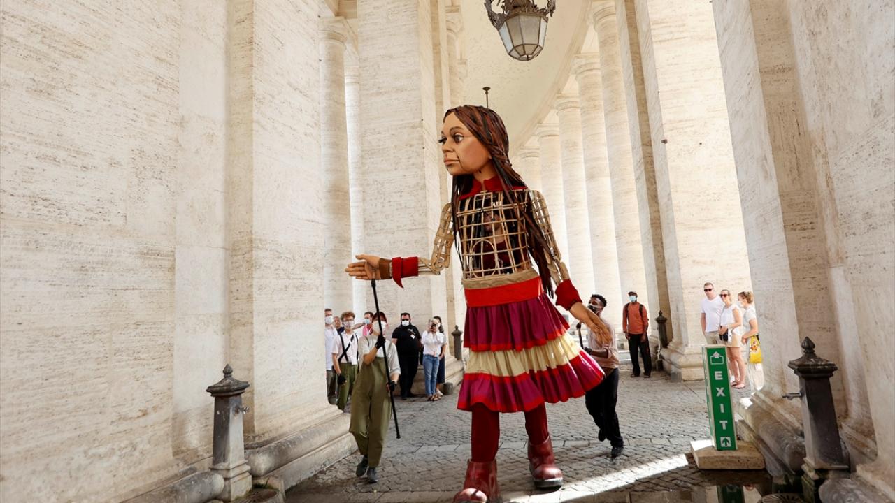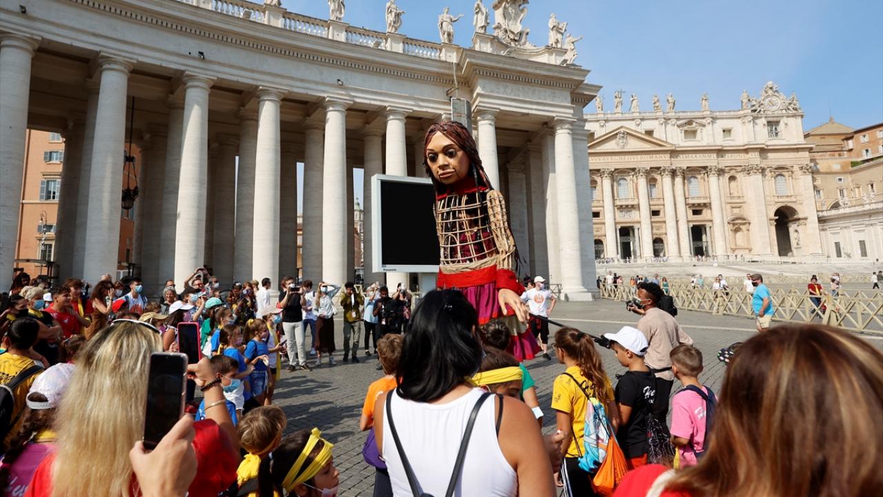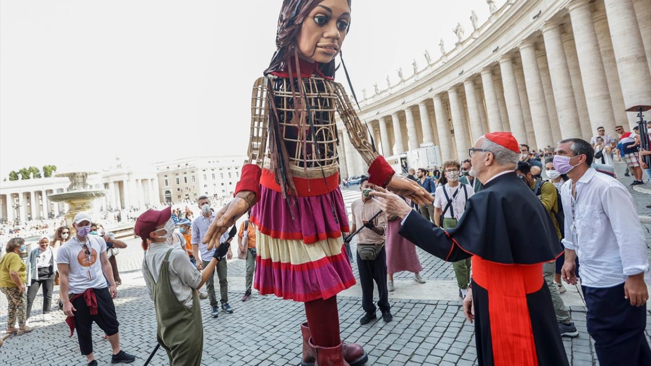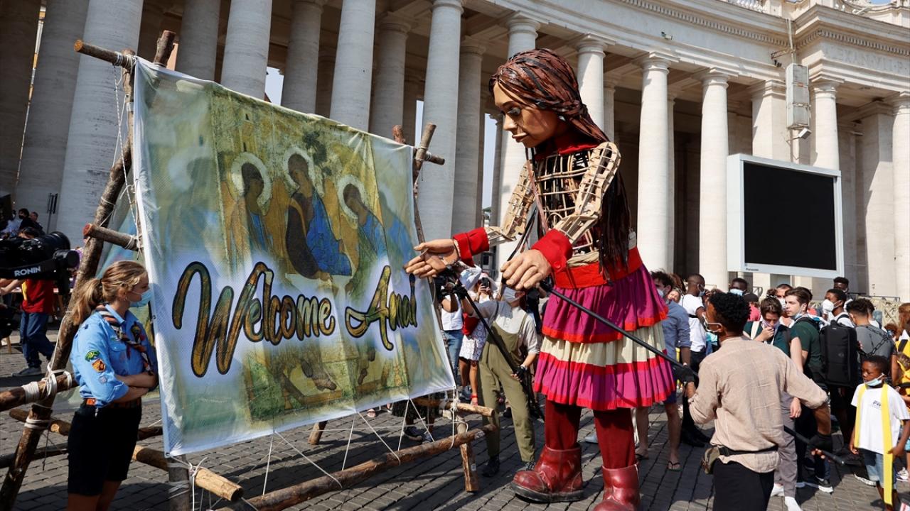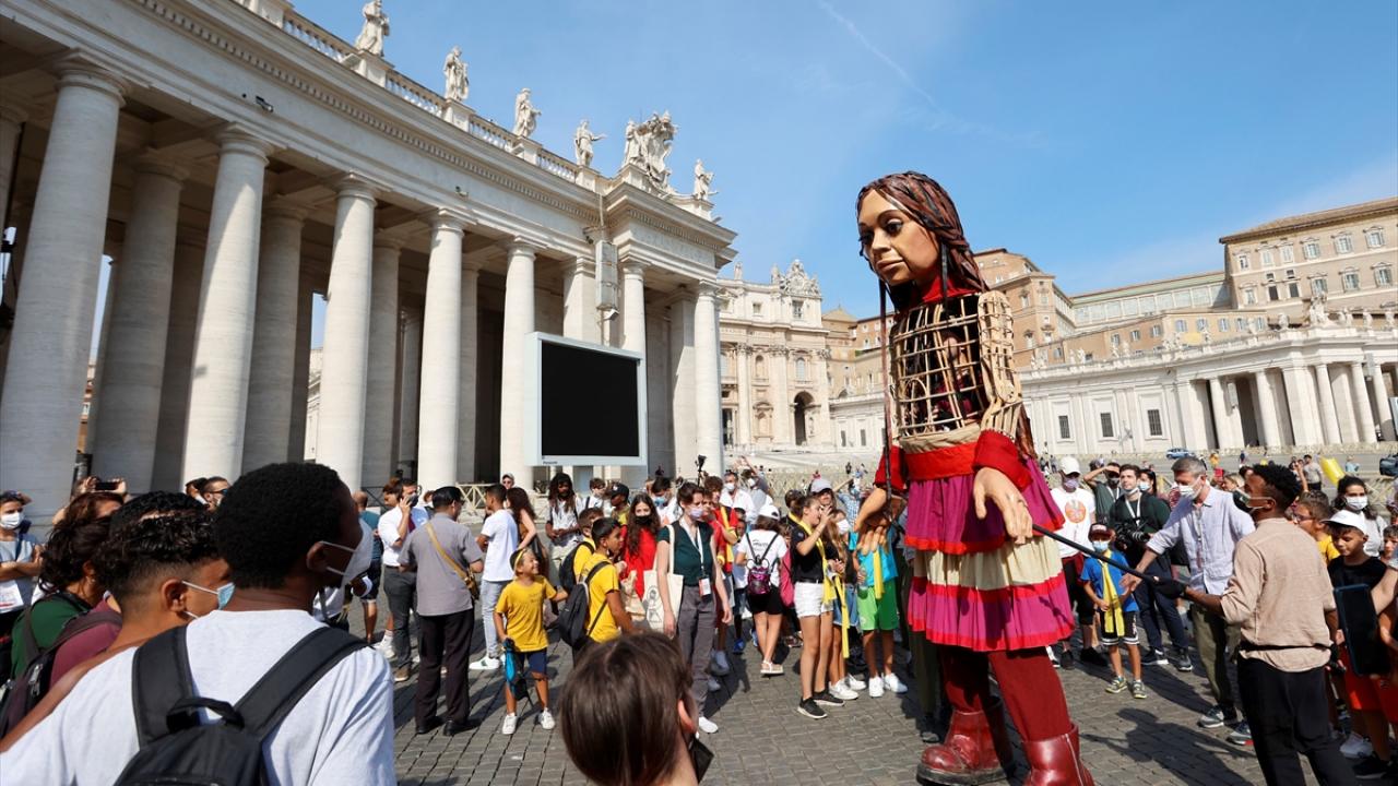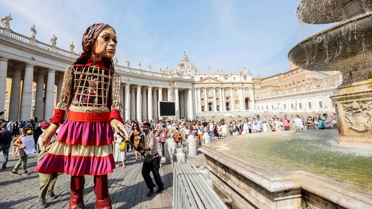 Suriyeli mülteci çocukların yaşadığı zorlukların dünya gündemine taşınması amacıyla tasarlanan 3,5 metre uzunluğundaki kukla "Küçük Amal", Vatikan'a ulaştı.