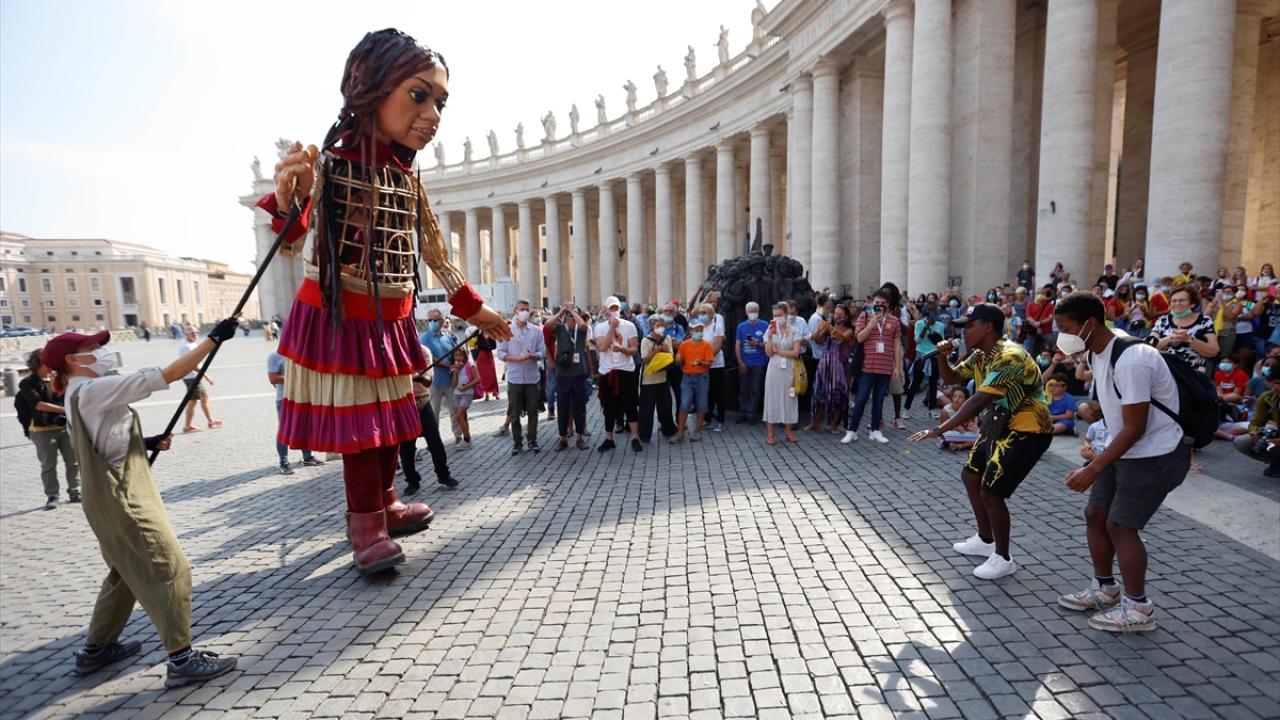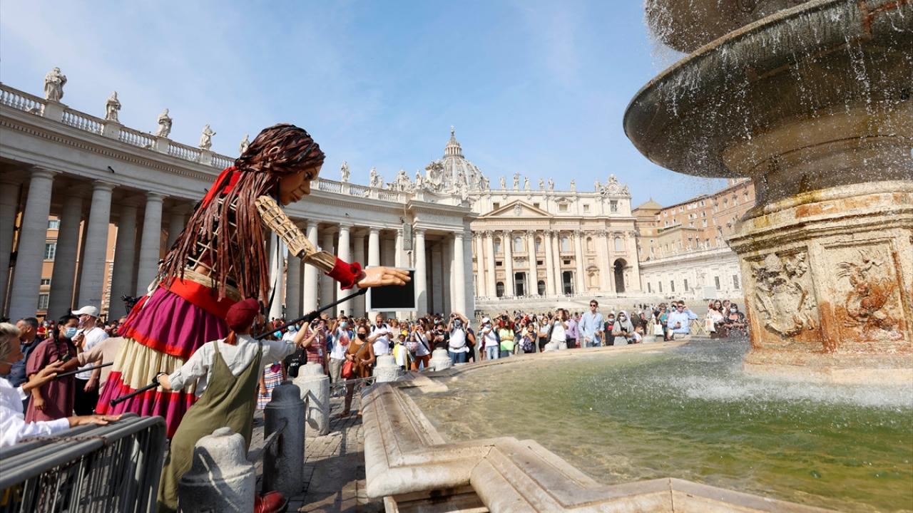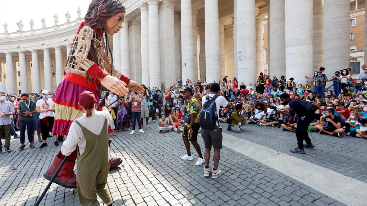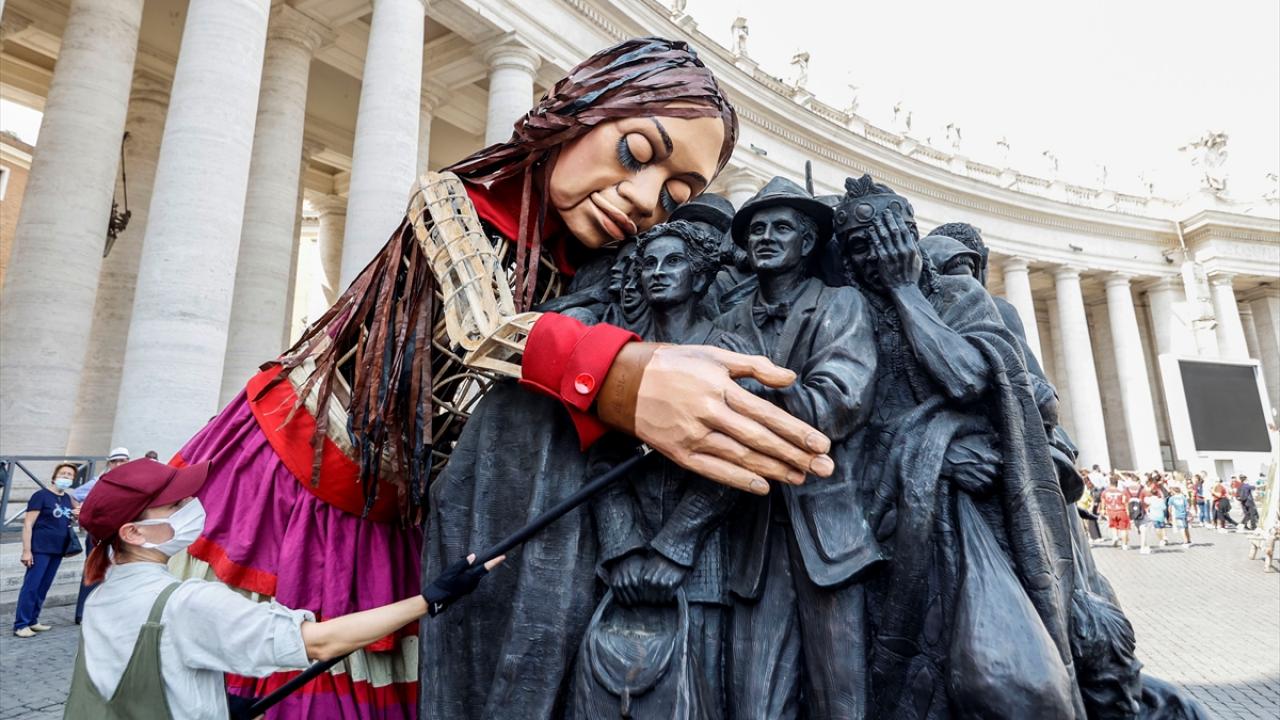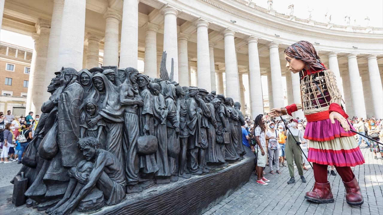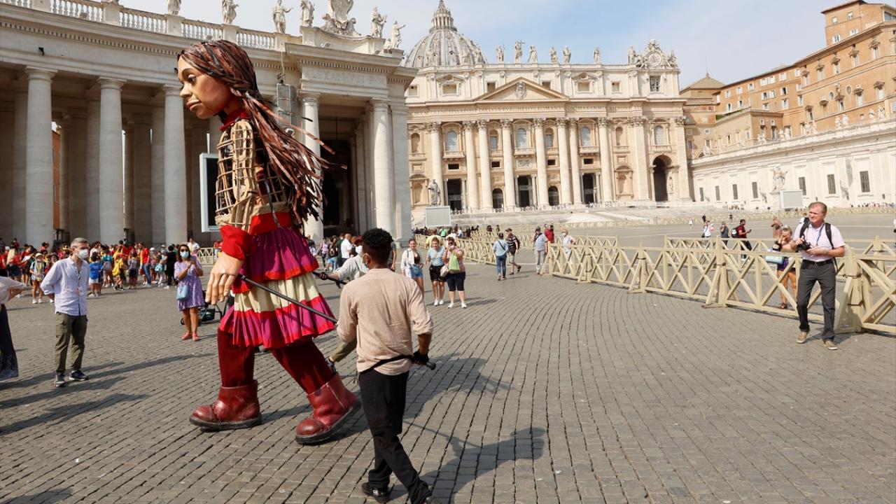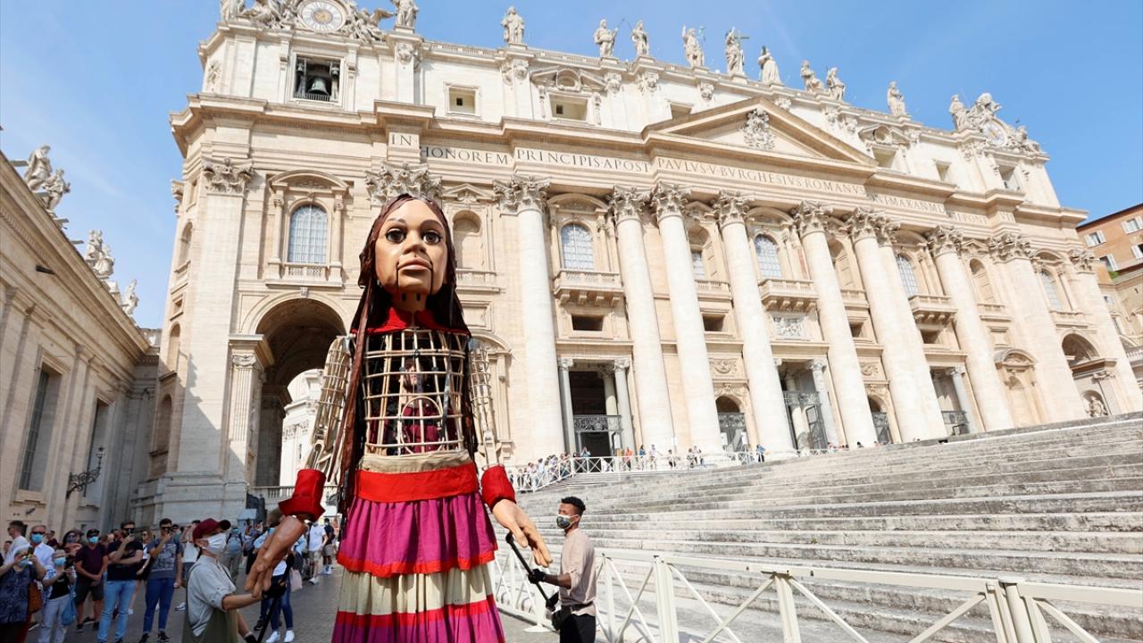 Suriyeli mülteci çocukların yaşadığı zorlukların dünya gündemine taşınması amacıyla tasarlanan 3,5 metre uzunluğundaki kukla "Küçük Amal", Vatikan'a ulaştı.