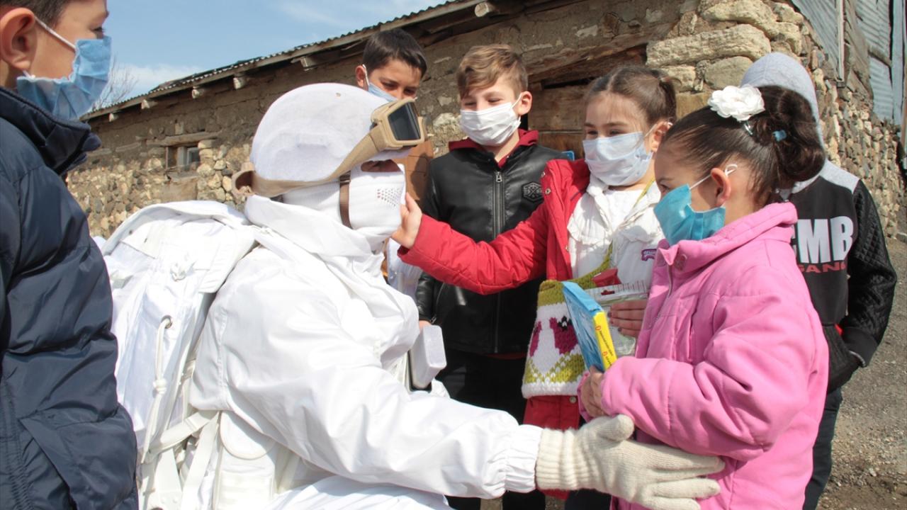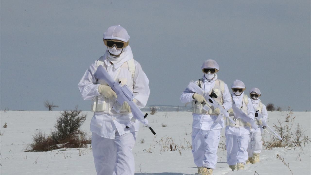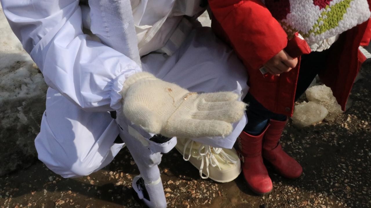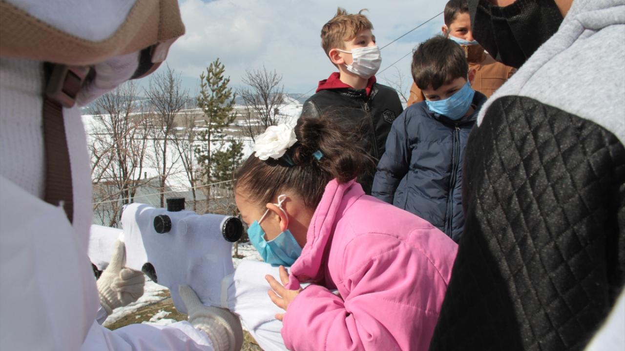 Askerlerin kumanyalarını paylaştığı çocuklar ise Mehmetçiğin teçhizatını ve giydikleri beyaz kamuflaj elbiselerini inceledi.
