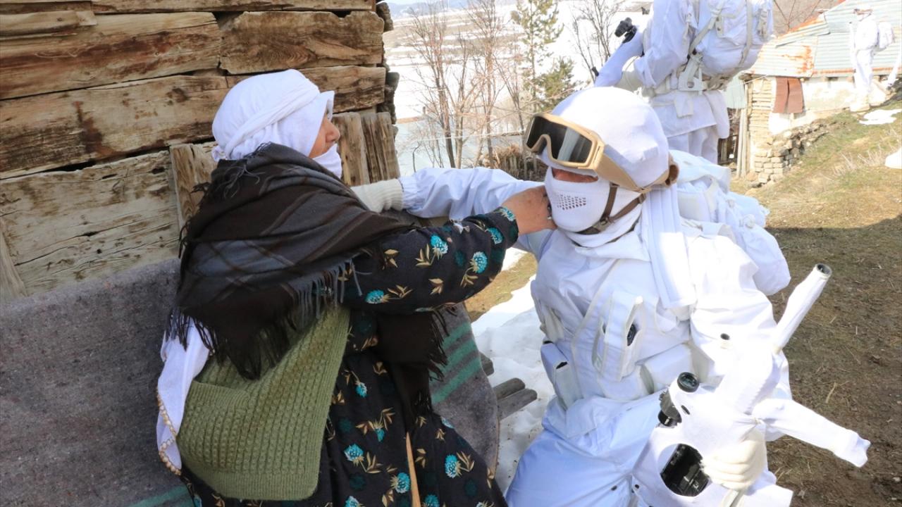 Refahiye ilçesine bağlı Kalkancı köyünden geçerek operasyona çıkan komandoları karşılayan yaşlılar, Mehmetçiğe şefkat elini uzatarak dua etti.