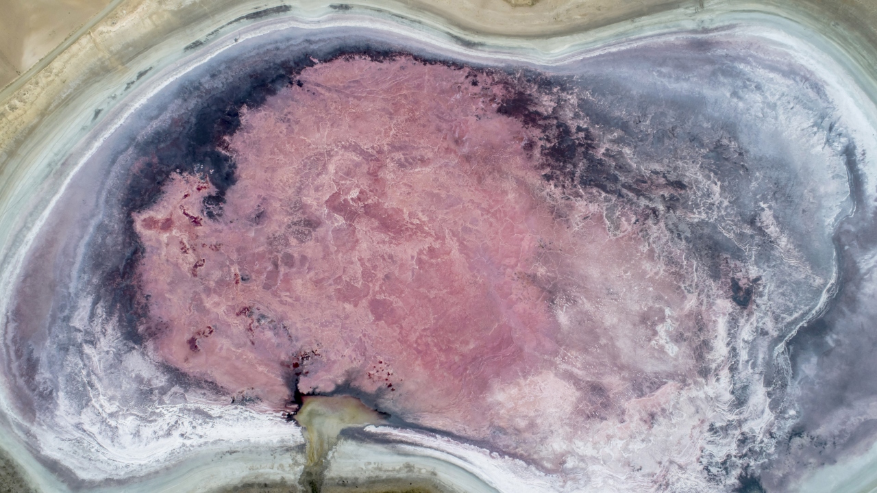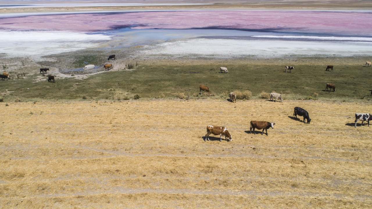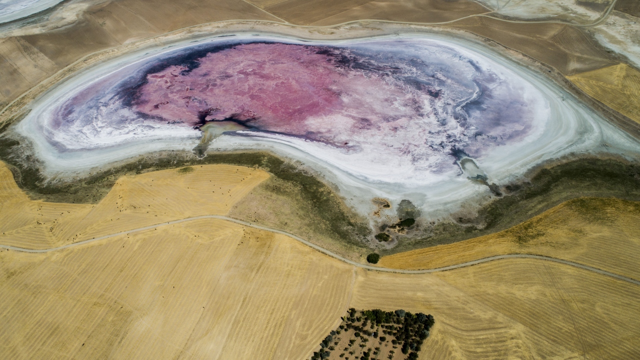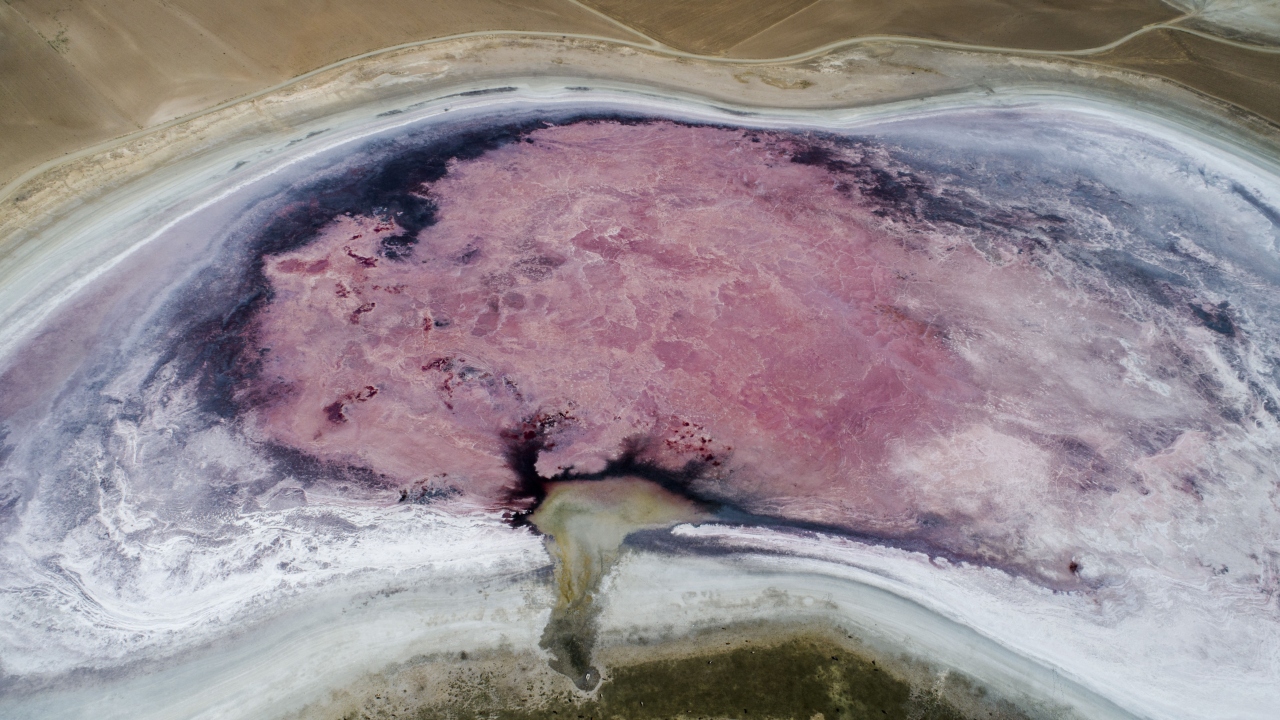 Tatlı su gölü olan Küçük Göl, suların azalmasına bağlı olarak artemia salina bakterisi nedeniyle pembeye büründü.