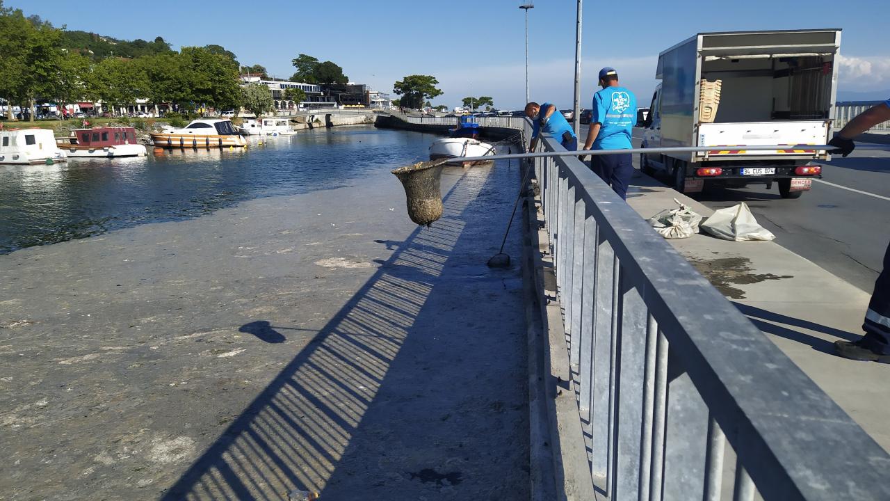 Küçükçekmece’de bir yanda deniz keyfi, bir yanda müsilaj temizliği