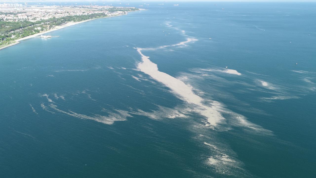 Görüntülerde hat şeklinde uzanarak adeta bir ada görünümü oluşturan müsilaj tabakası dikkat çekti.