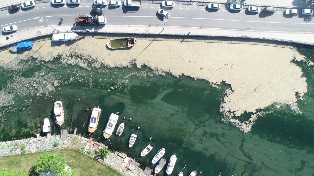 Son olarak Küçükçekmece açıklarını kaplayan müsilaj havadan görüntülendi.