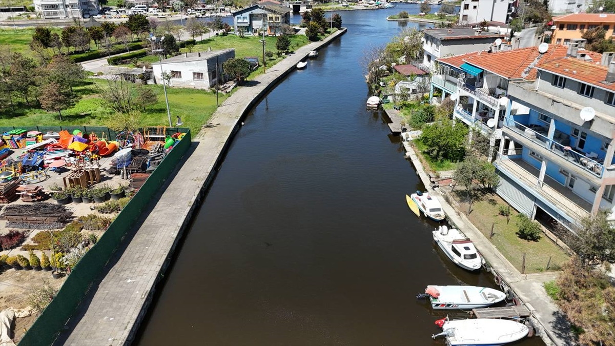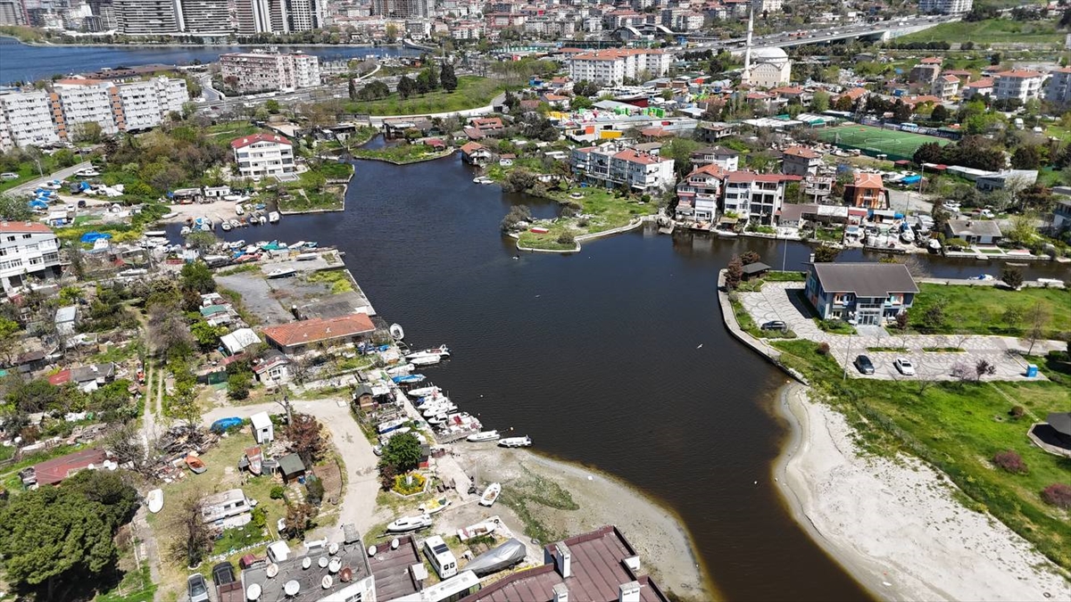 Küçükçekmece Gölü ile Marmara Denizi`ni birbirine bağlayan dere, rengi değişerek bulanık olarak akmaya başladı.