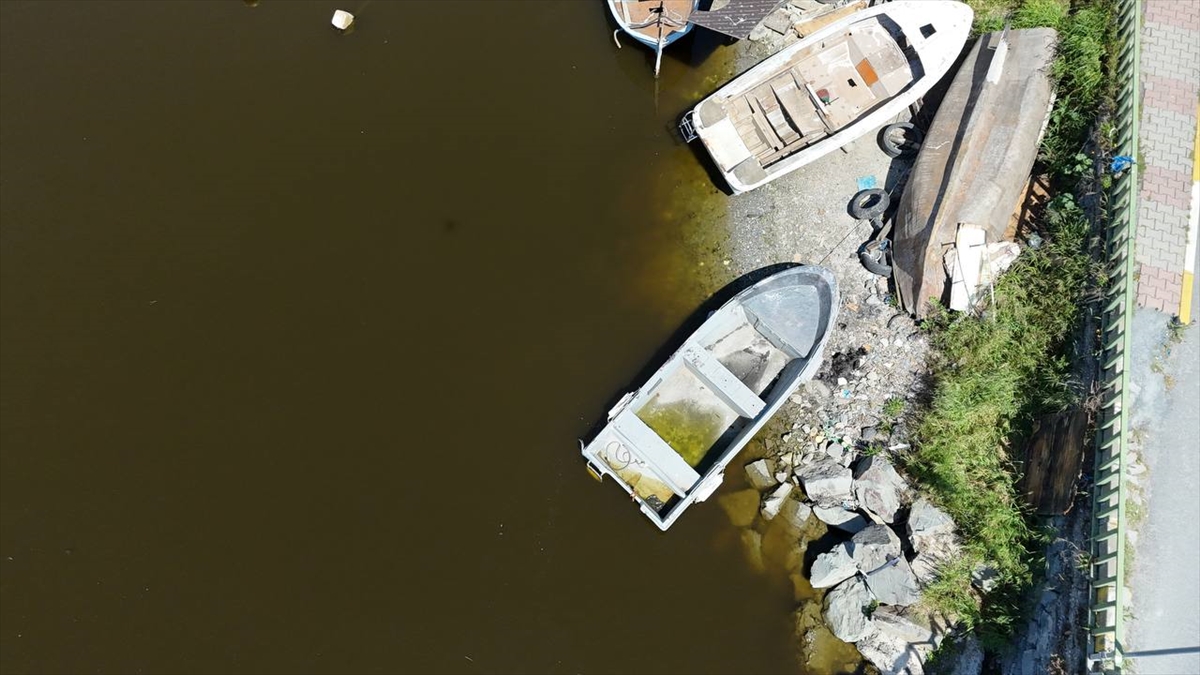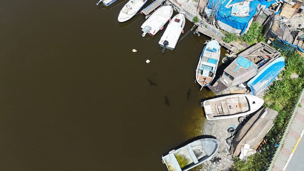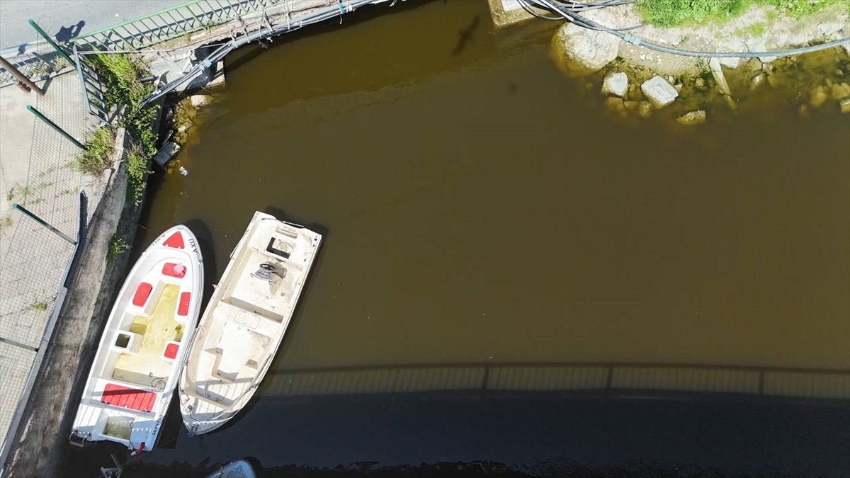Balıkçı teknelerine ait barınağın da yer aldığı derenin suyu kahverengiye döndü.