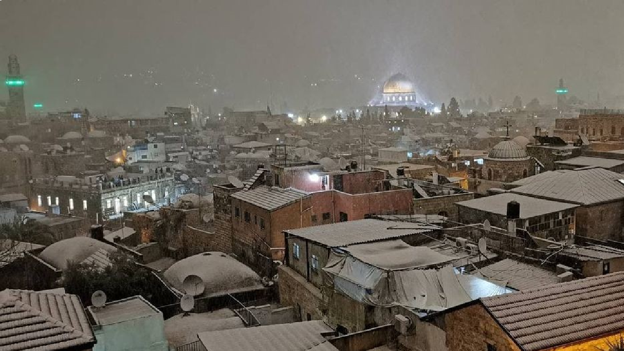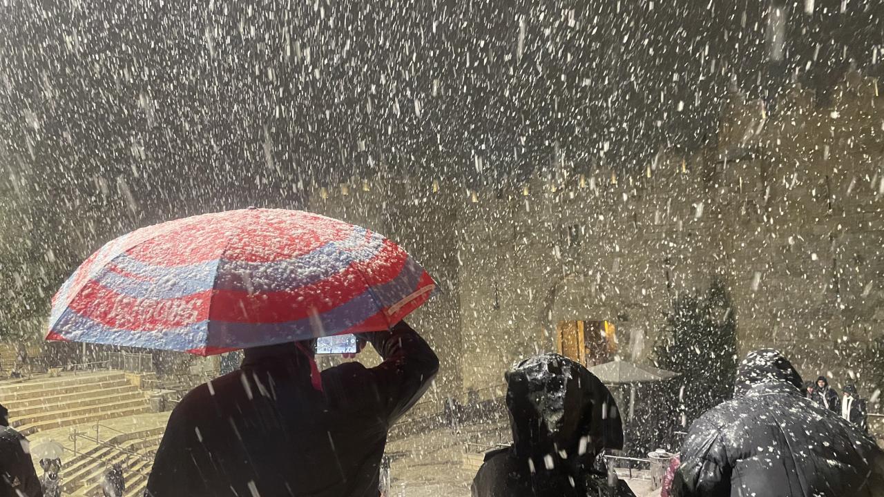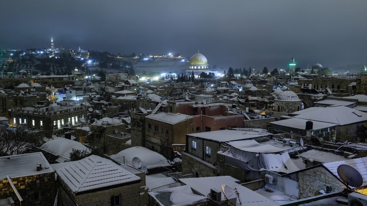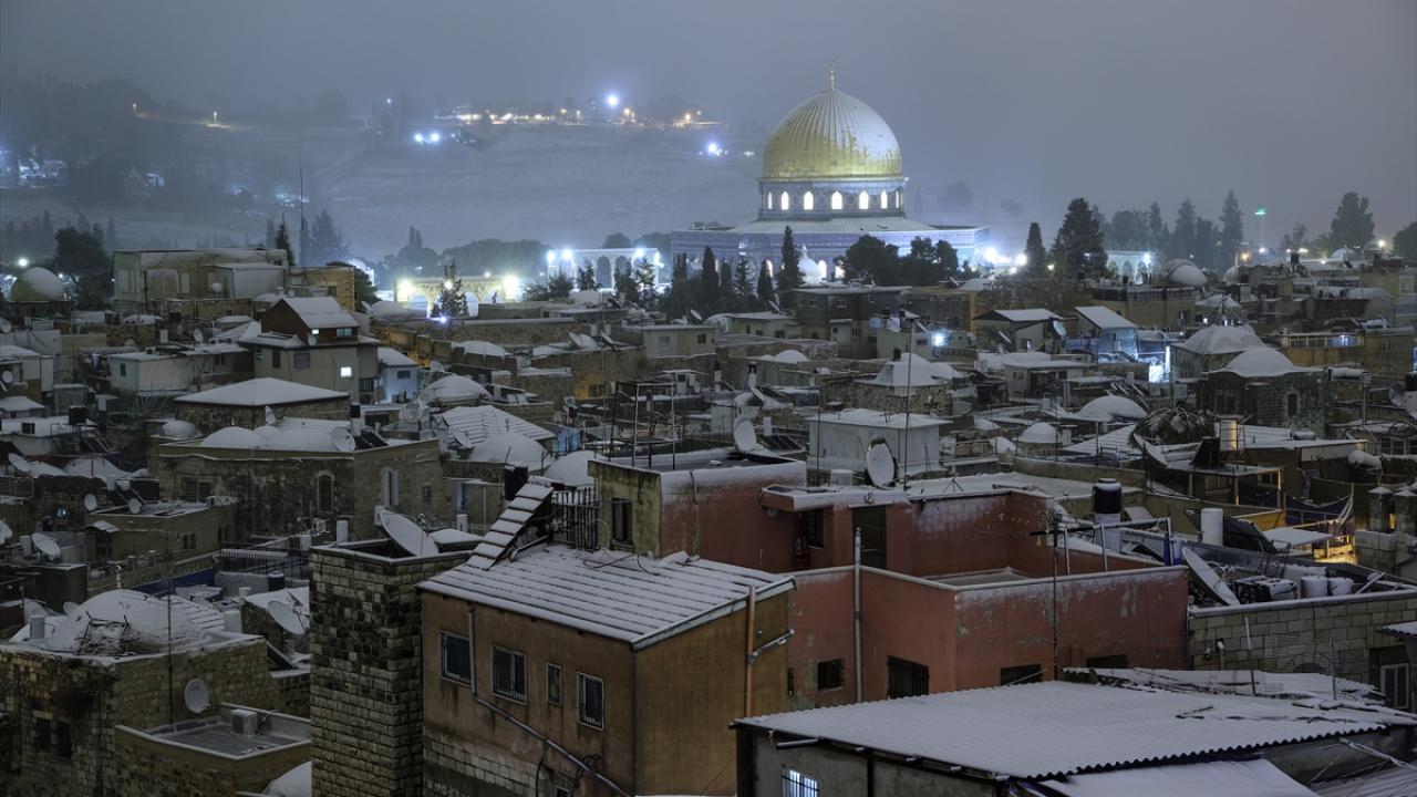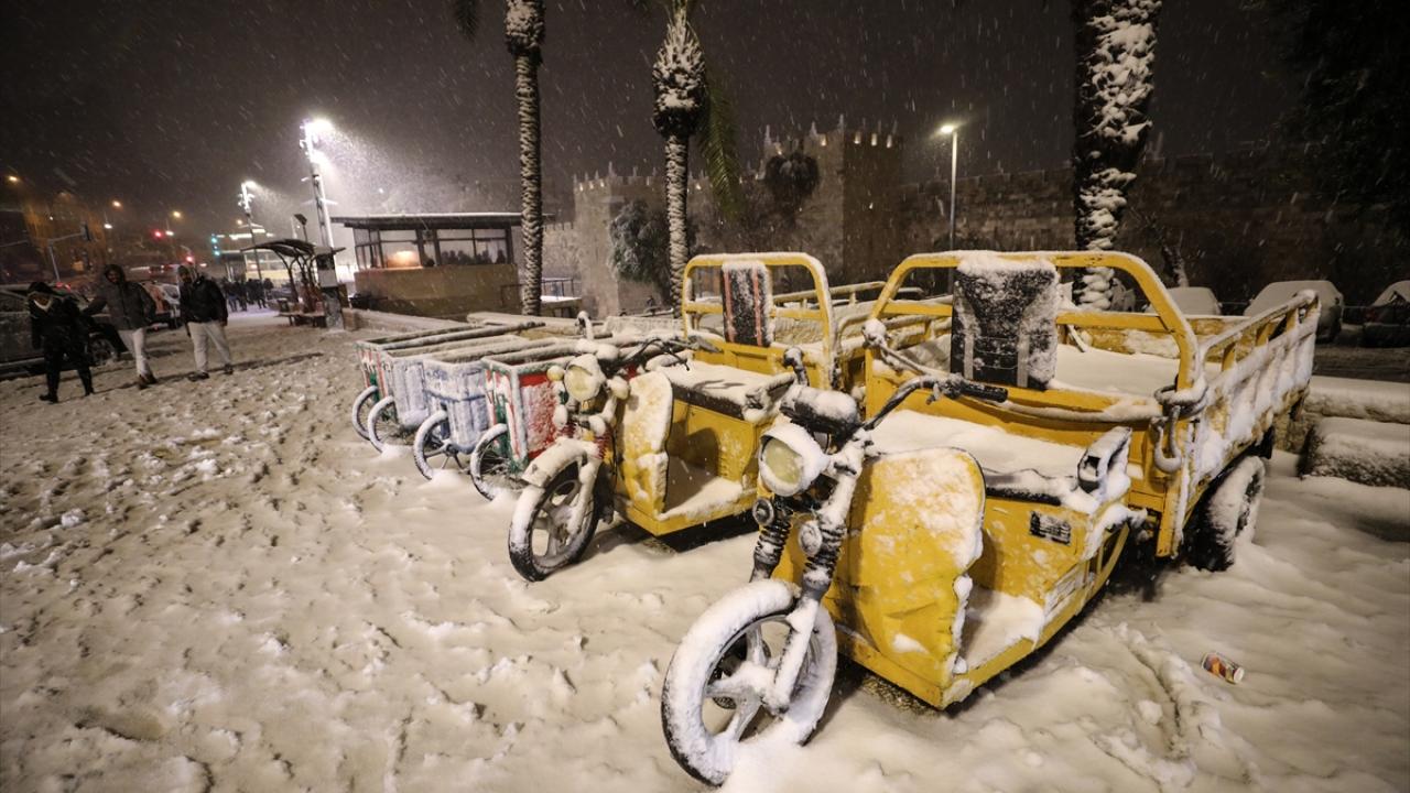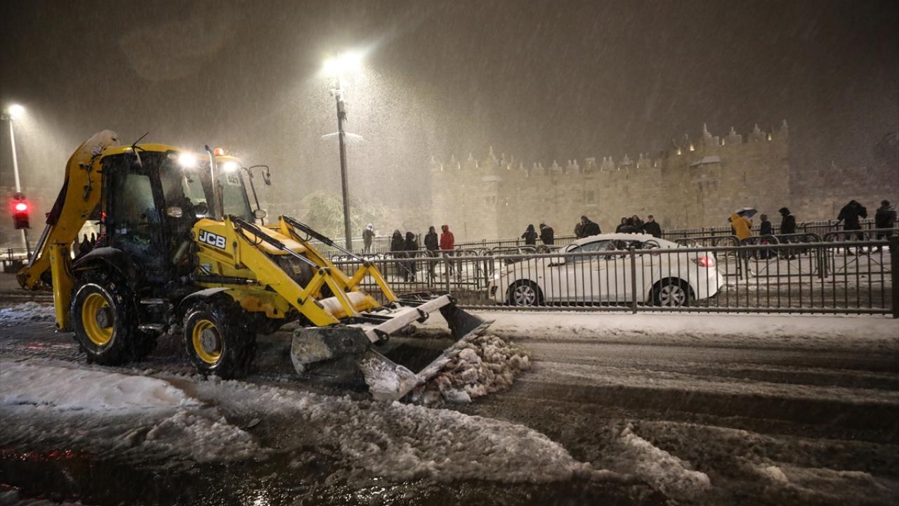 Başta çocuklar olmak üzere karın yağmasını fırsat bilen her yaştan Kudüslü, Doğu Kudüs`teki Eski Şehir`in Şam Kapısı çevresinde toplanarak kartopu savaşı yaptı.