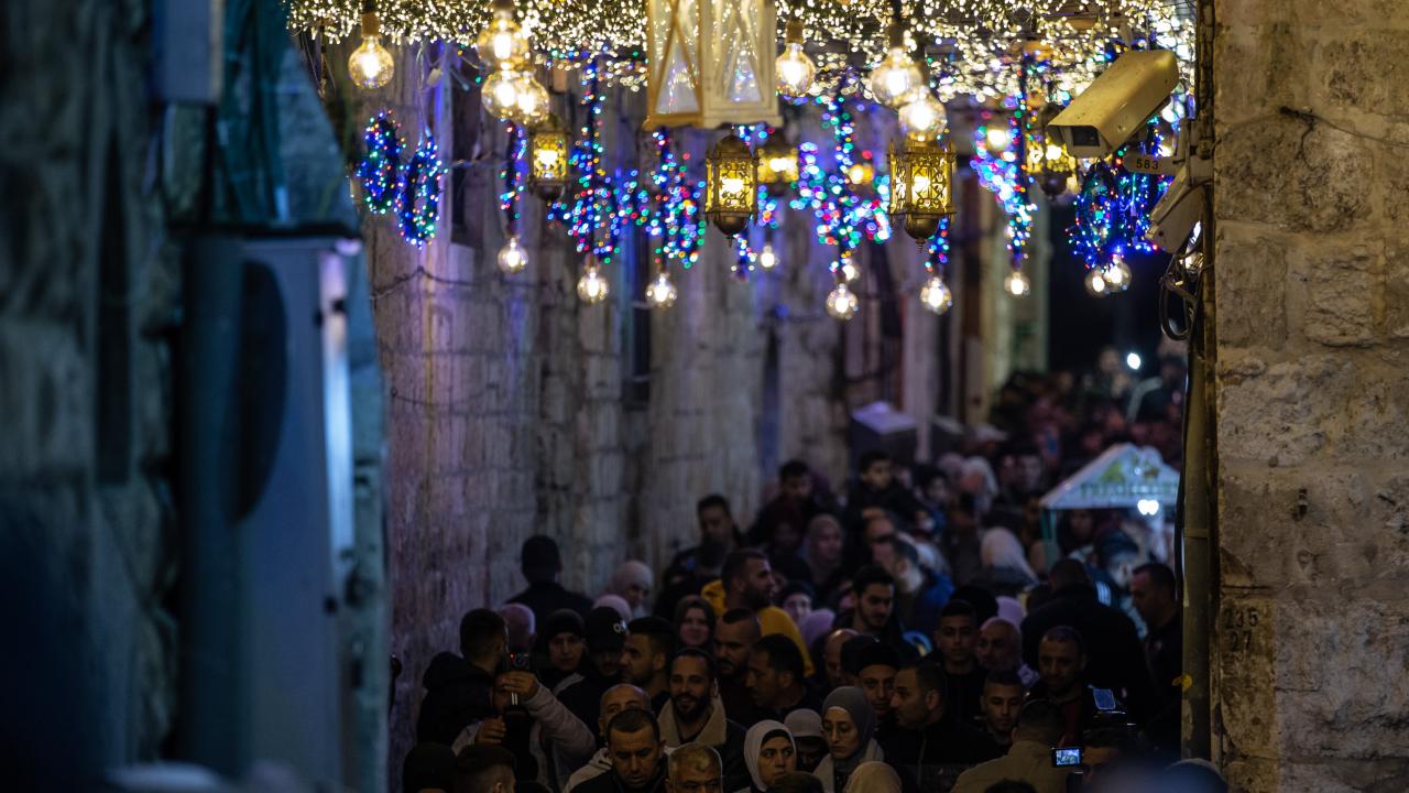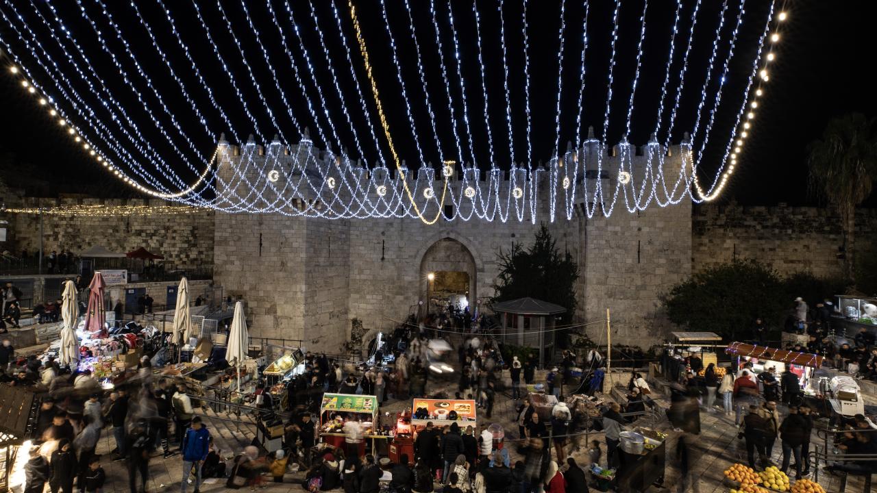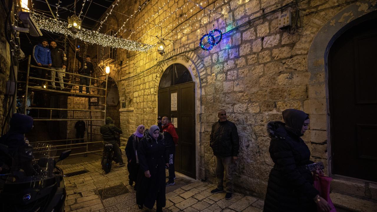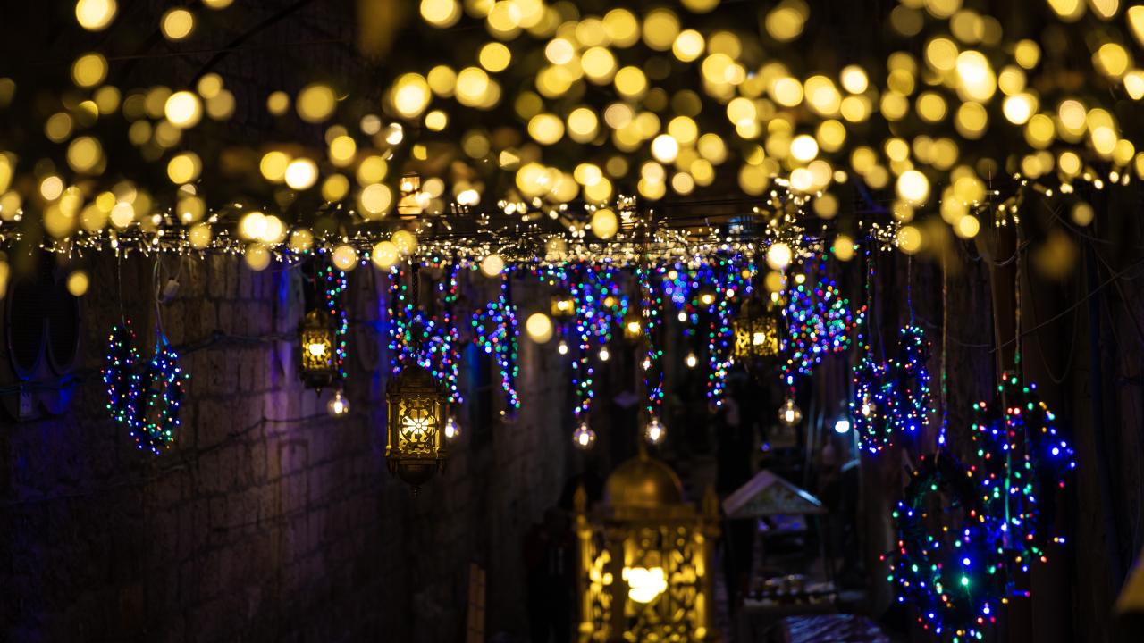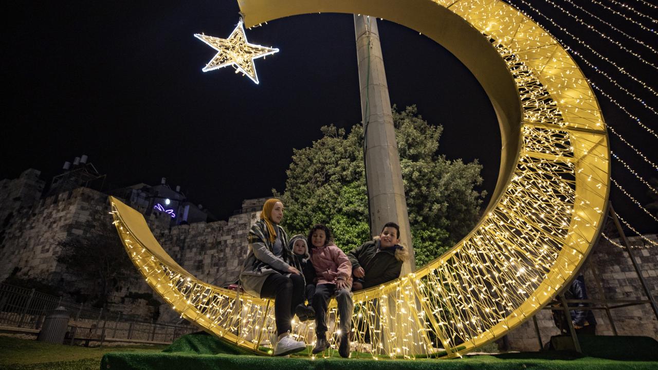 İşgal altındaki Doğu Kudüs’te Müslümanların ilk kıblesi olan Mescid-i Aksa’nın da içinde bulunduğu Eski Şehir bölgesinin Harem-i Şerif’e çıkan dar sokakları, caddeleri ve çarşıları, rengarenk ışıklar ve kandillerle süslendi.