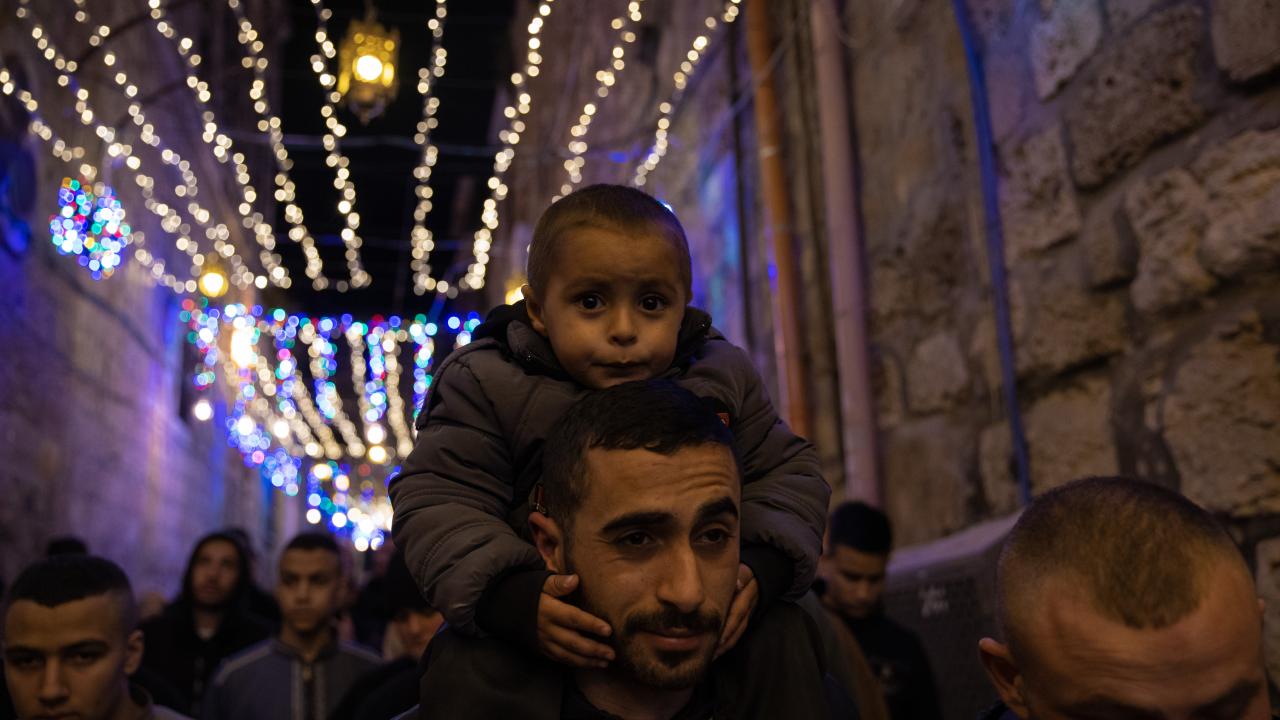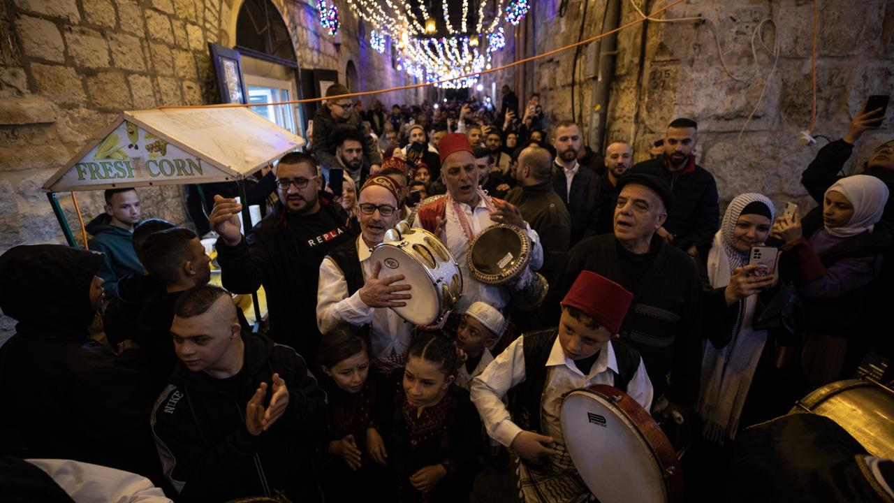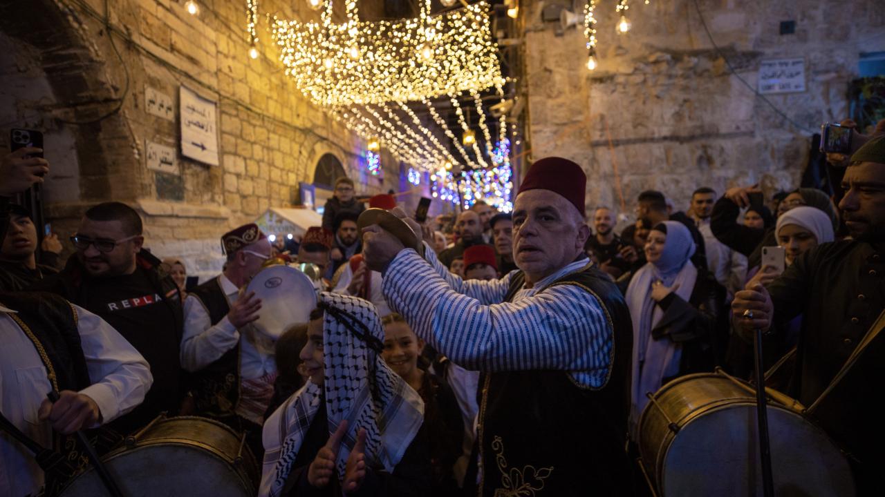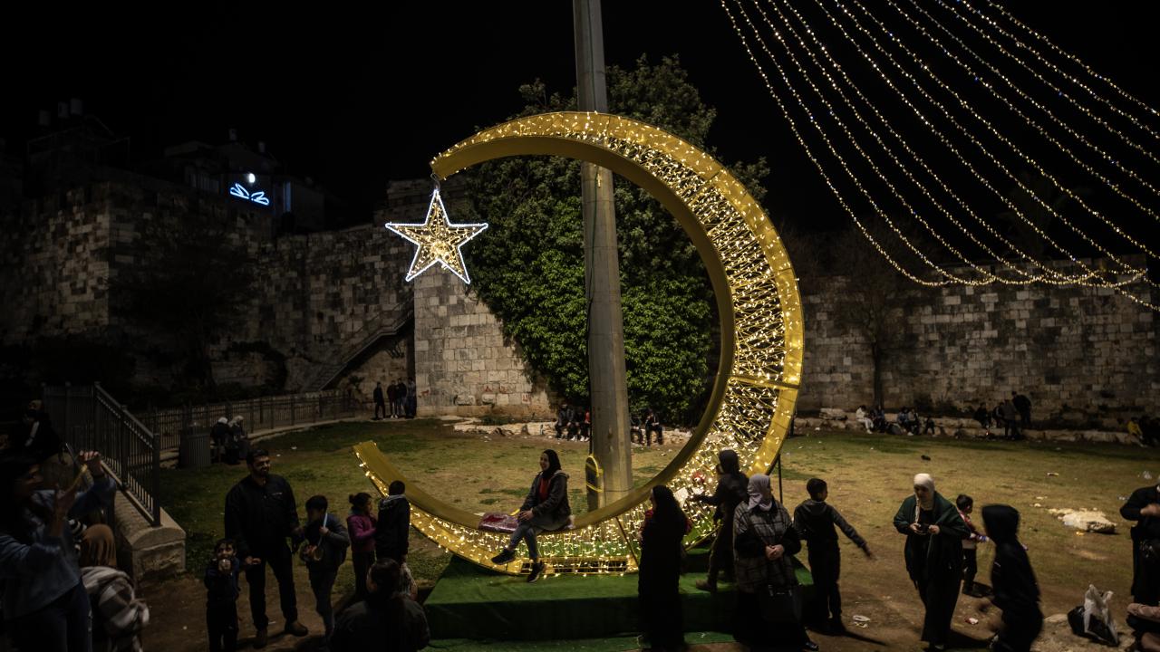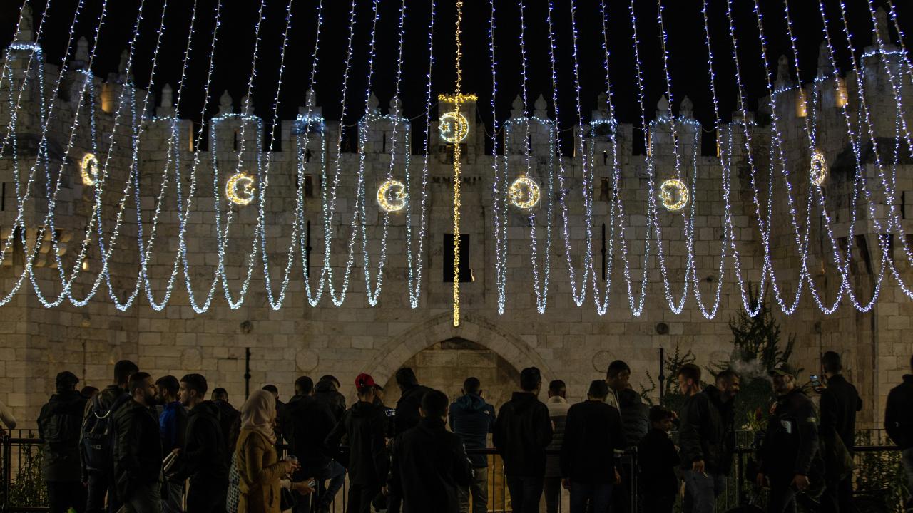 İşgal altındaki Doğu Kudüs’te Müslümanların ilk kıblesi olan Mescid-i Aksa’nın da içinde bulunduğu Eski Şehir bölgesinin Harem-i Şerif’e çıkan dar sokakları, caddeleri ve çarşıları, rengarenk ışıklar ve kandillerle süslendi.