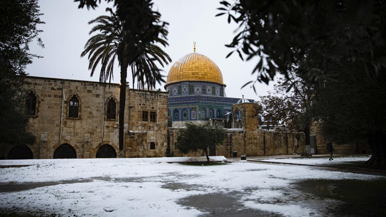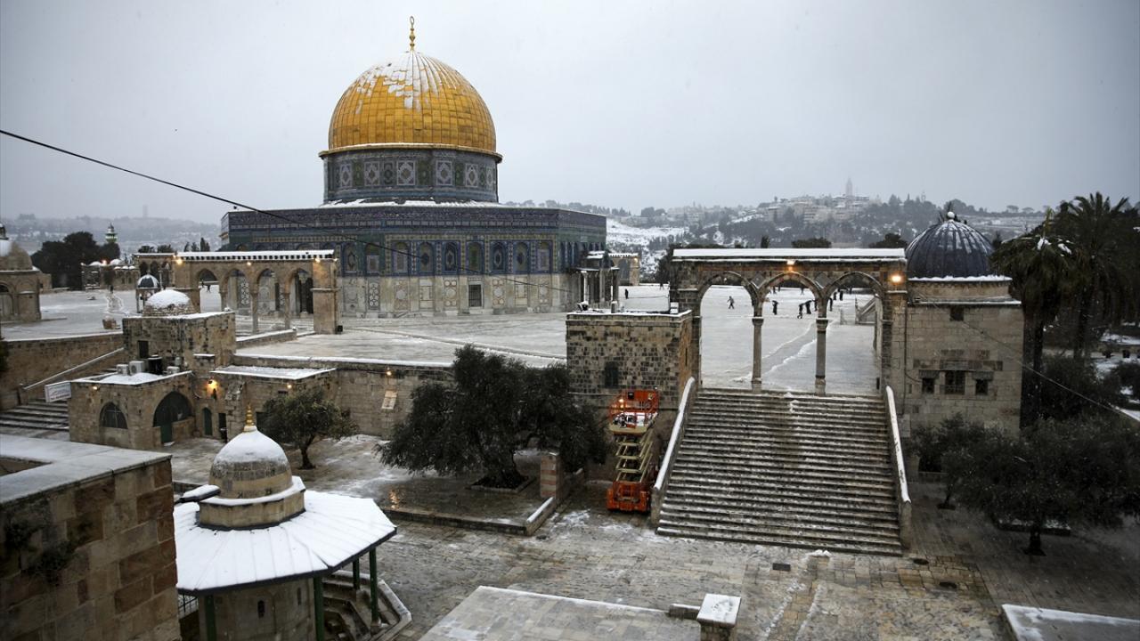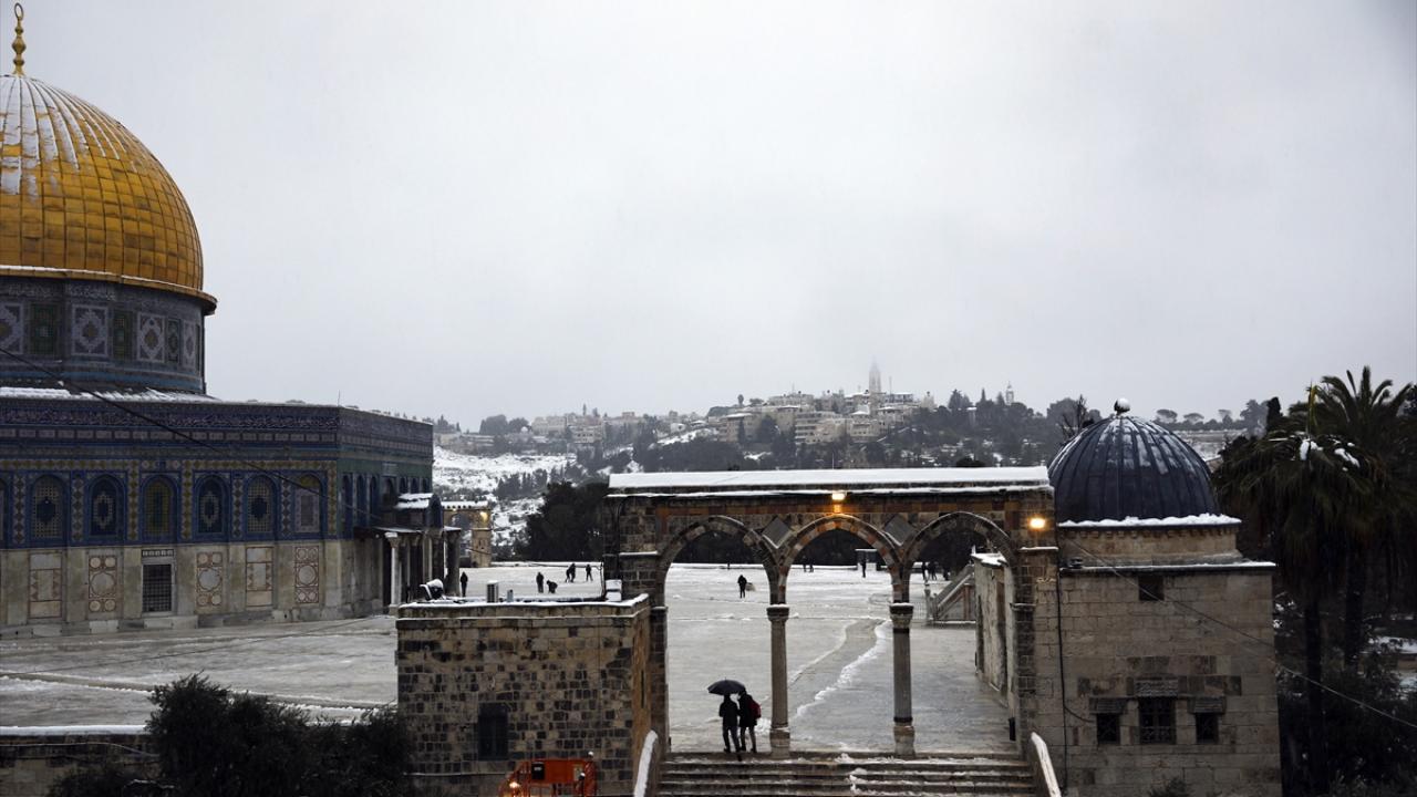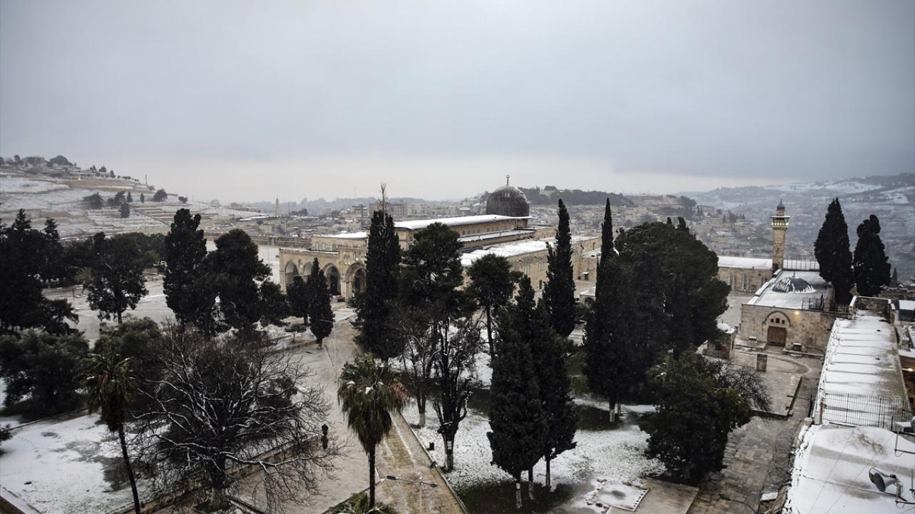 Kutsal şehir Kudüs'e mevsimin ilk karı düştü. Mescid-i Aksa ve avlusunda yer alan Kubbetüs Sahra, kar yağışıyla birlikte güzel görüntü oluşturdu.